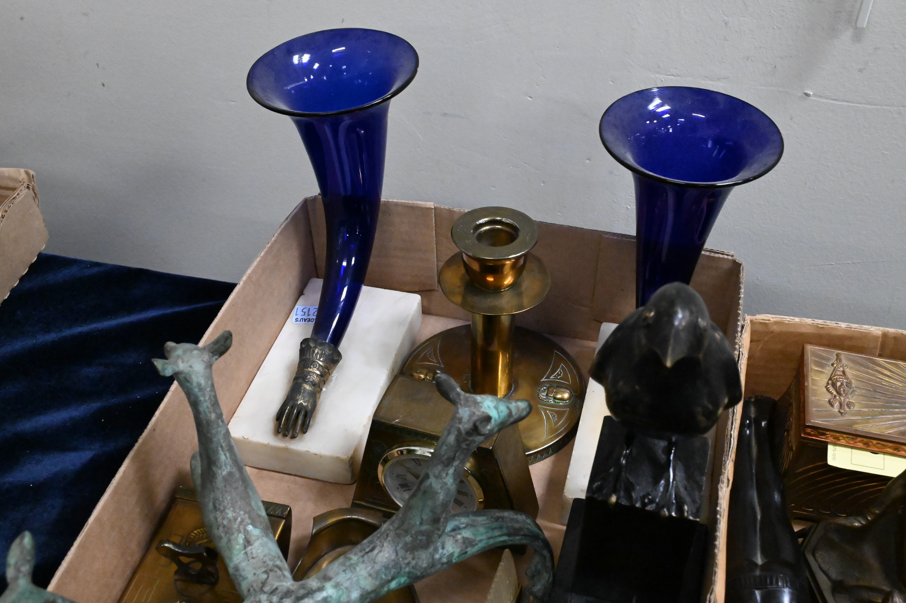 to include candlesticks, ink blotter, female figures, cobalt cornucopias on alabaster bases etc.