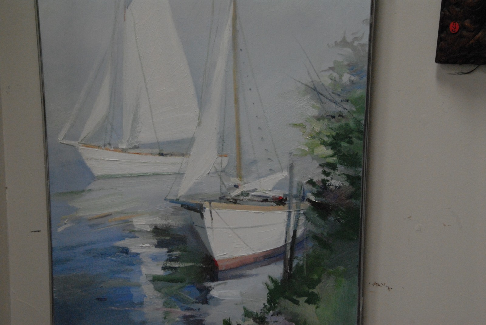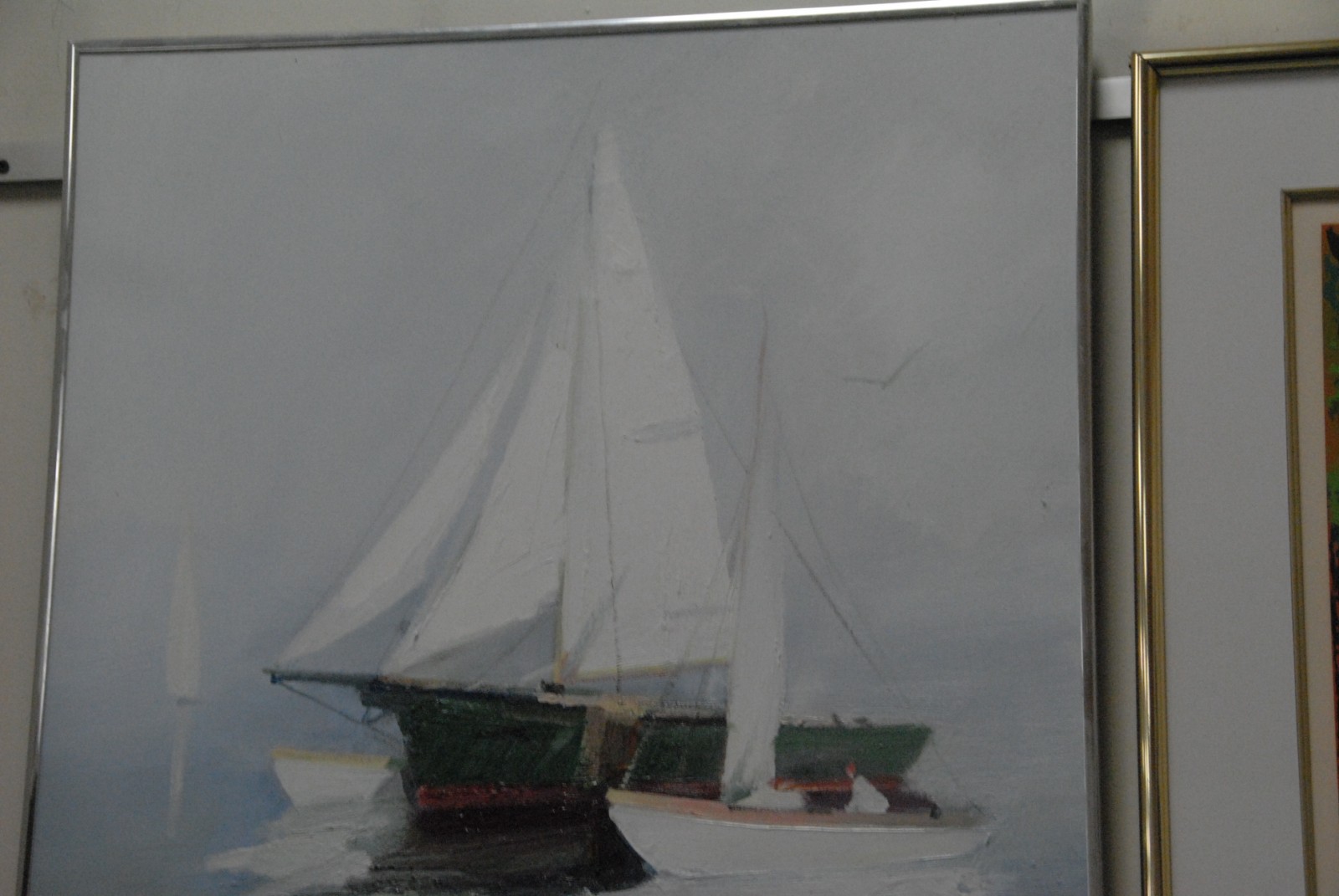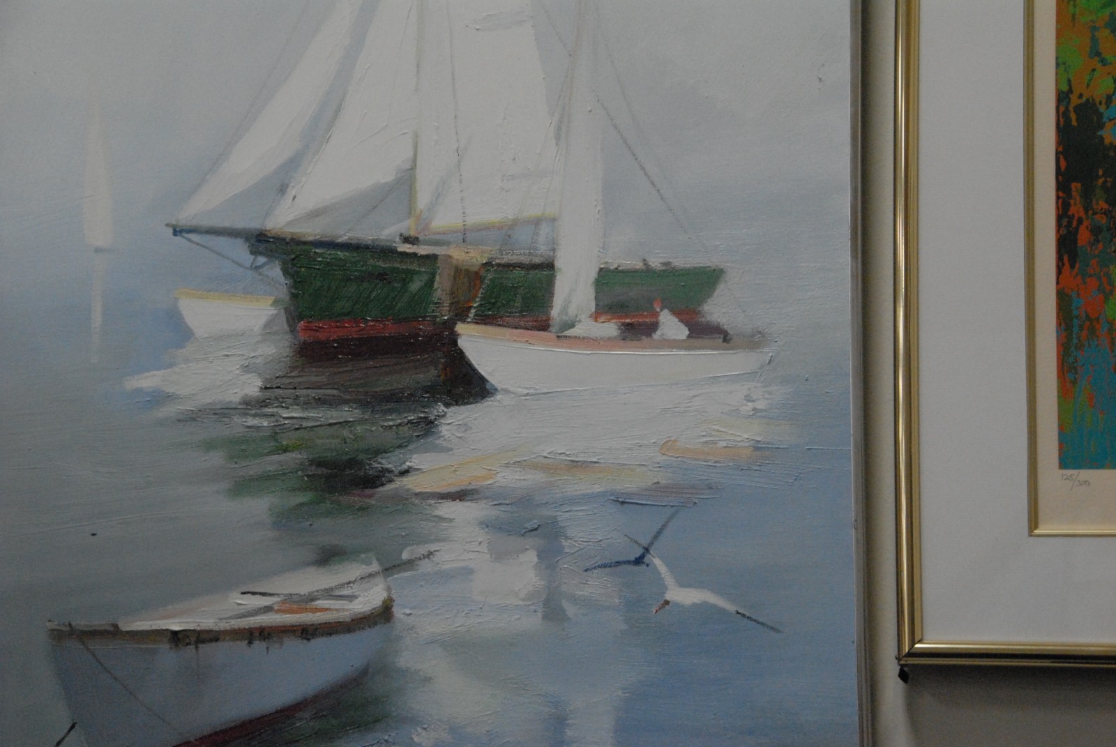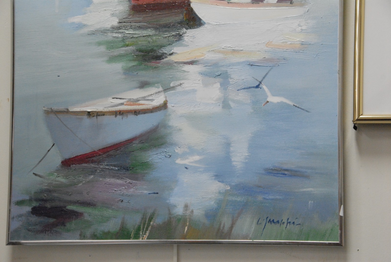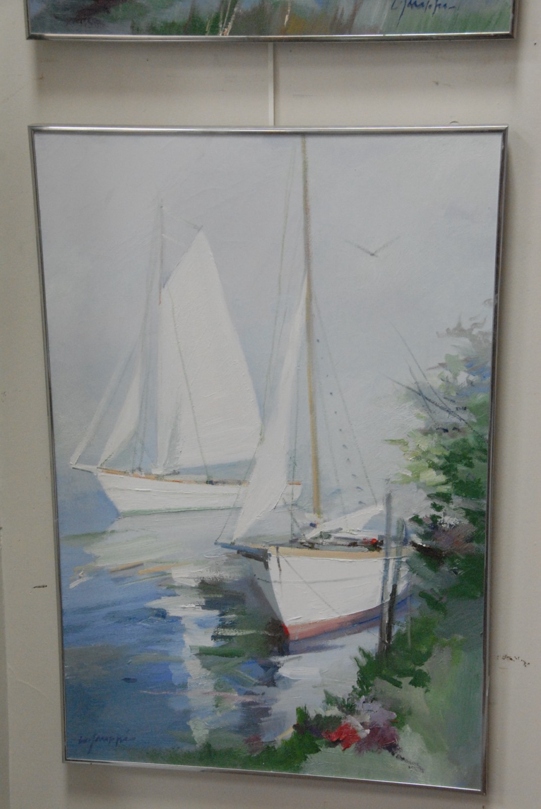 On two Charles Gruppe 1928 MOARED SKIFFS pair of oil on canvas one signed lower left, one signed lower right.