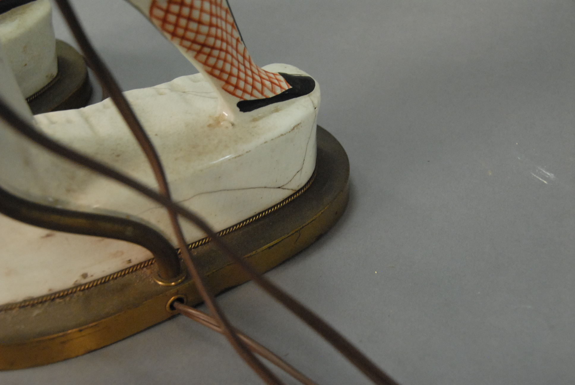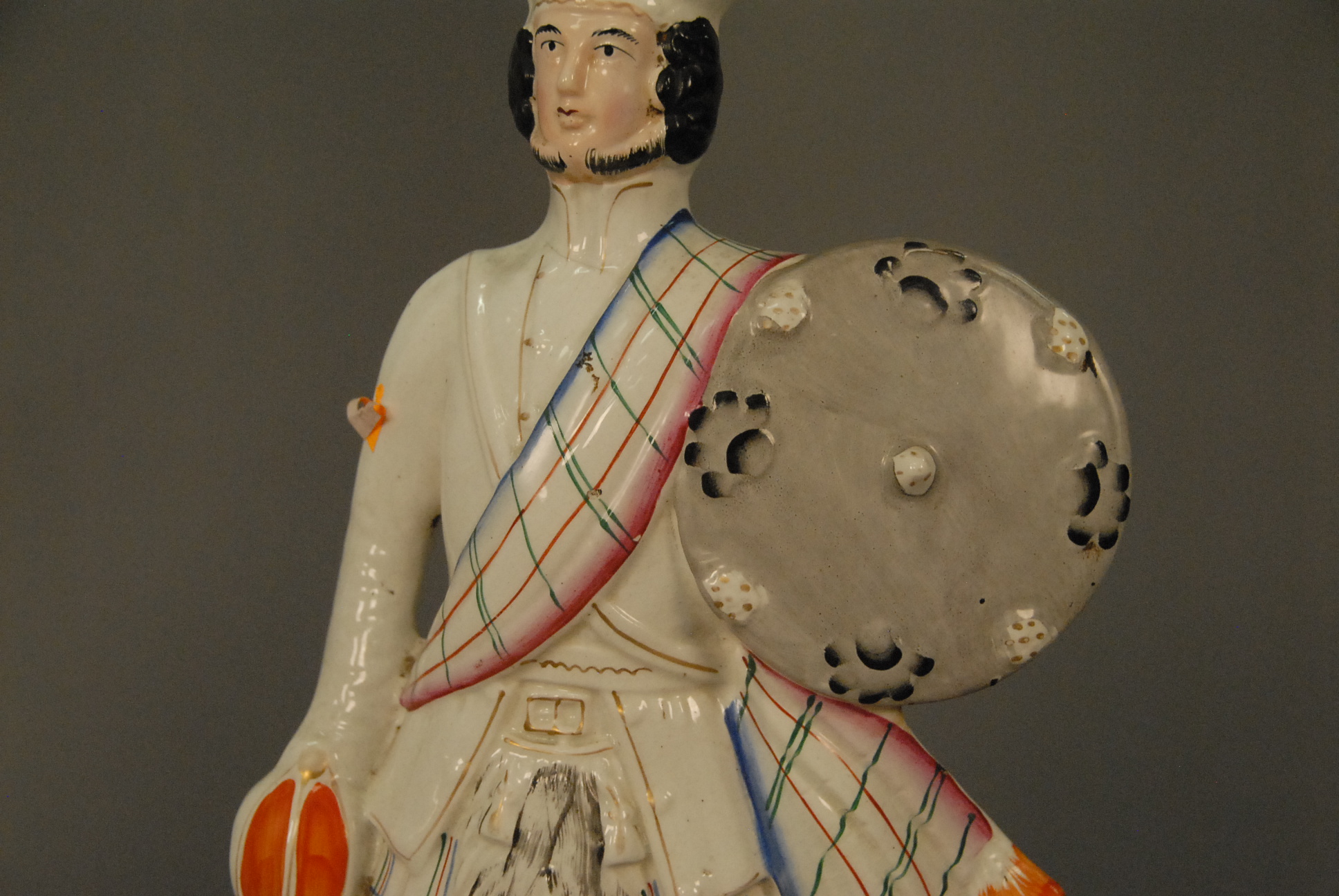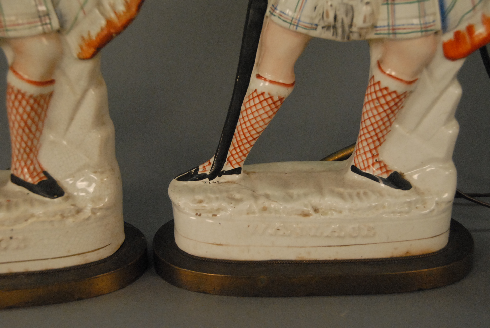 Pair of Staffordshire figures of Wallace mounted as table lamps one base with crack. figure ht. 17 1/2in.
