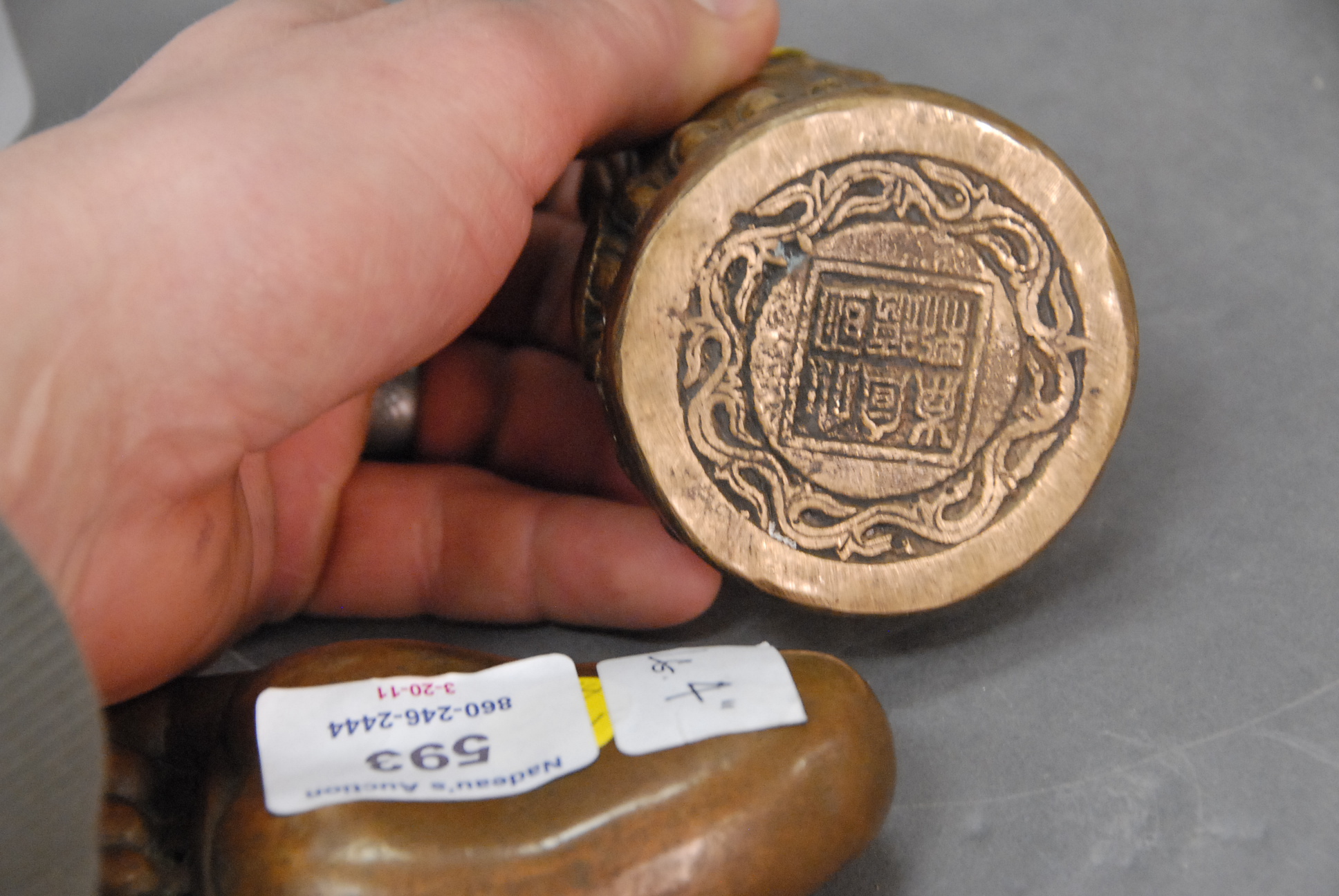 Lot 593: Four piece lot to include a Chinese metal