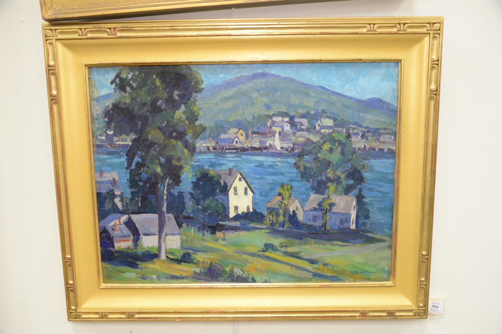 Lot 594: Robert Emmett Owen American, 1878 – 1957 Fall Sunlit, Camden, Maine oil on canvas board signed lower right 17 1/2 x 23 1/2 Prove…