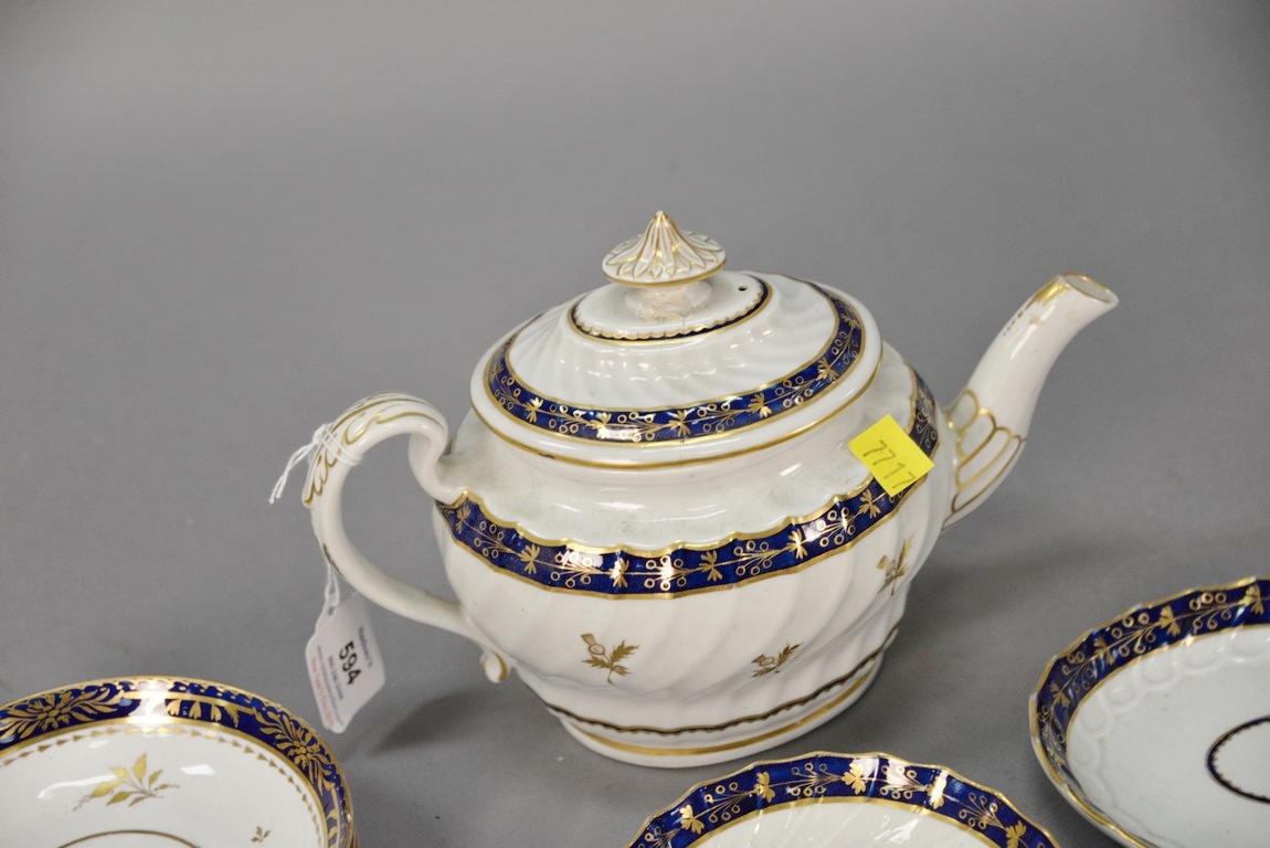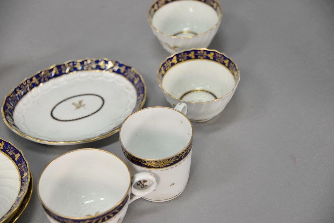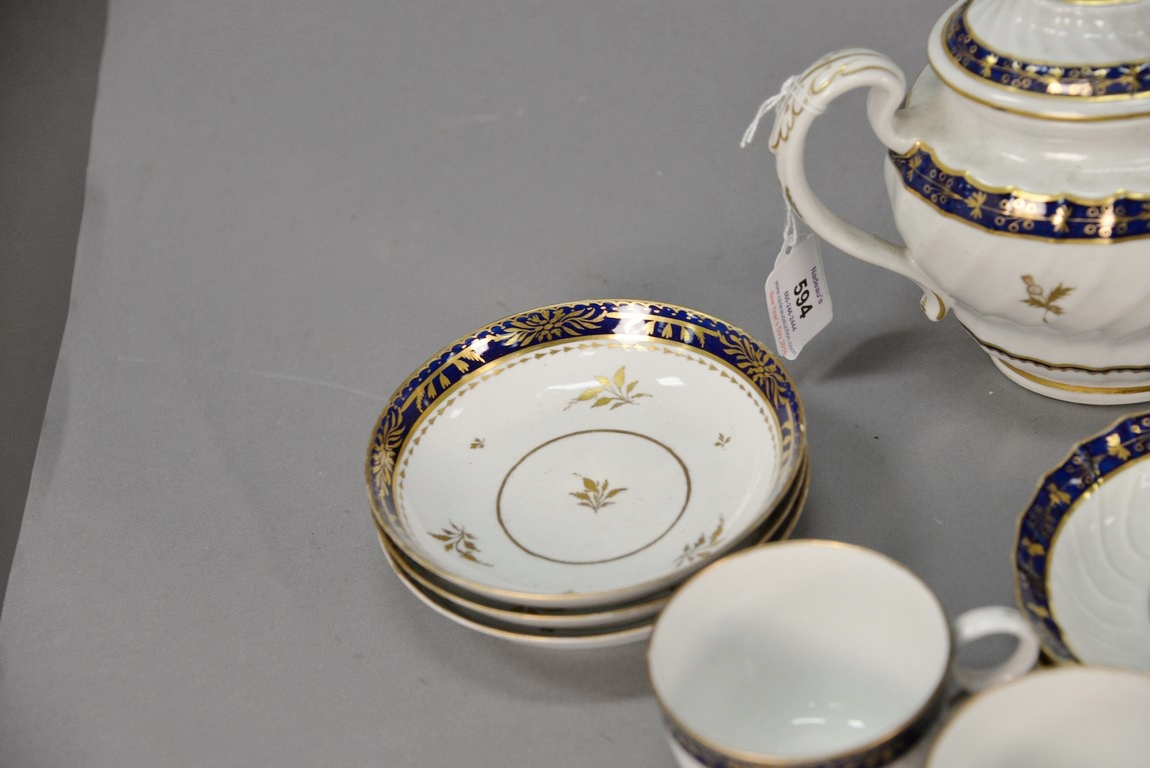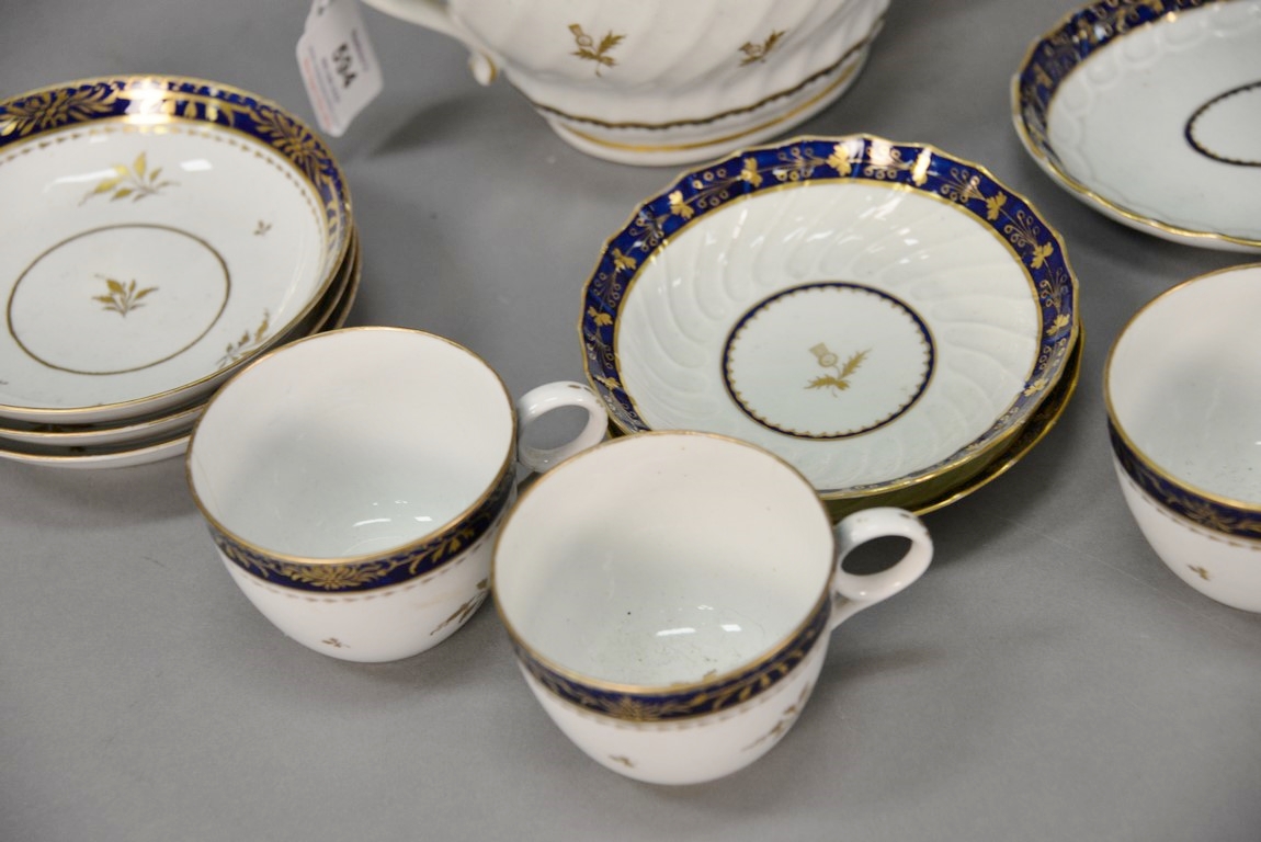 Lot 594: Thirteen piece Worcester lot, five pieces are marked with crescent moon. spout chip, one cup repaired, and one cover repaired