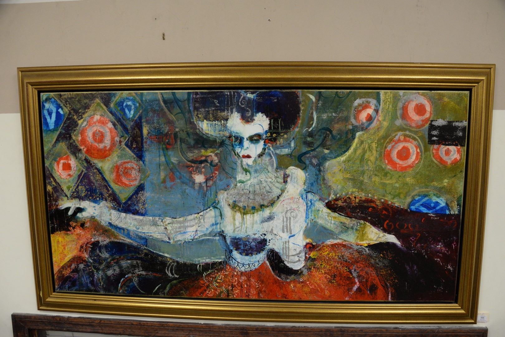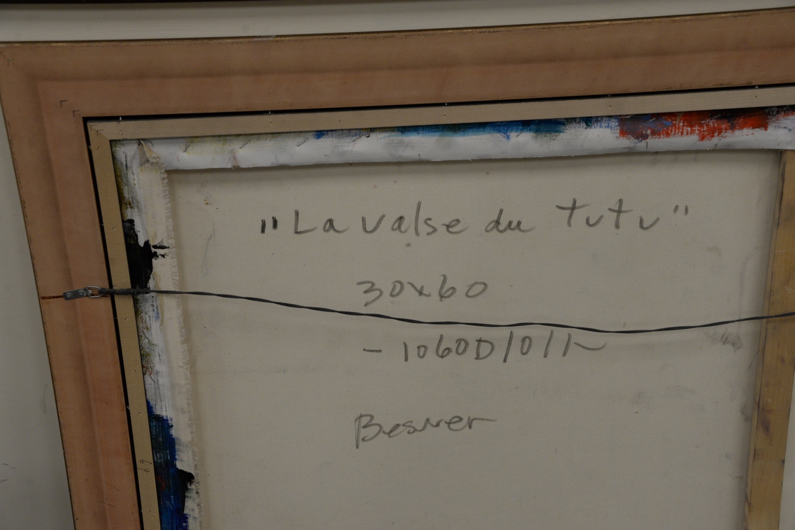 Lot 595: Dominic Besner b. 1965 Lavalse du Tutu acrylic on canvas signed Besner center right 30 x 60