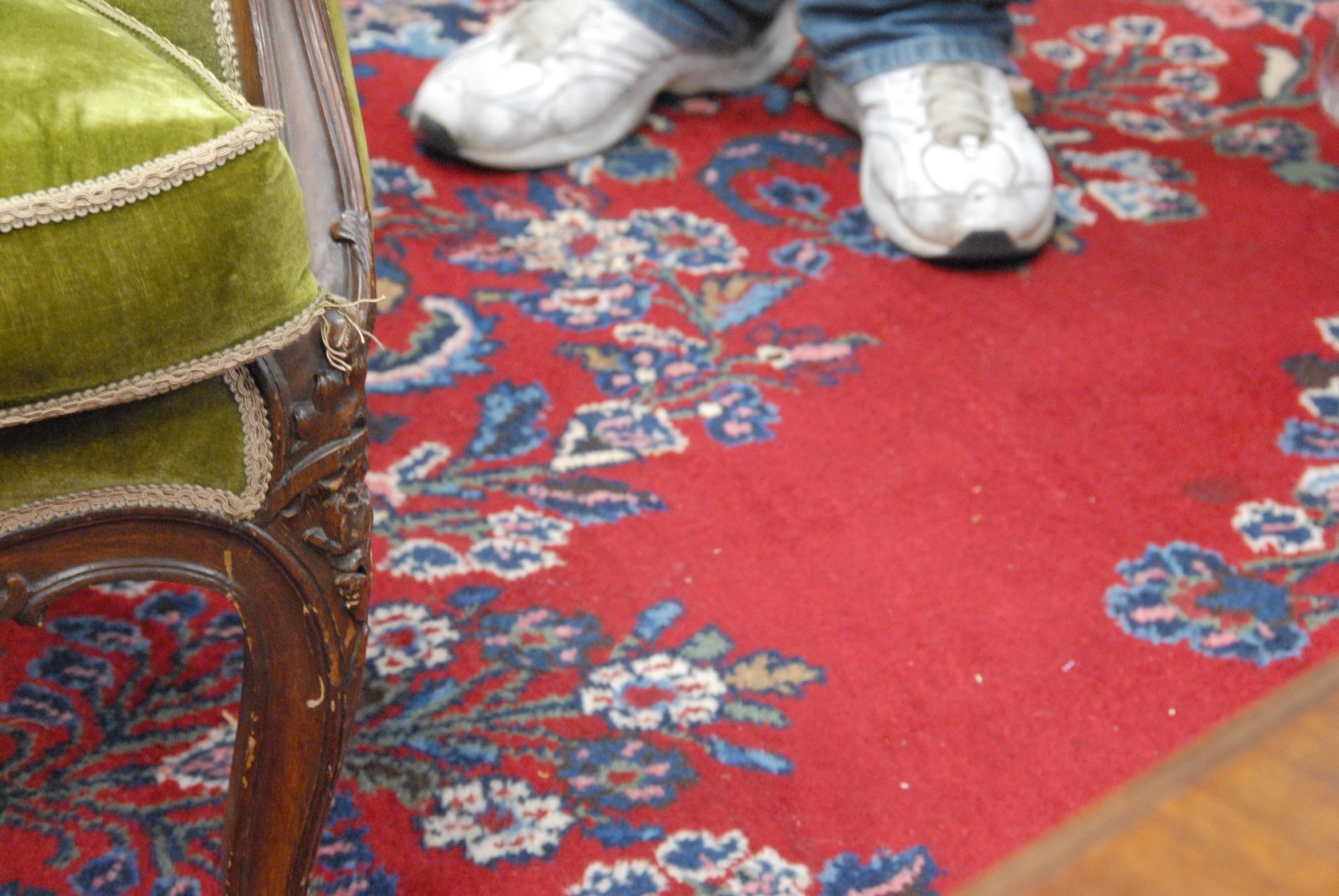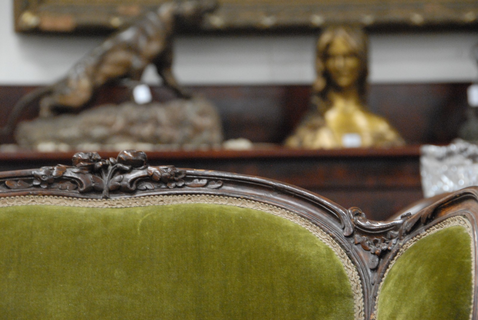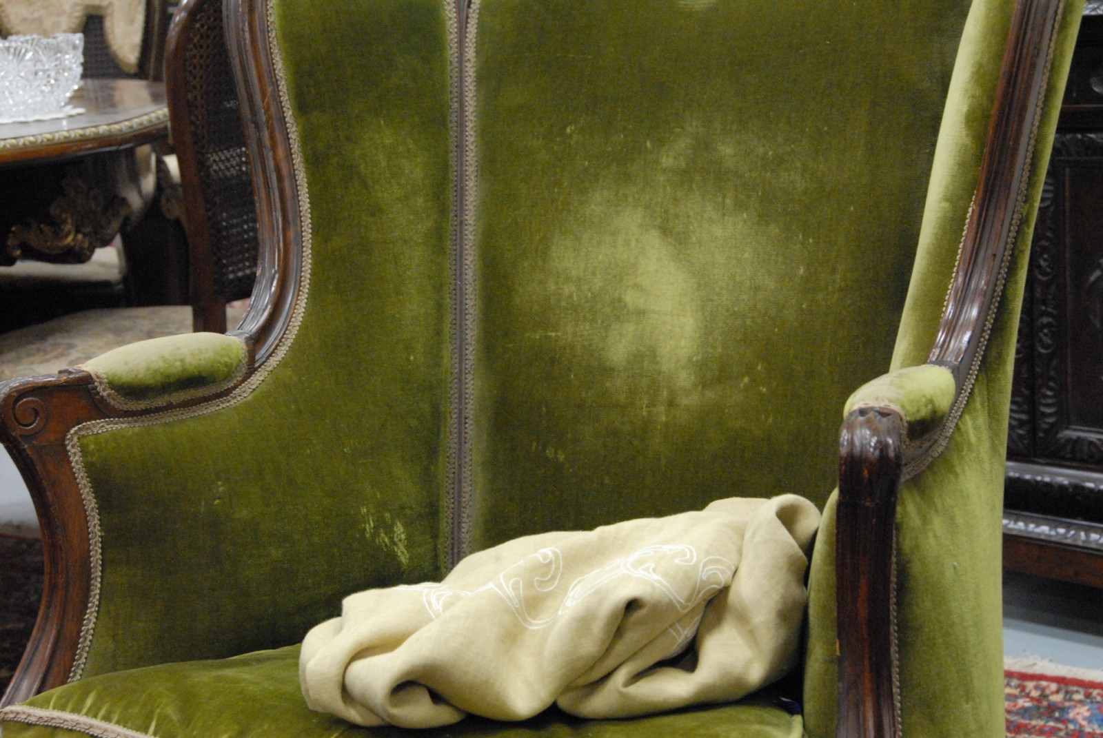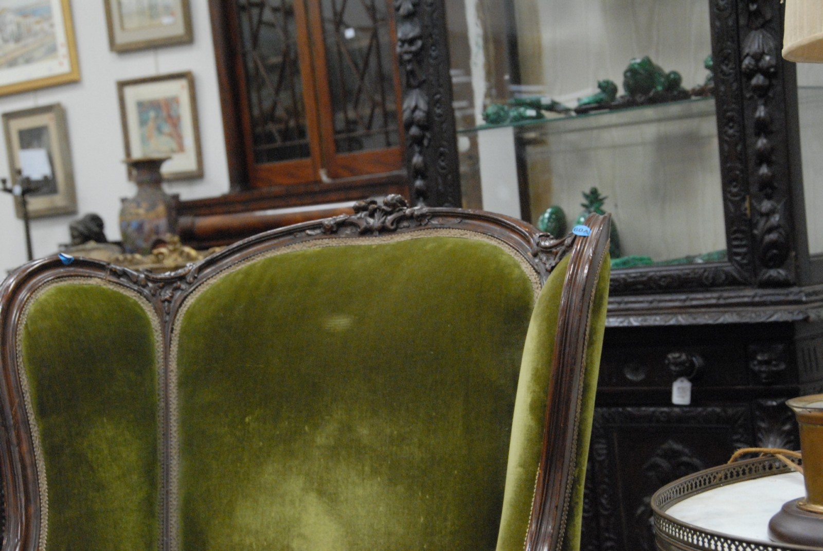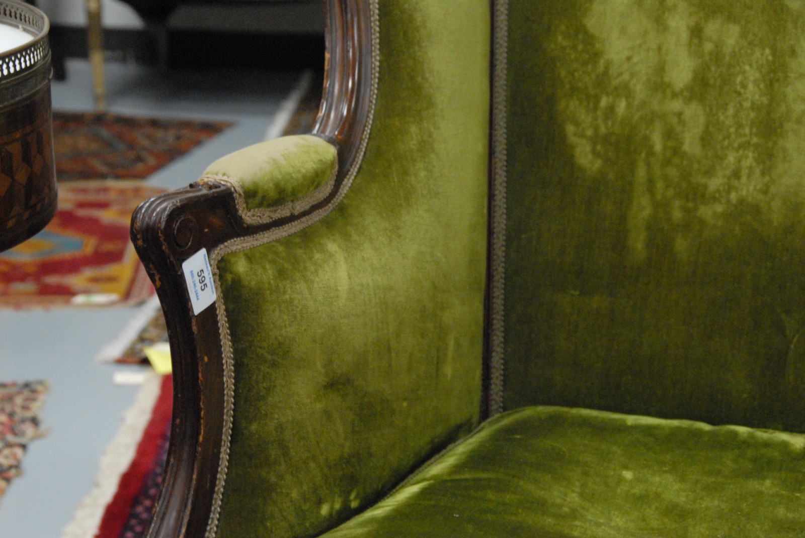 Lot 595: Pair of Louis XV style upholstered wing chairs