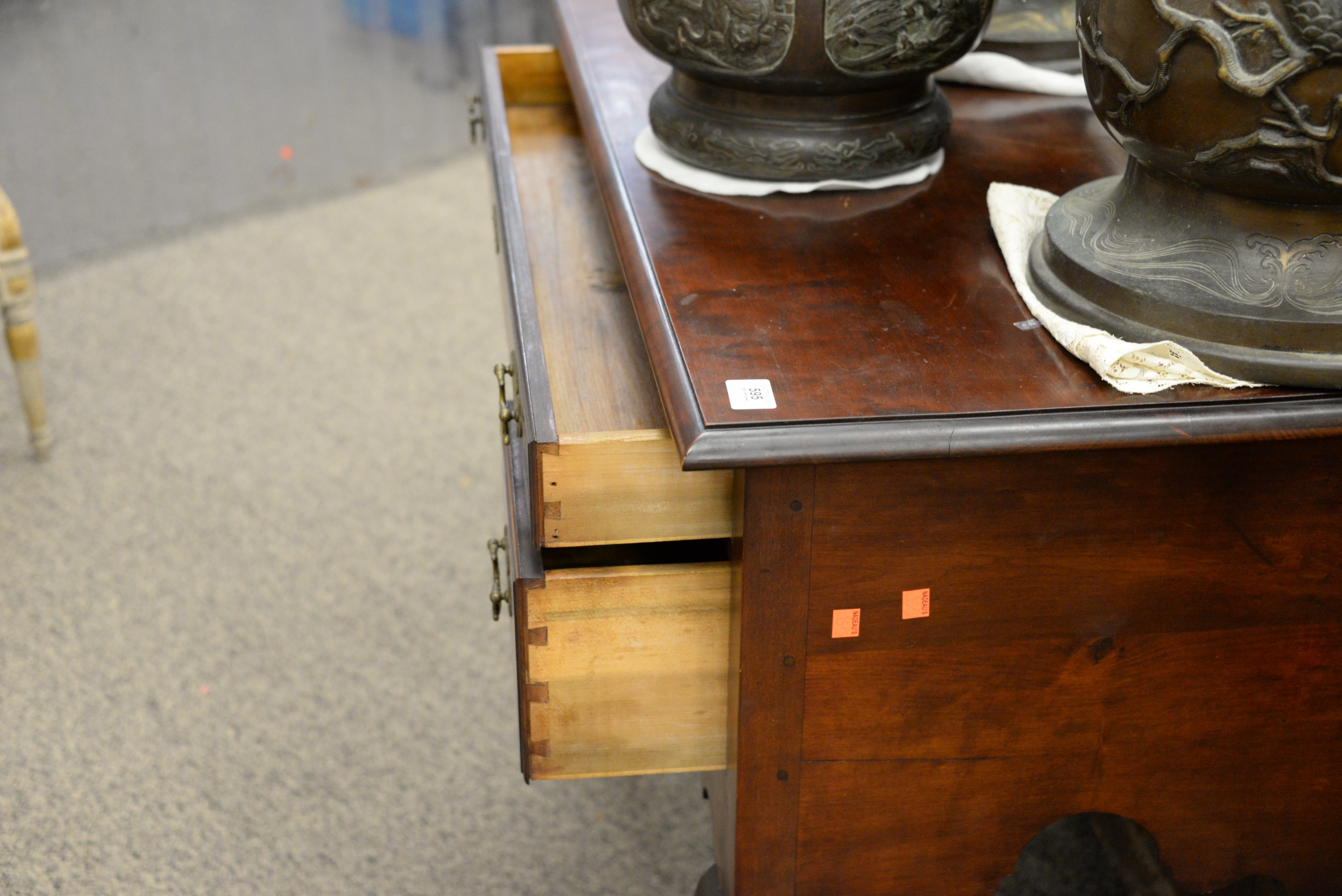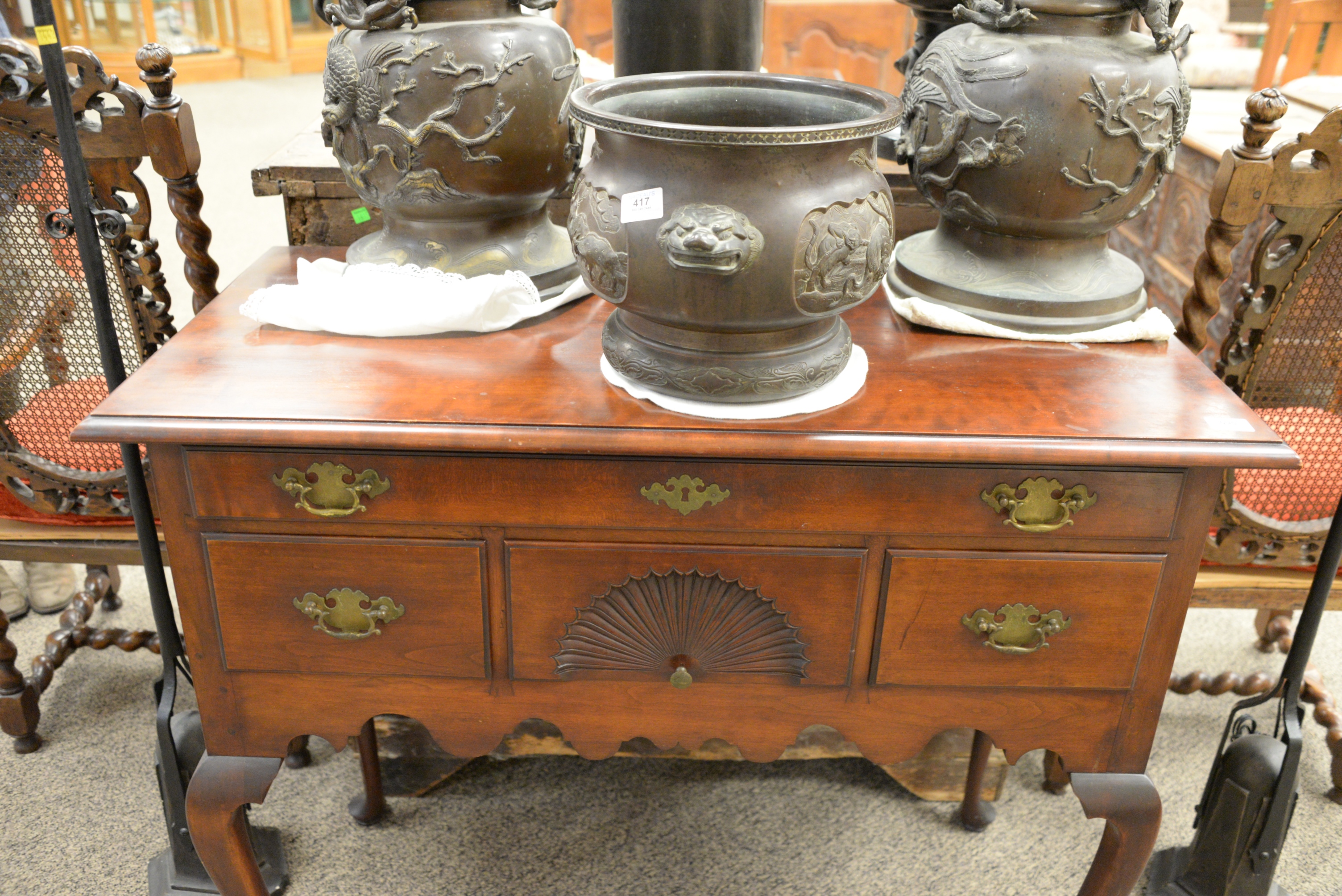 Queen Anne Highboy Base, having fan carved center drawer, now with added top, height 36 1/2 inches, top 21 1/2″ x 42 1/2″.