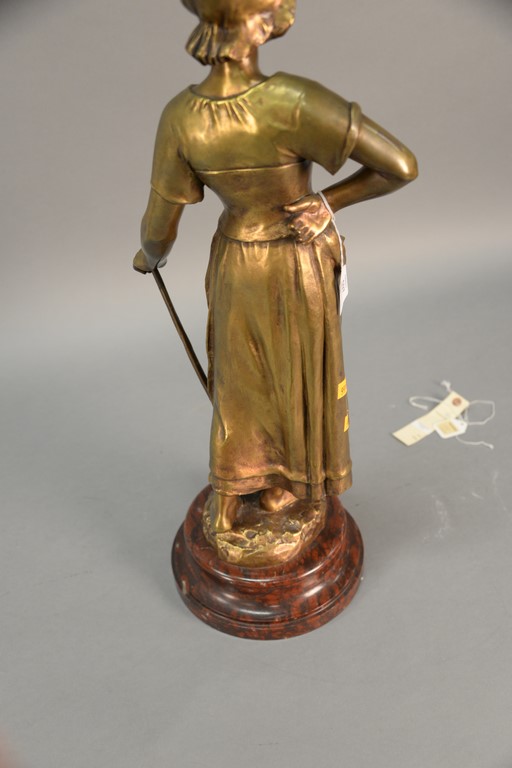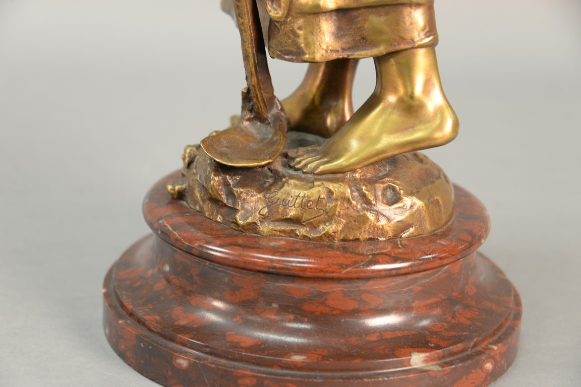Lot 597: Georges Henri Guittet 1871-1902 bronze figure Standing Woman with a Hoe on marble base marked on base: Guittet ht. 27in.