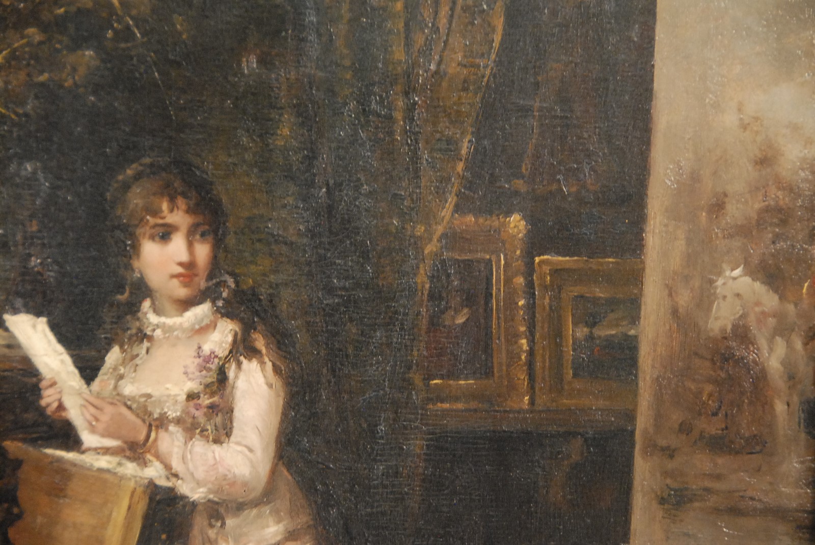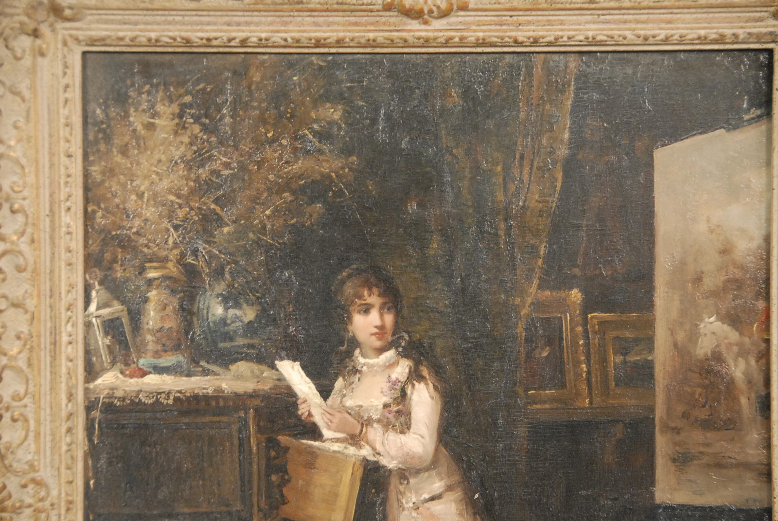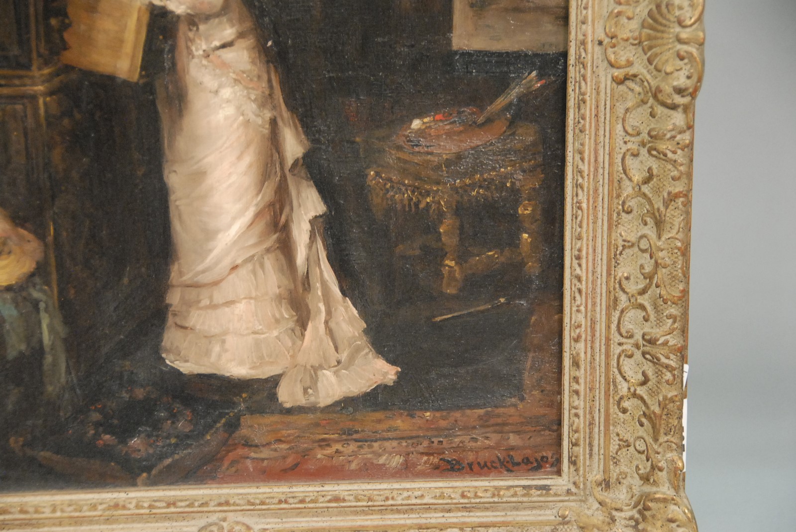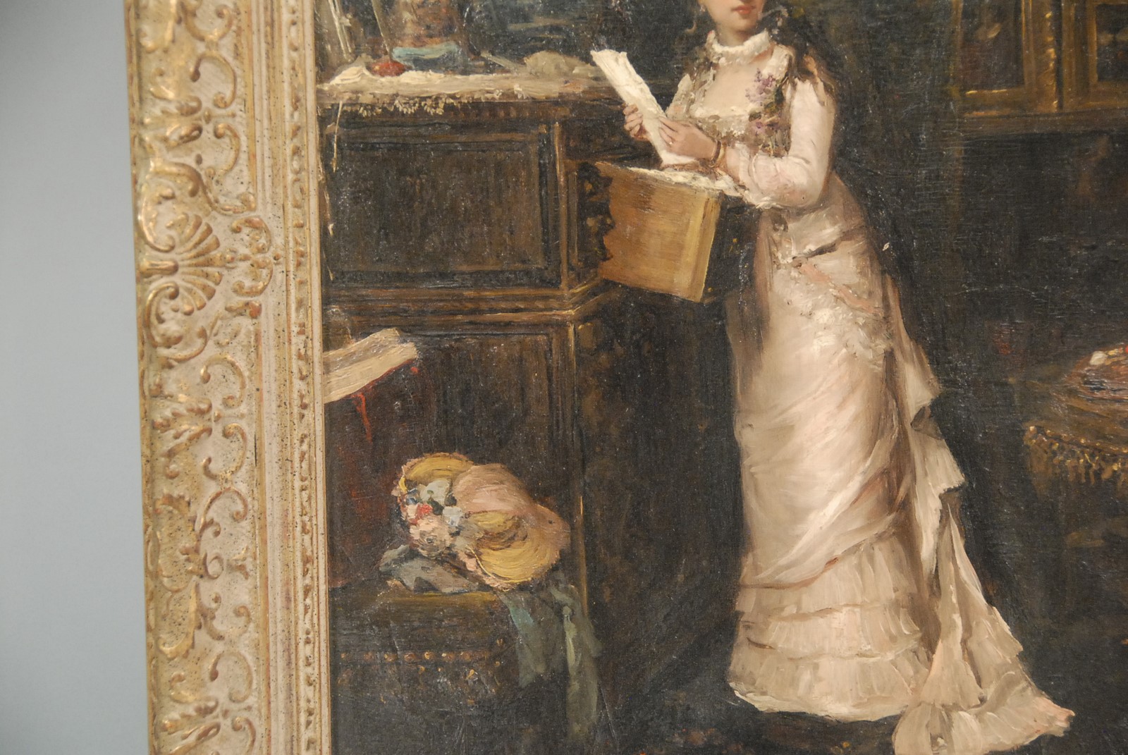 Lot 597: Lajos Bruck 1846-1916 INTERIOR MYSTERIOUS LETTER oil on panel signed lower right Bruck Lajos 18 1/4 x 14 3/4