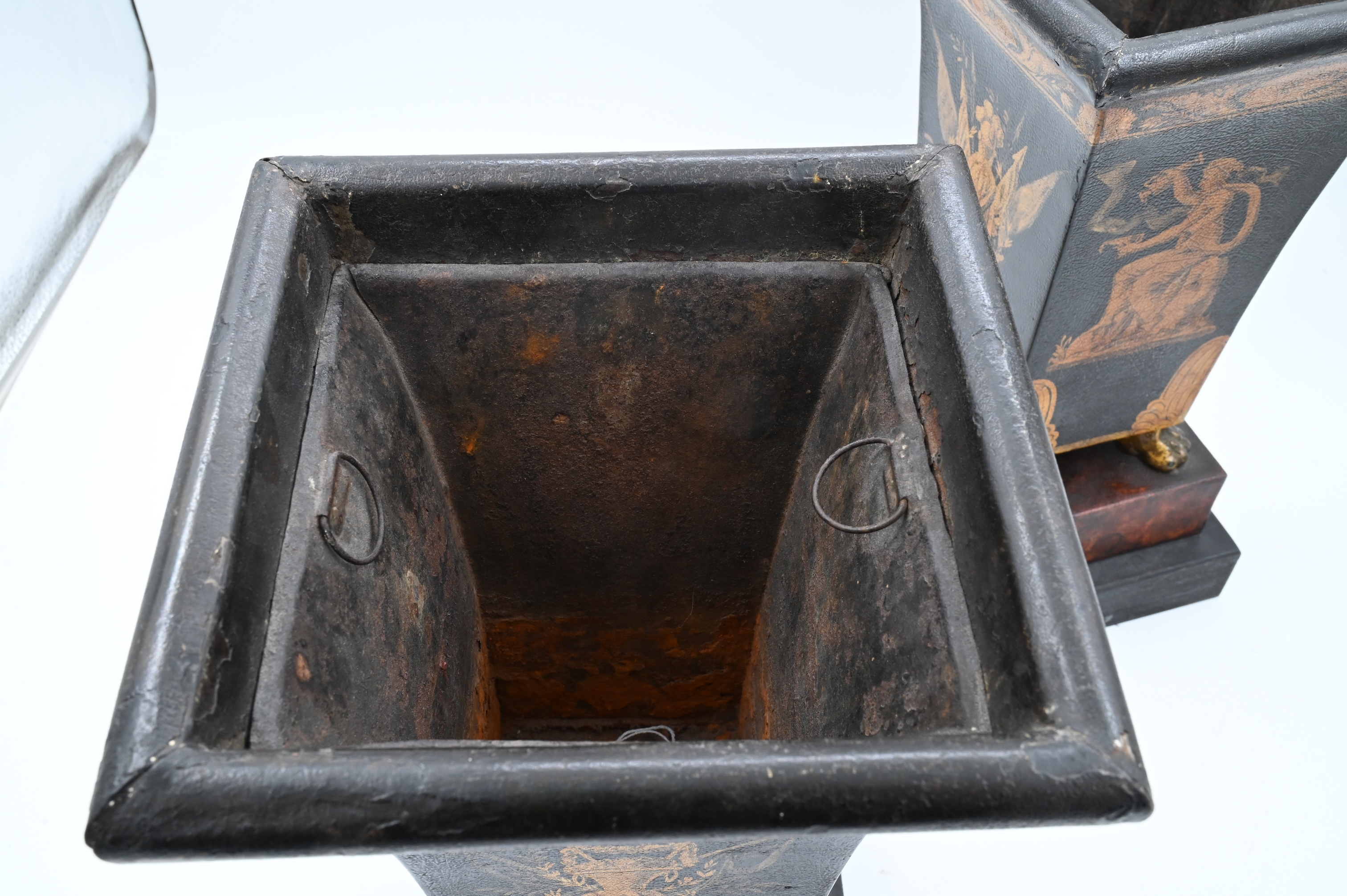 Lot 597: Pair of French Neoclassical Directoire Tole Vases or Urns