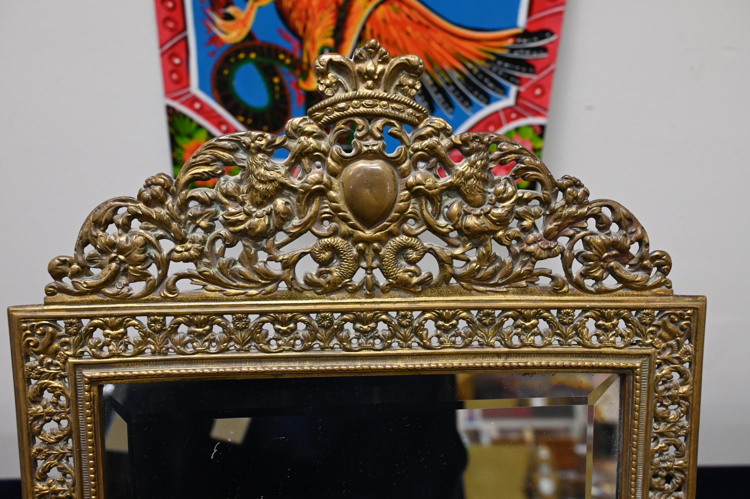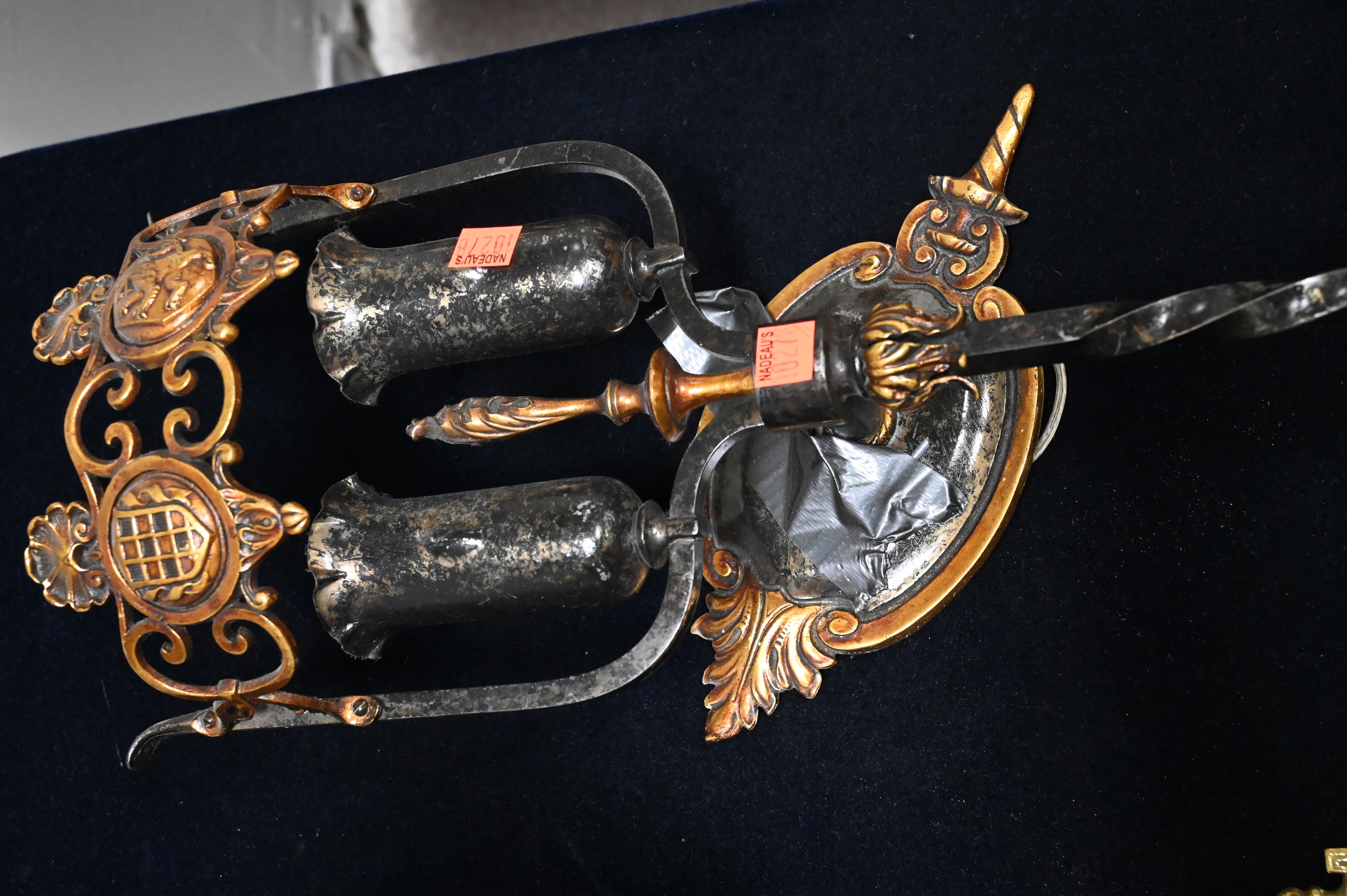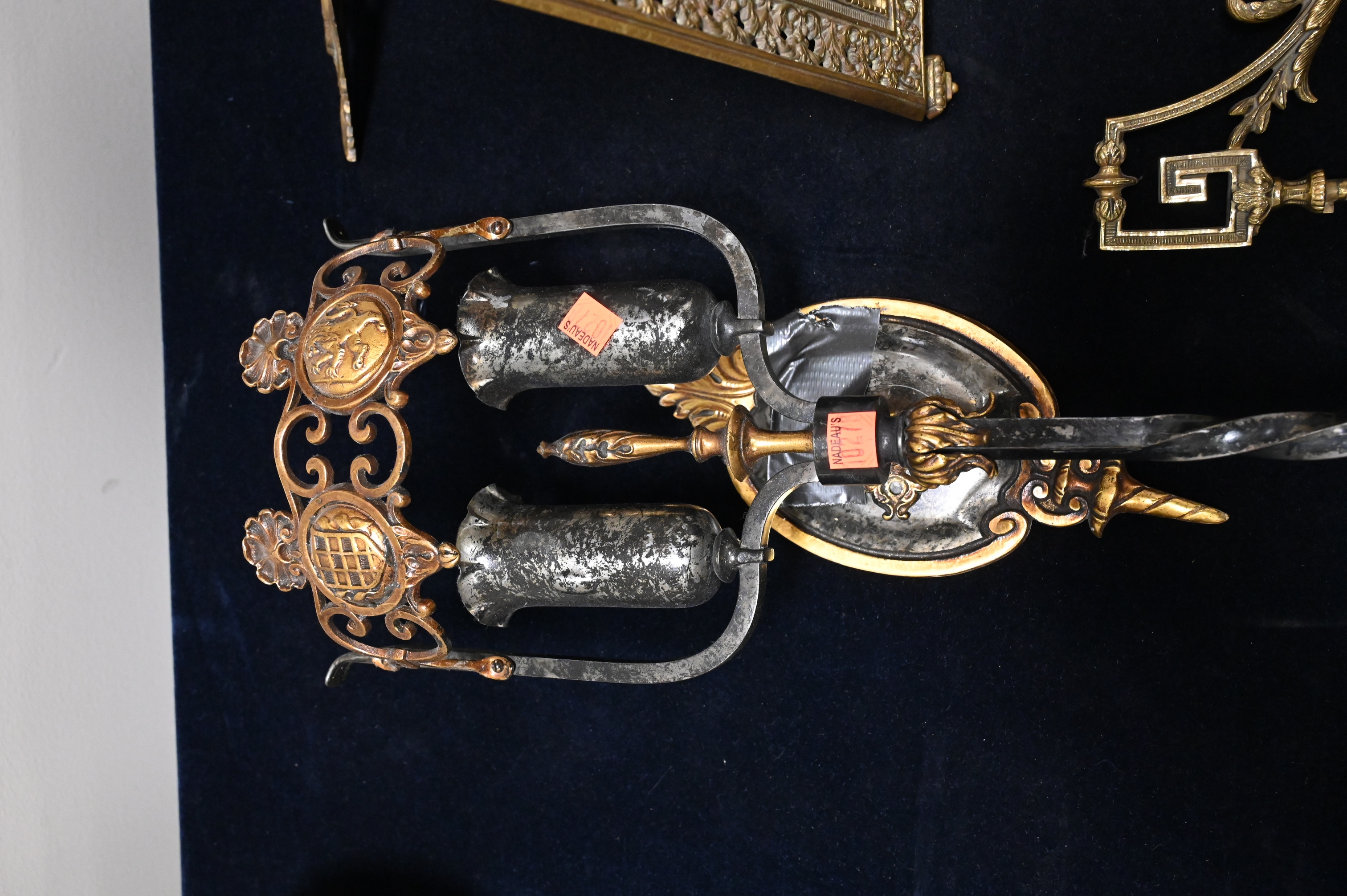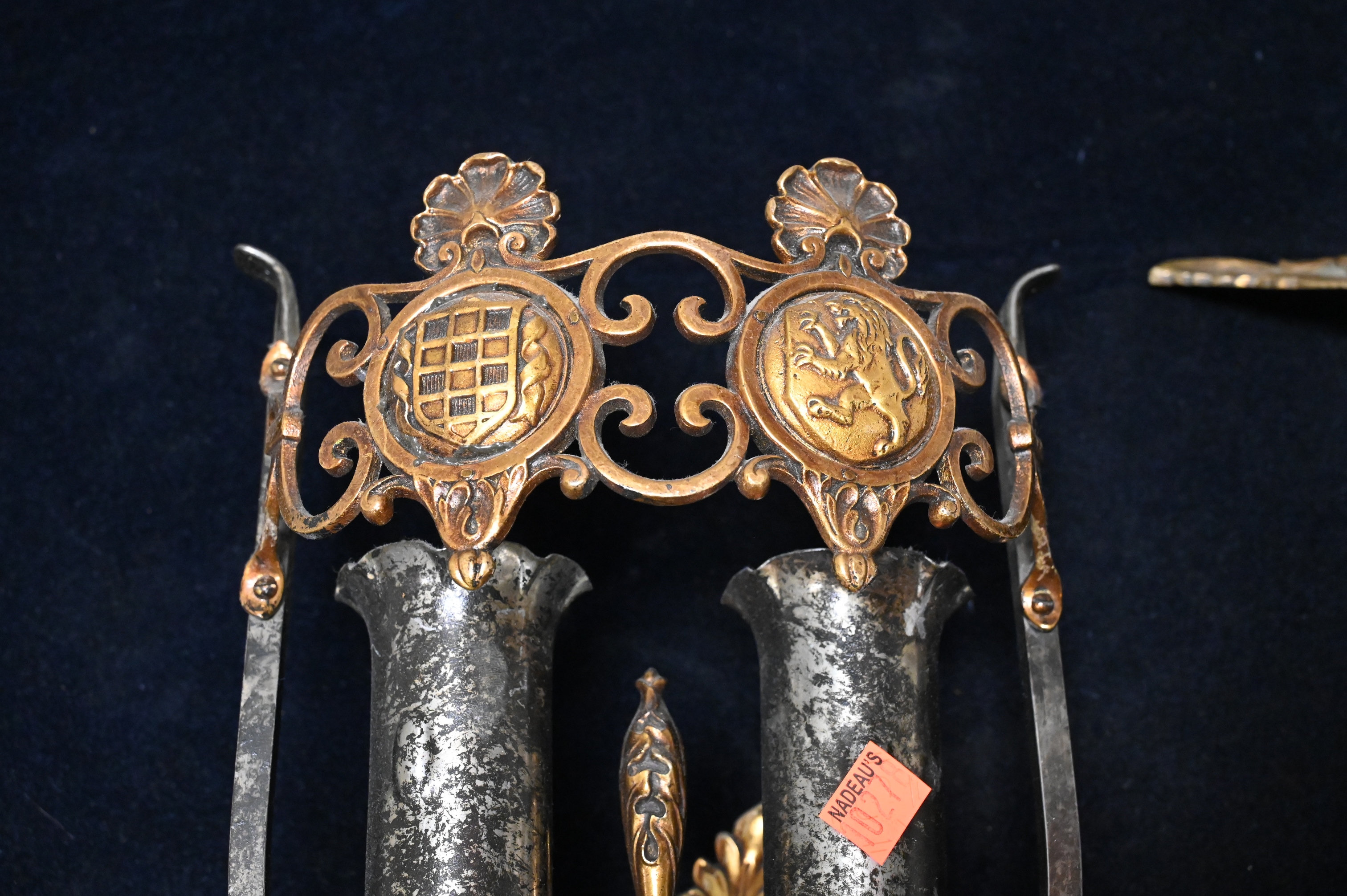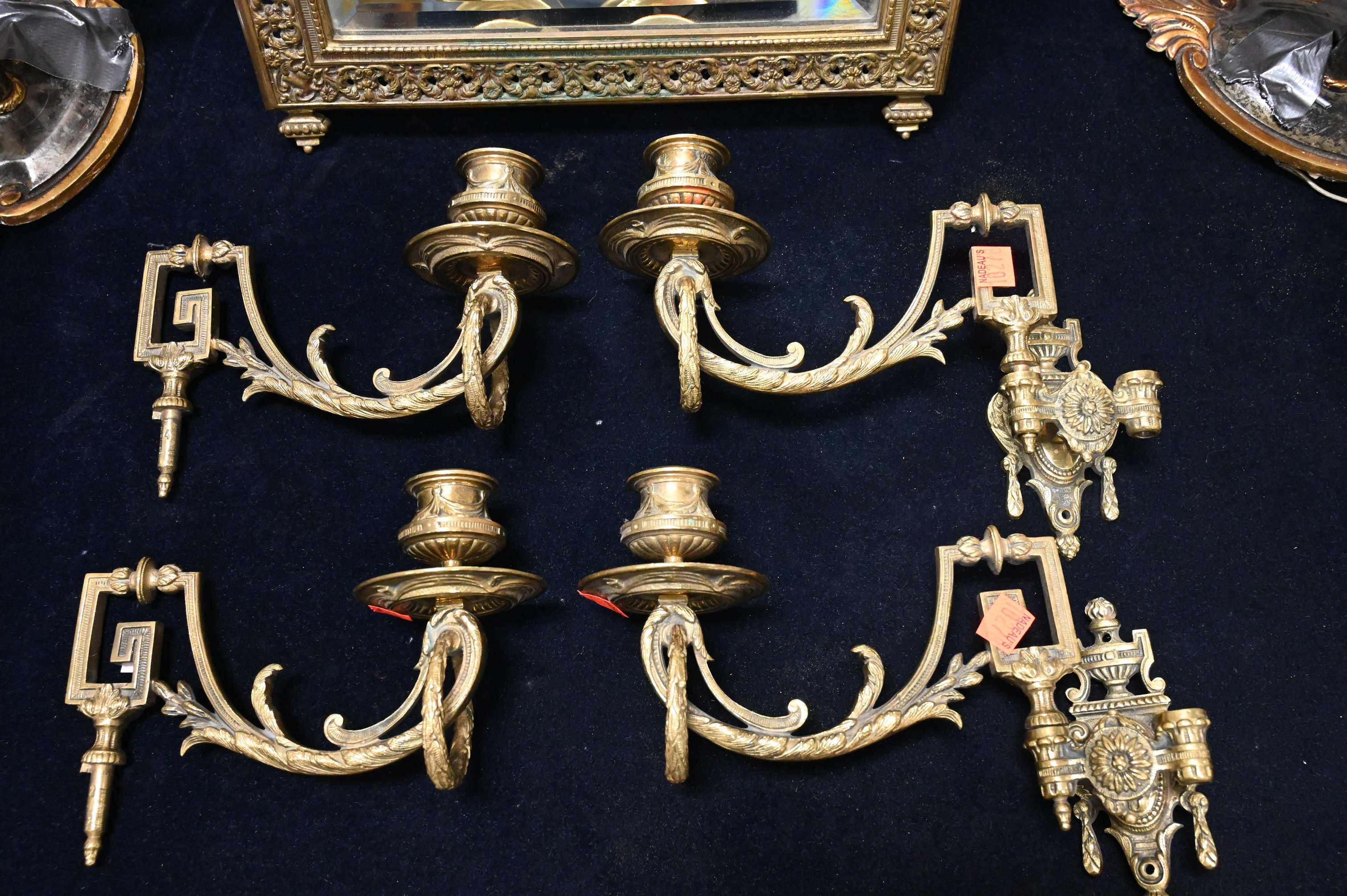 to include three pairs of sconces along with a heavy brass mirror