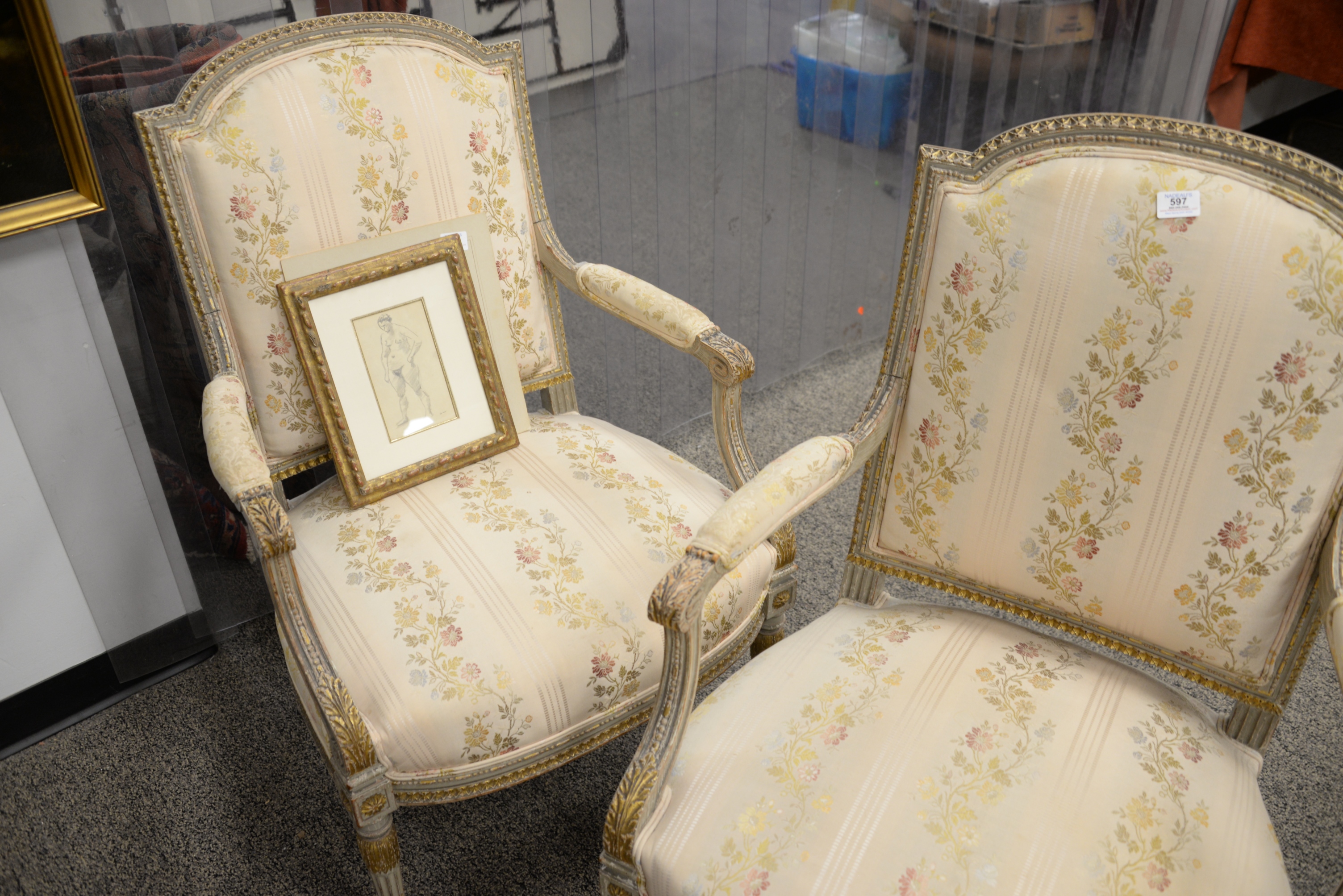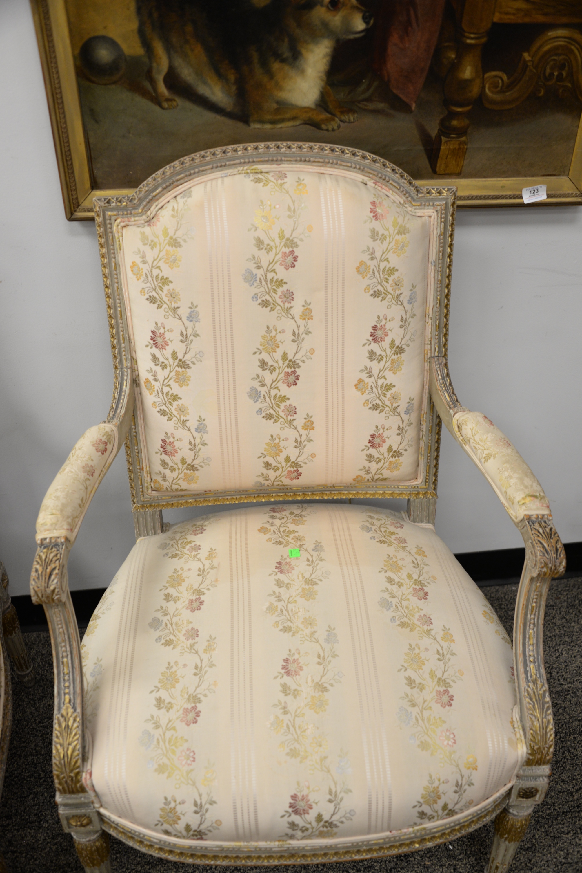 Lot 597: Suite of Four Louis XVI Style Upholstered Fauteuils