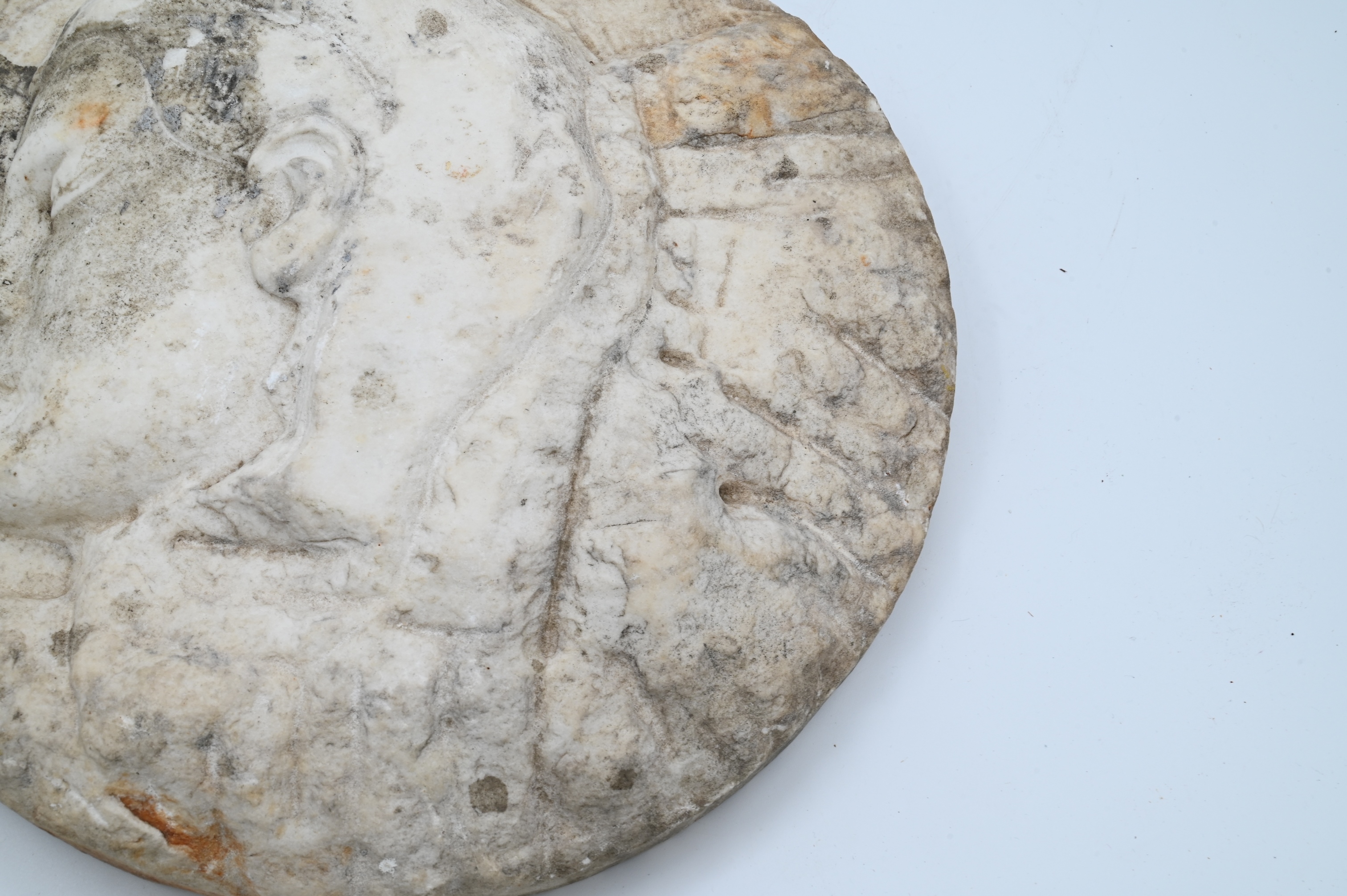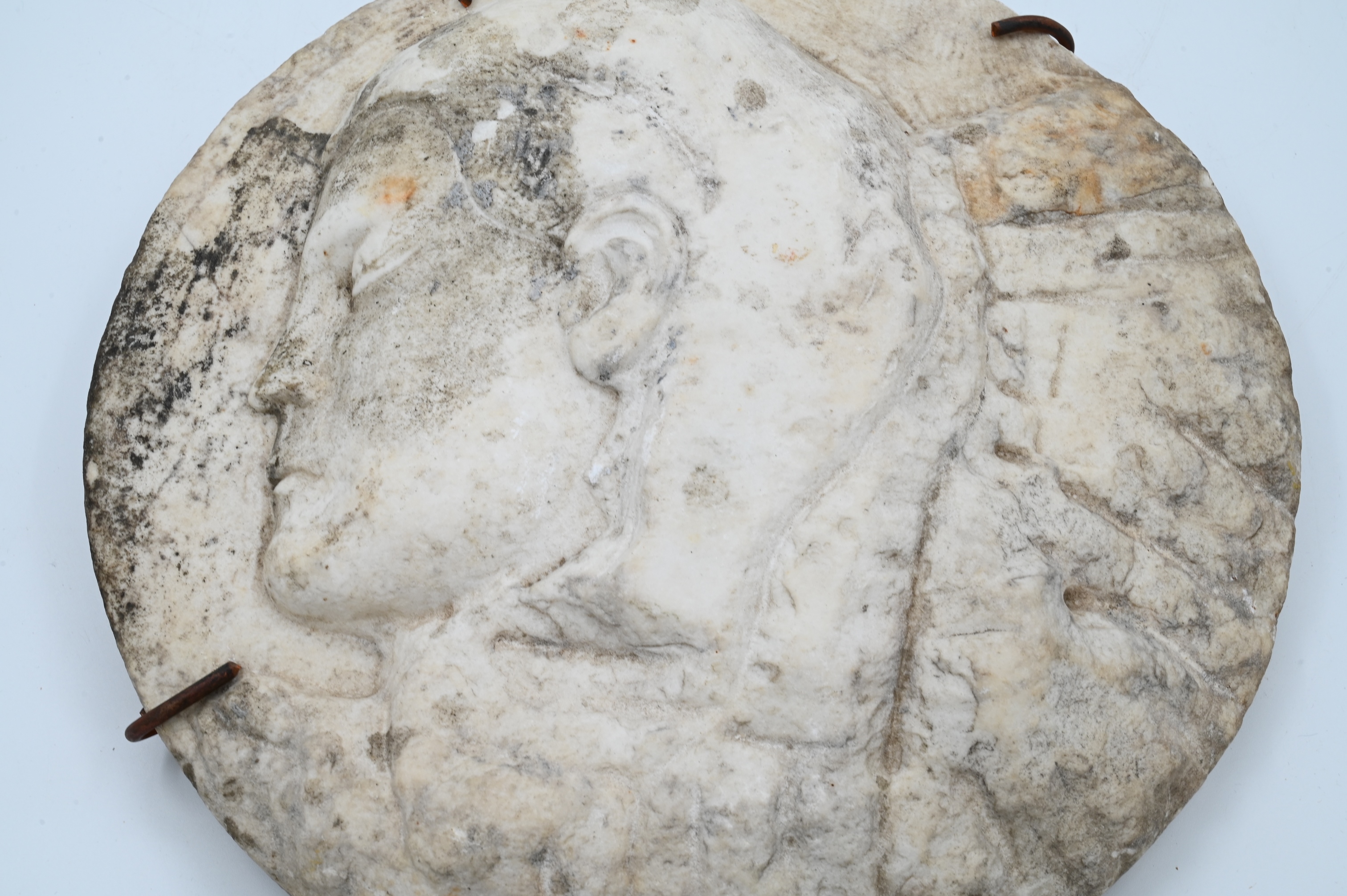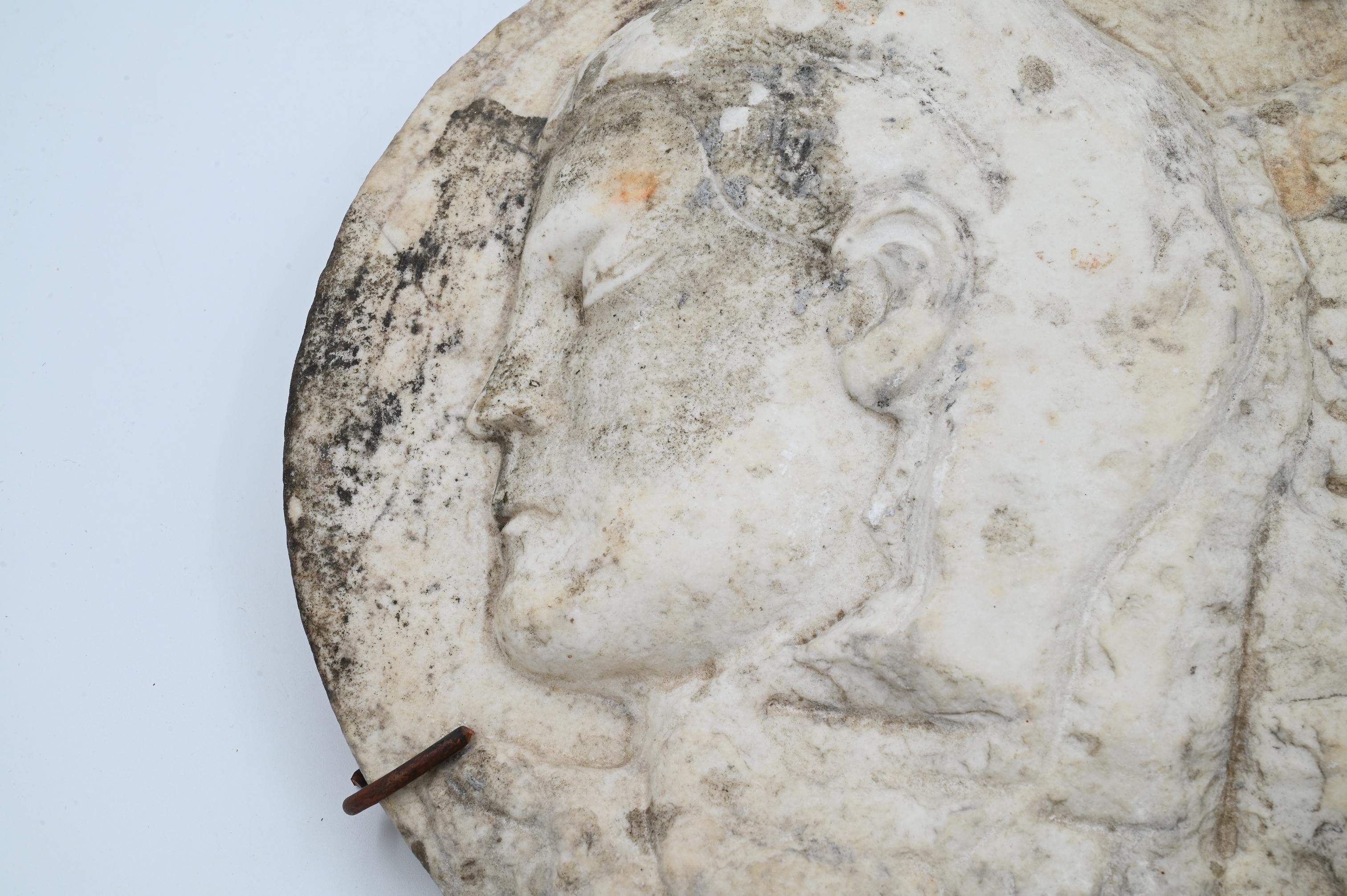 Lot 598: Carved Marble Portrait Plaque with Female Head