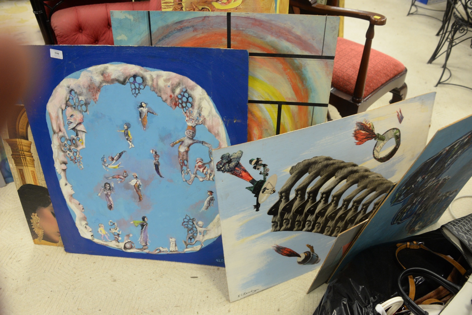 Lot 598: Group of Seven Nathan Reichs each mixed media on masonite or board each signed in various locations, all unframed 36 x 24 largest