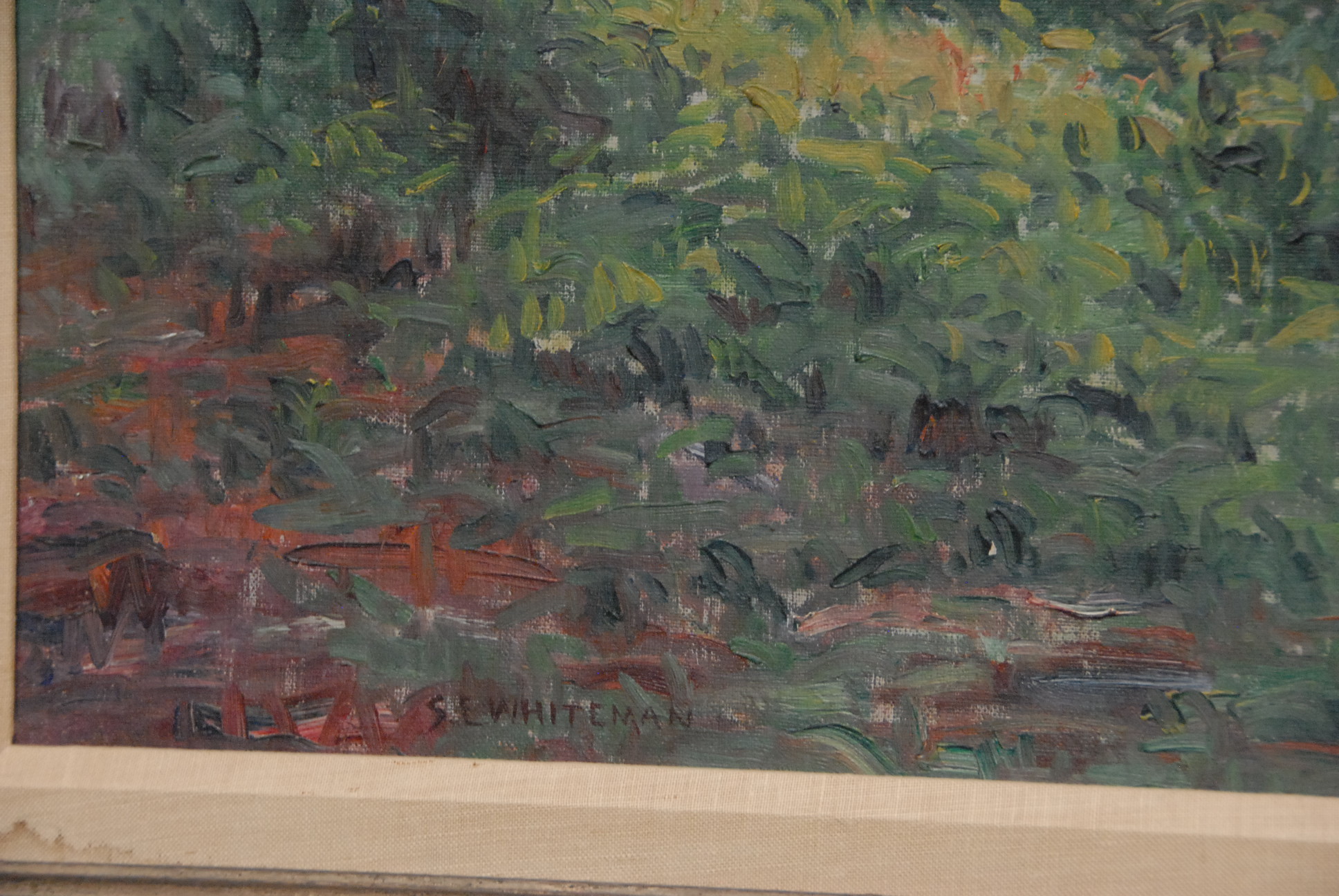 Lot 598: Samuel Edwin Whiteman 1860-1922 SUMMER OVERLOOKING OCEAN’S INLET oil on board signed lower left S. E. Whiteman 29 x 38