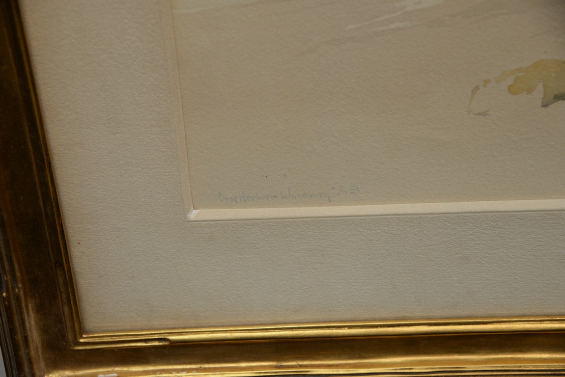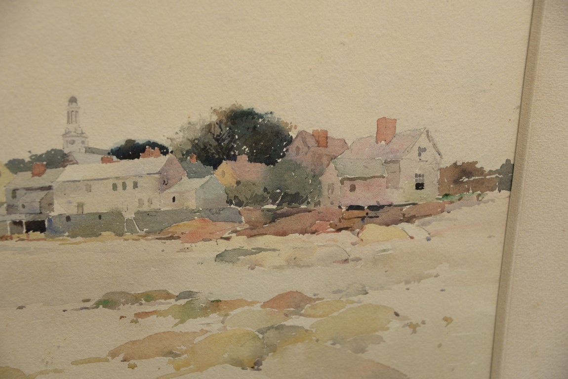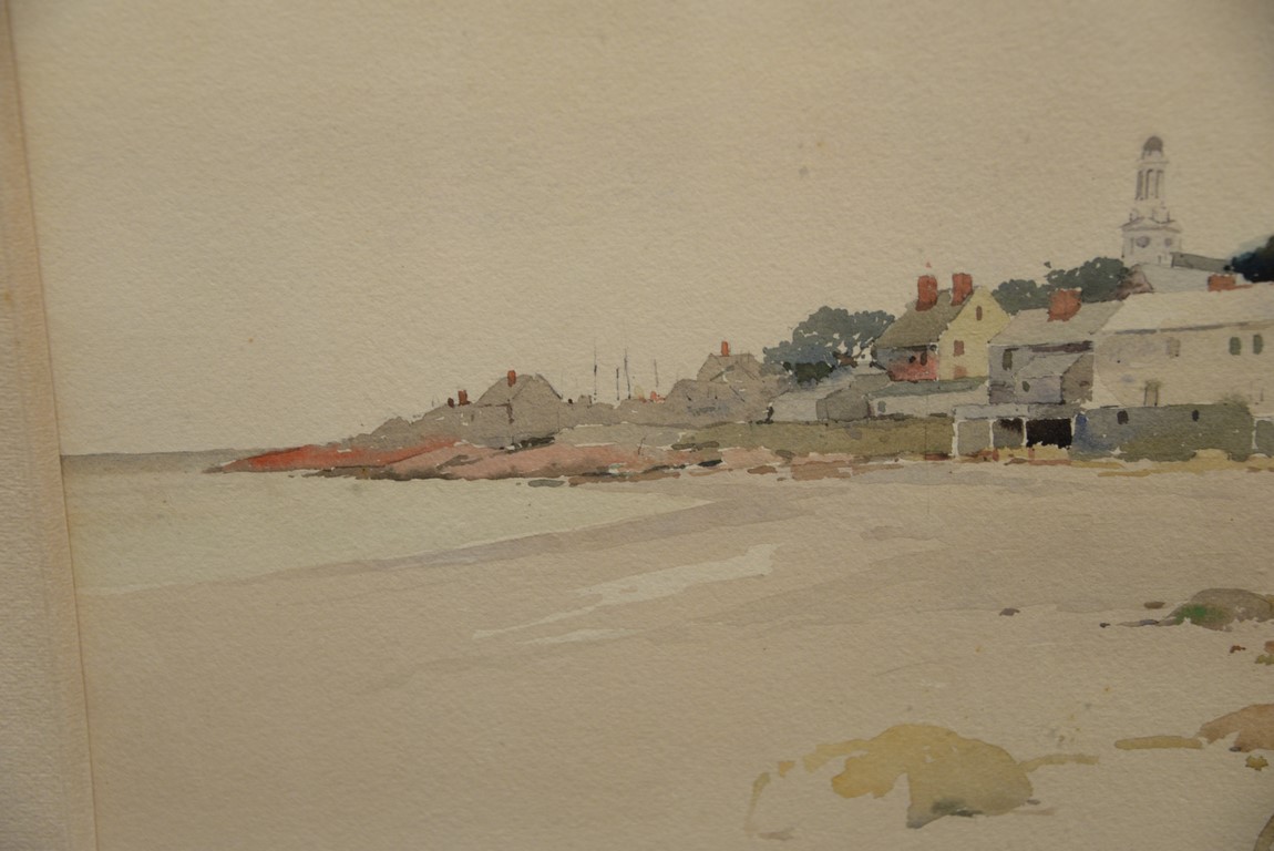Charles Herbert Woodbury 1864-1940 Beach Front Houses watercolor signed lower left: Chas Herbert Woodbury 59′ sight size 12 x 19 Provenance: The Estate of Natalie Rafferty