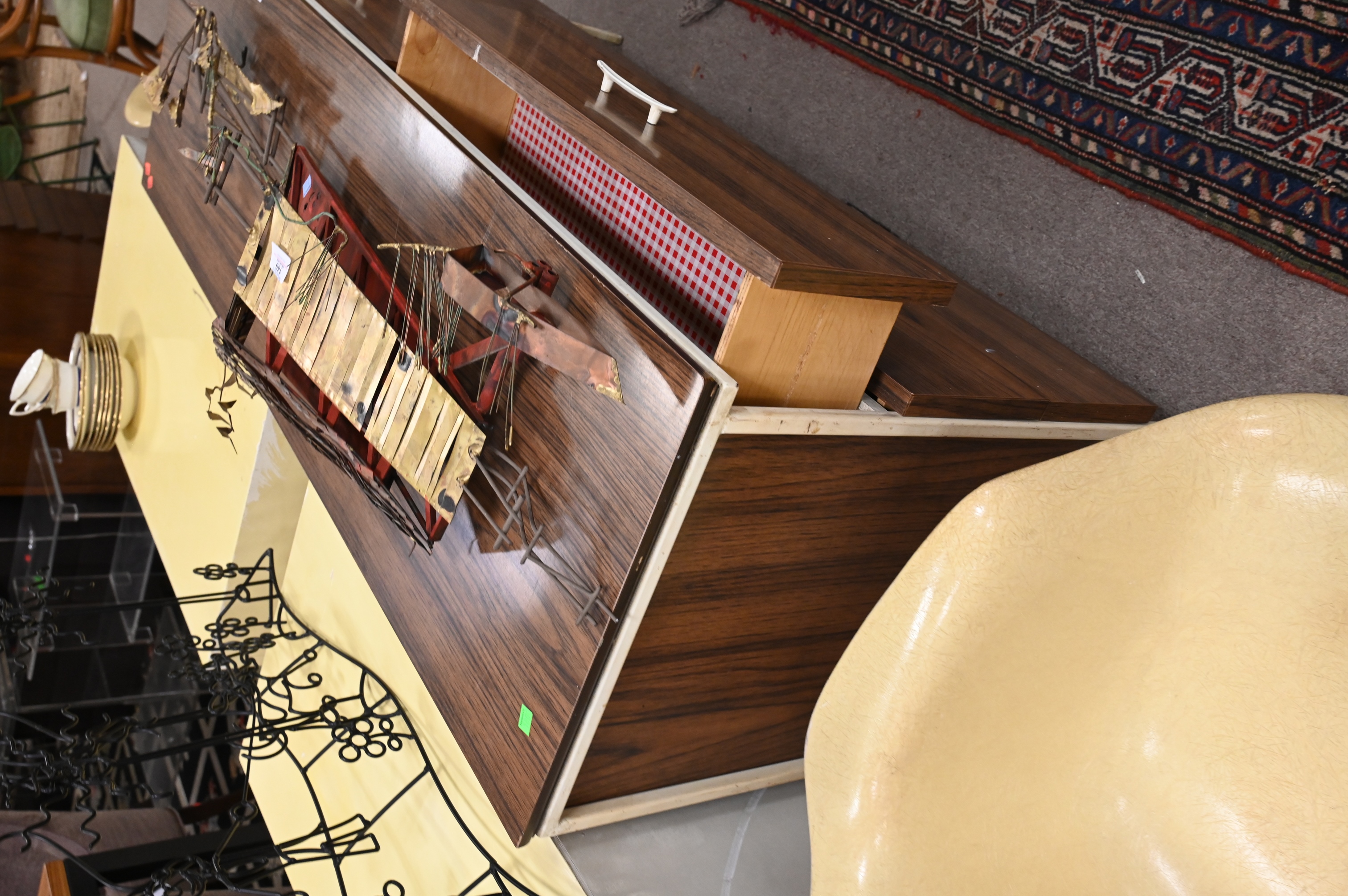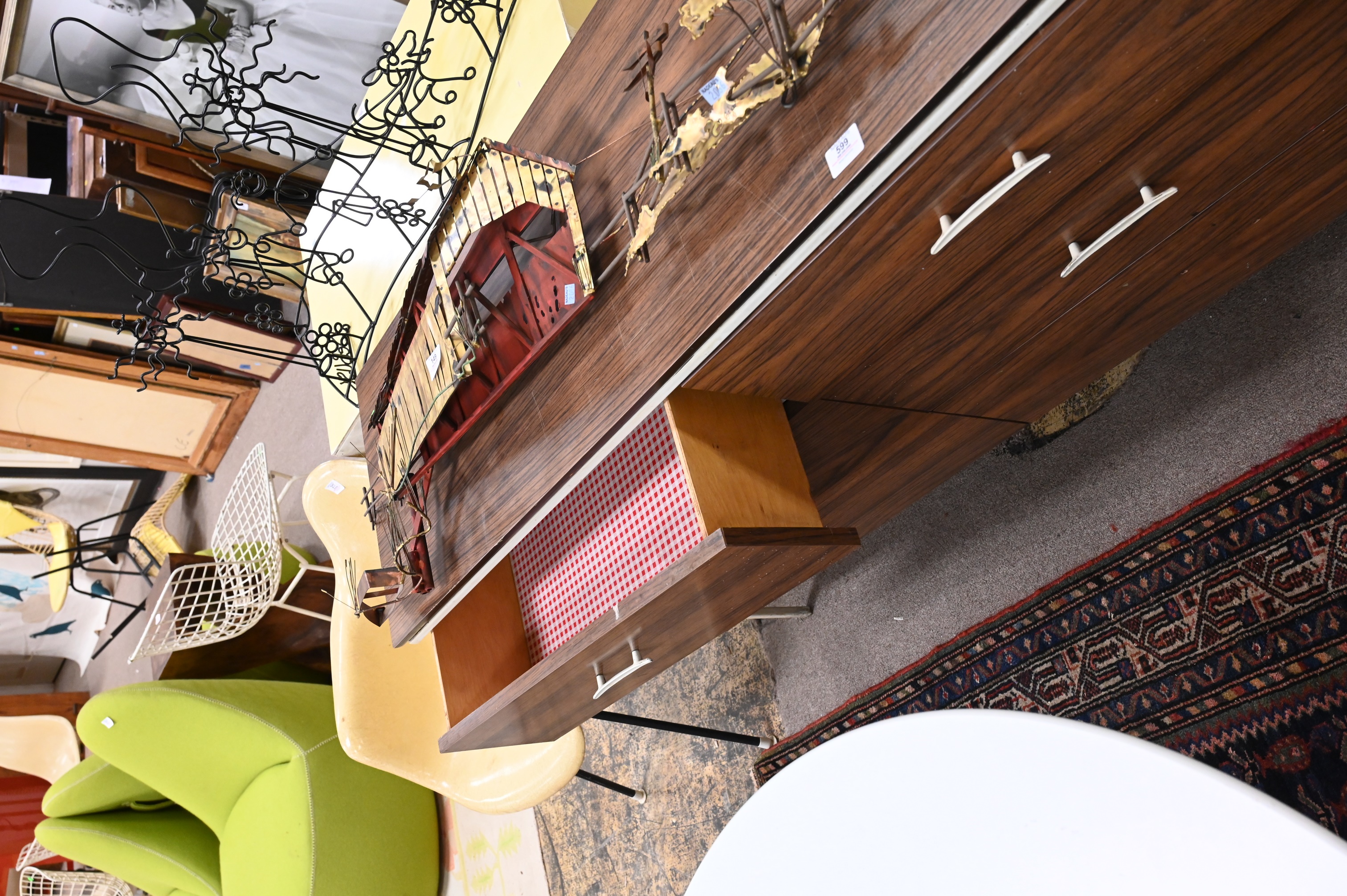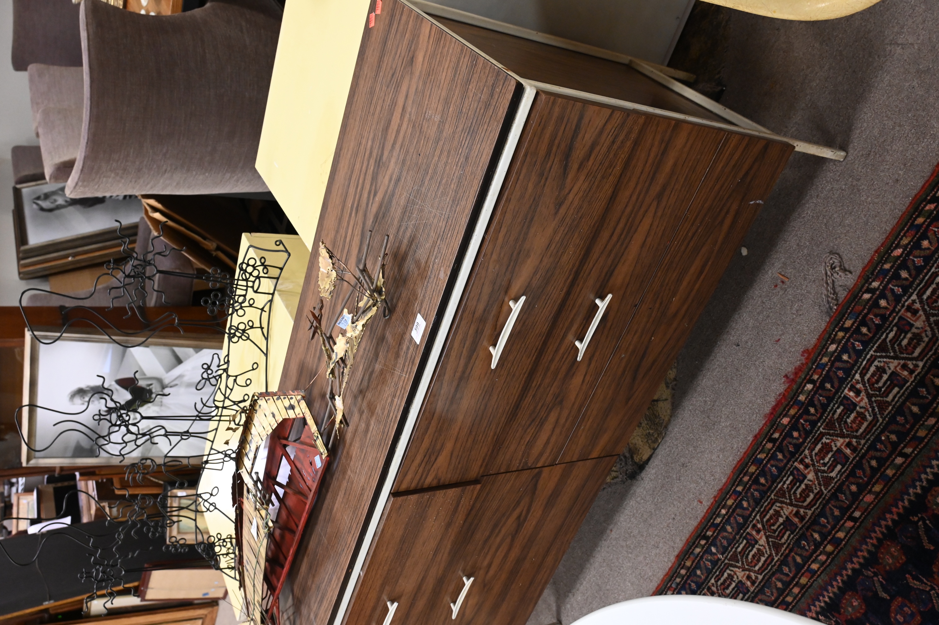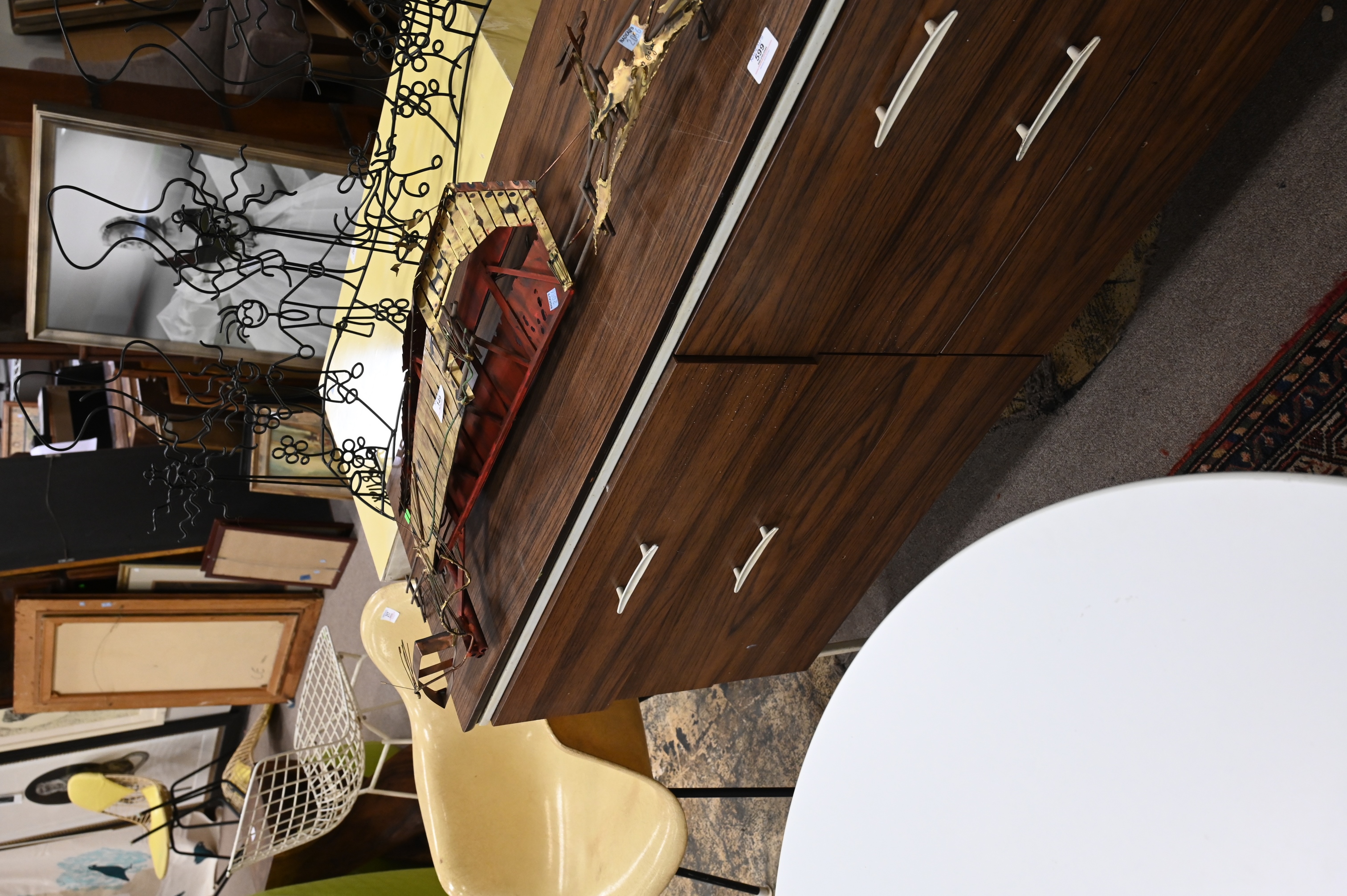 steel framed vista of California dresser having six drawers, two pulls missing