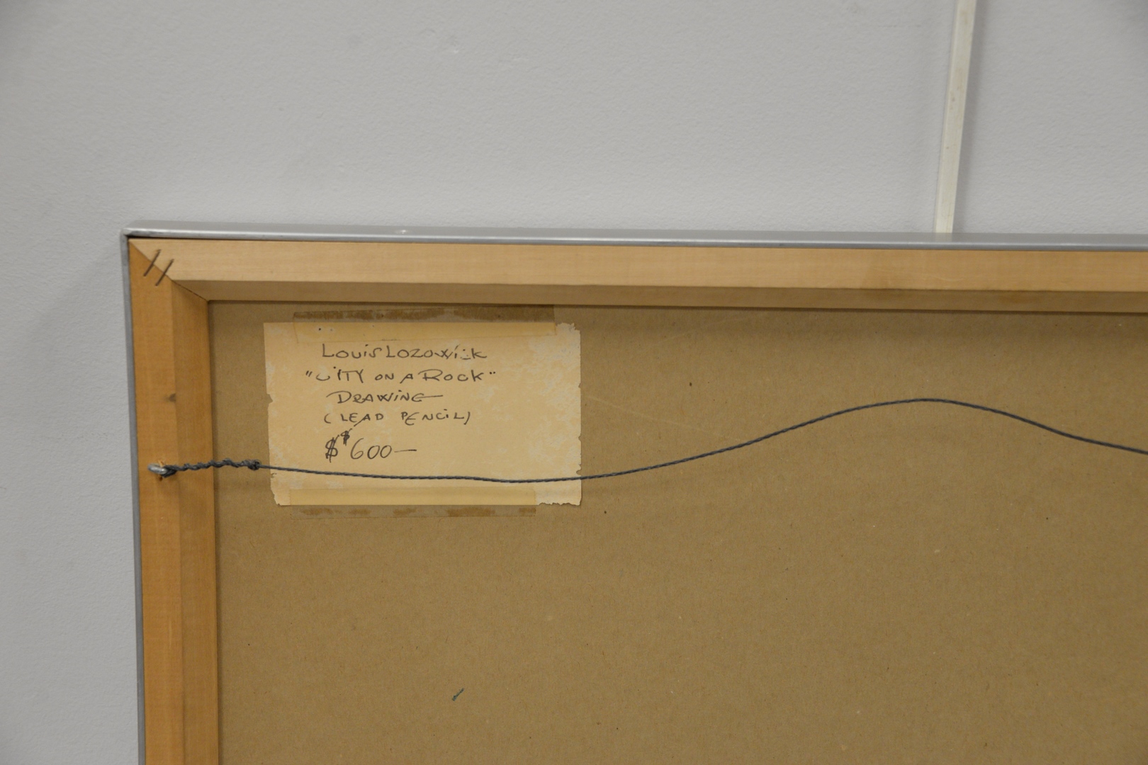 Lot 599: Louis Lozowick 1892 – 1973 City on a Rock pencil on board R>signed Louis Lozowick top right sight size: 11 3/4 x 16 …