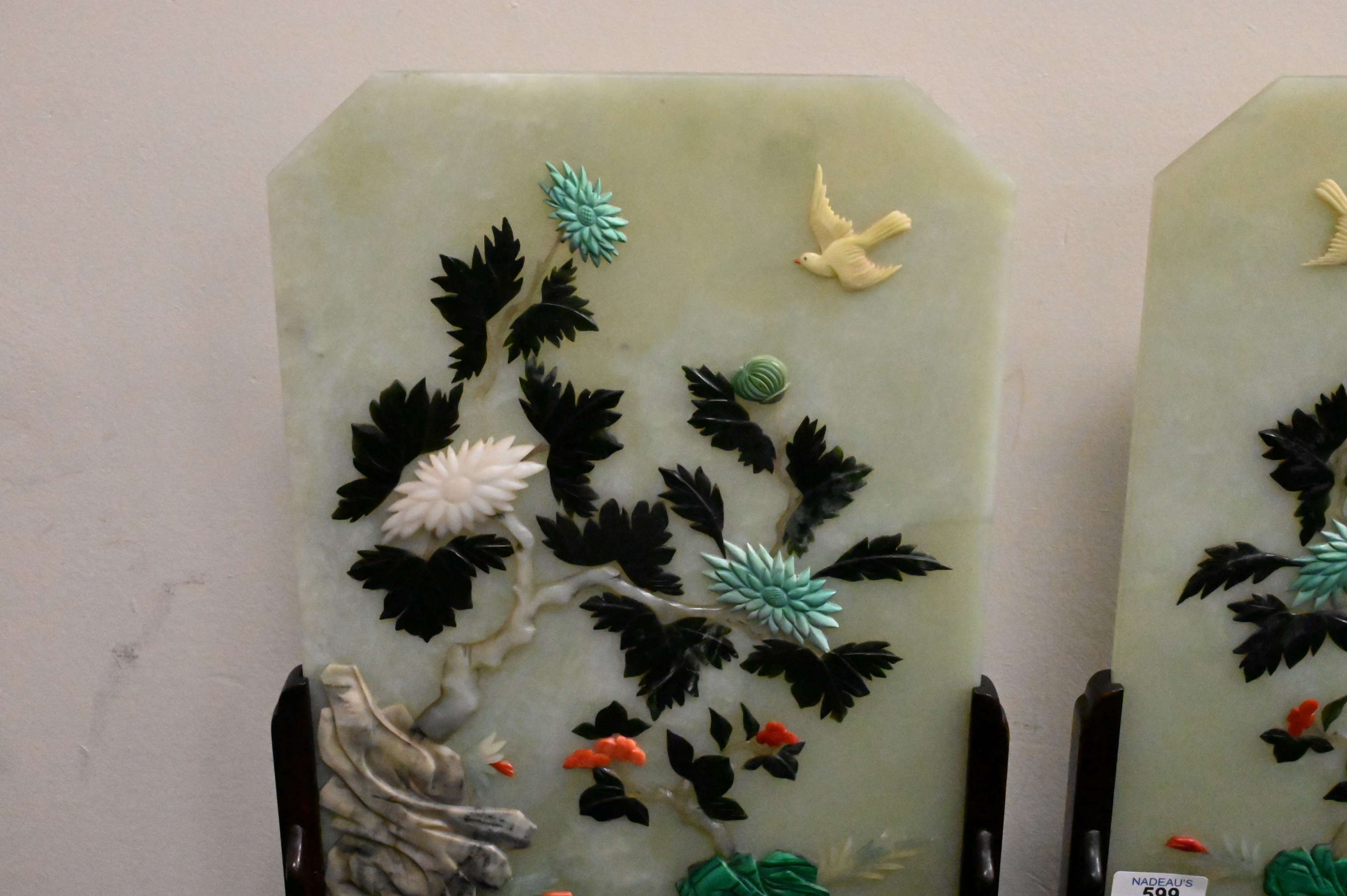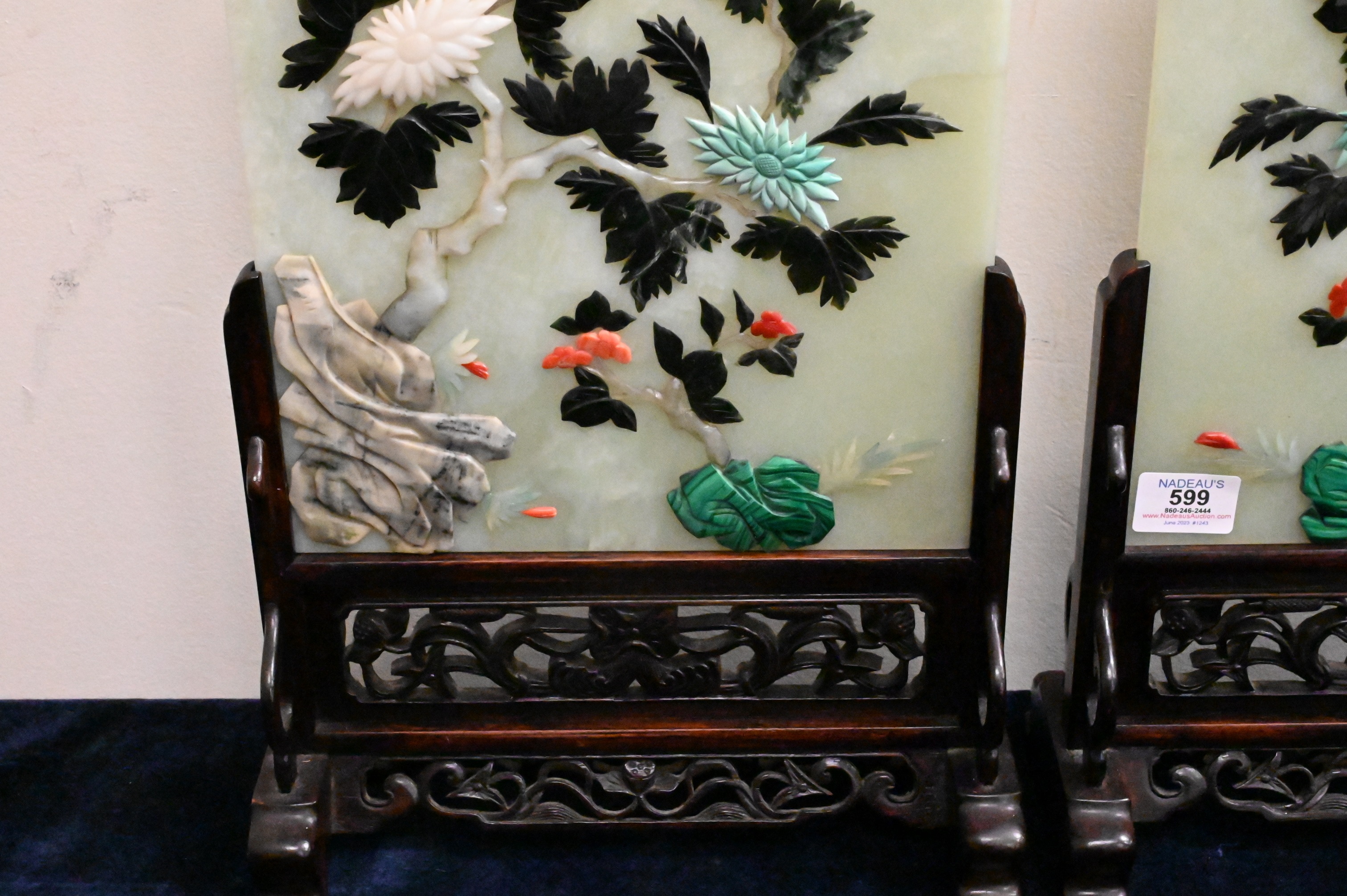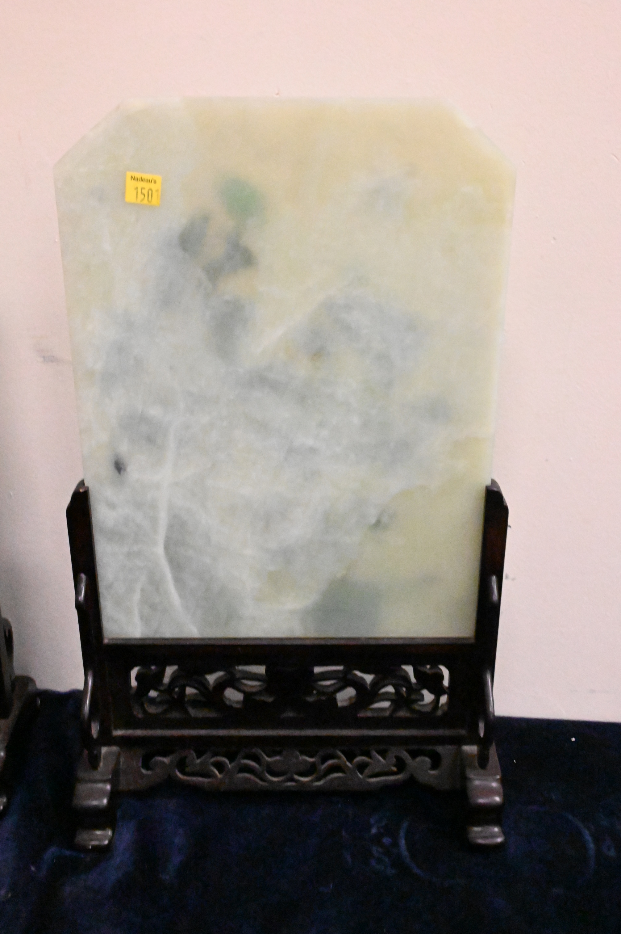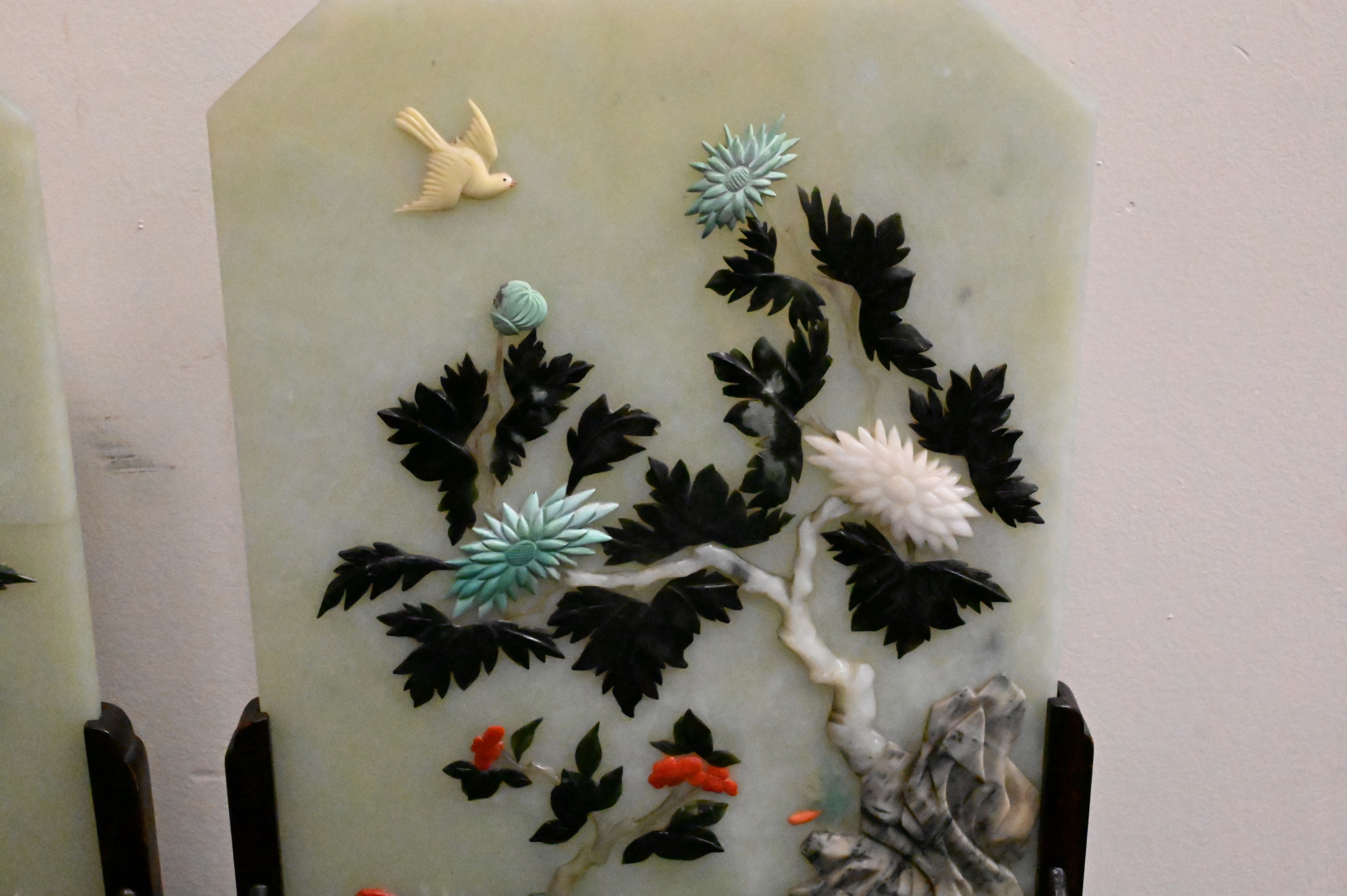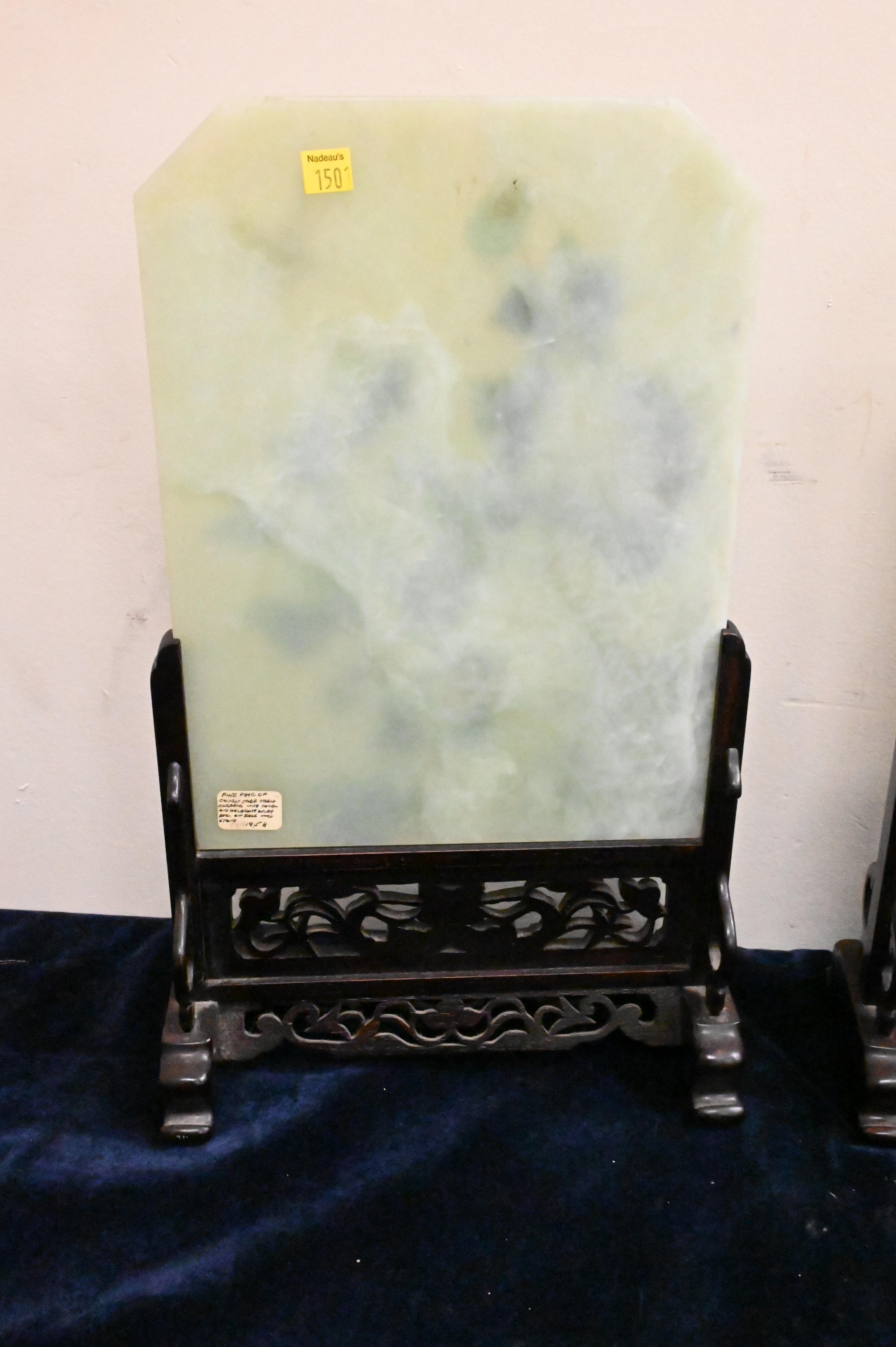 Pair of Jadite Hardstone Screens, placque 14″ x 10 1/2″