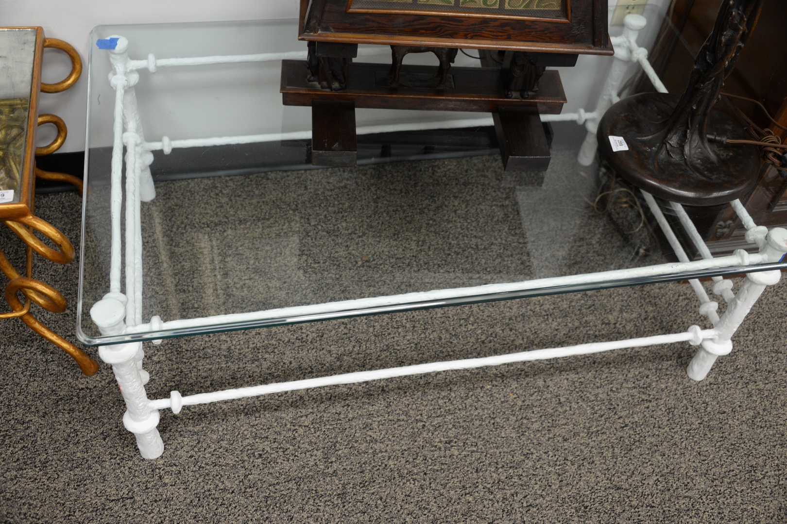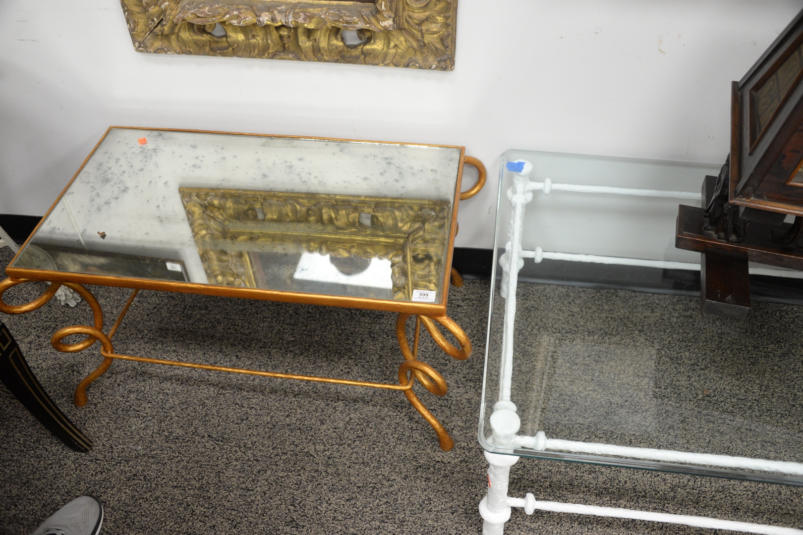 Lot 599: Two Metal Coffee Tables, having mirror tops, height 16 1/2 inches, top: 18 x 32 and height 15 inches, top 29 x 45 1/2.