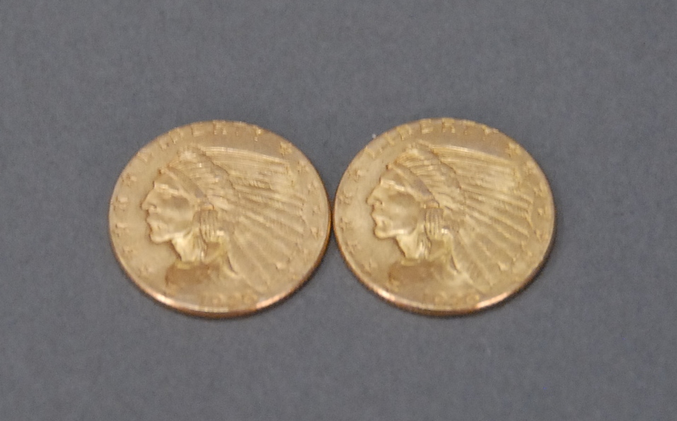 Two gold Indian 2 1/2 dollar coins, 1926.