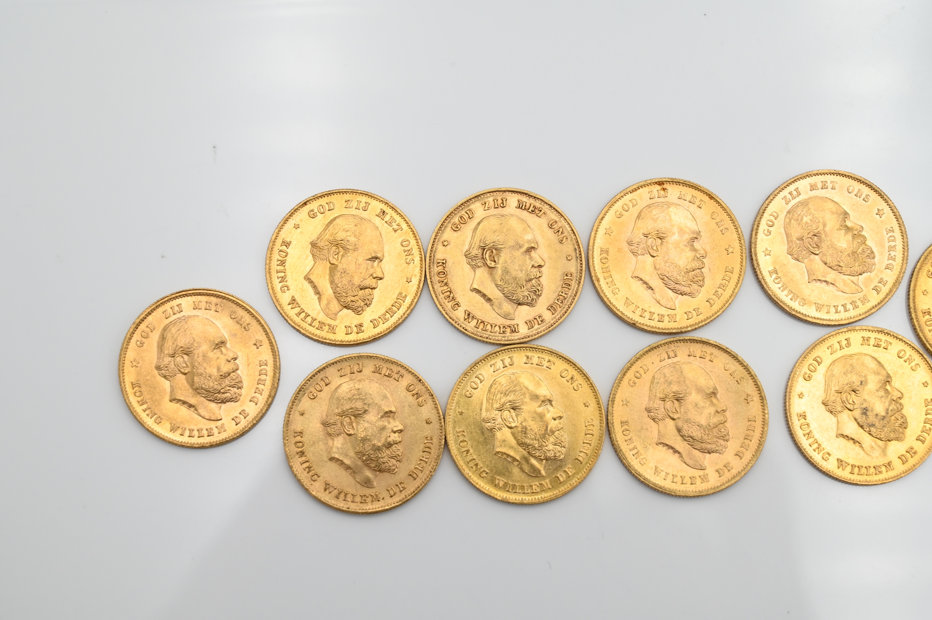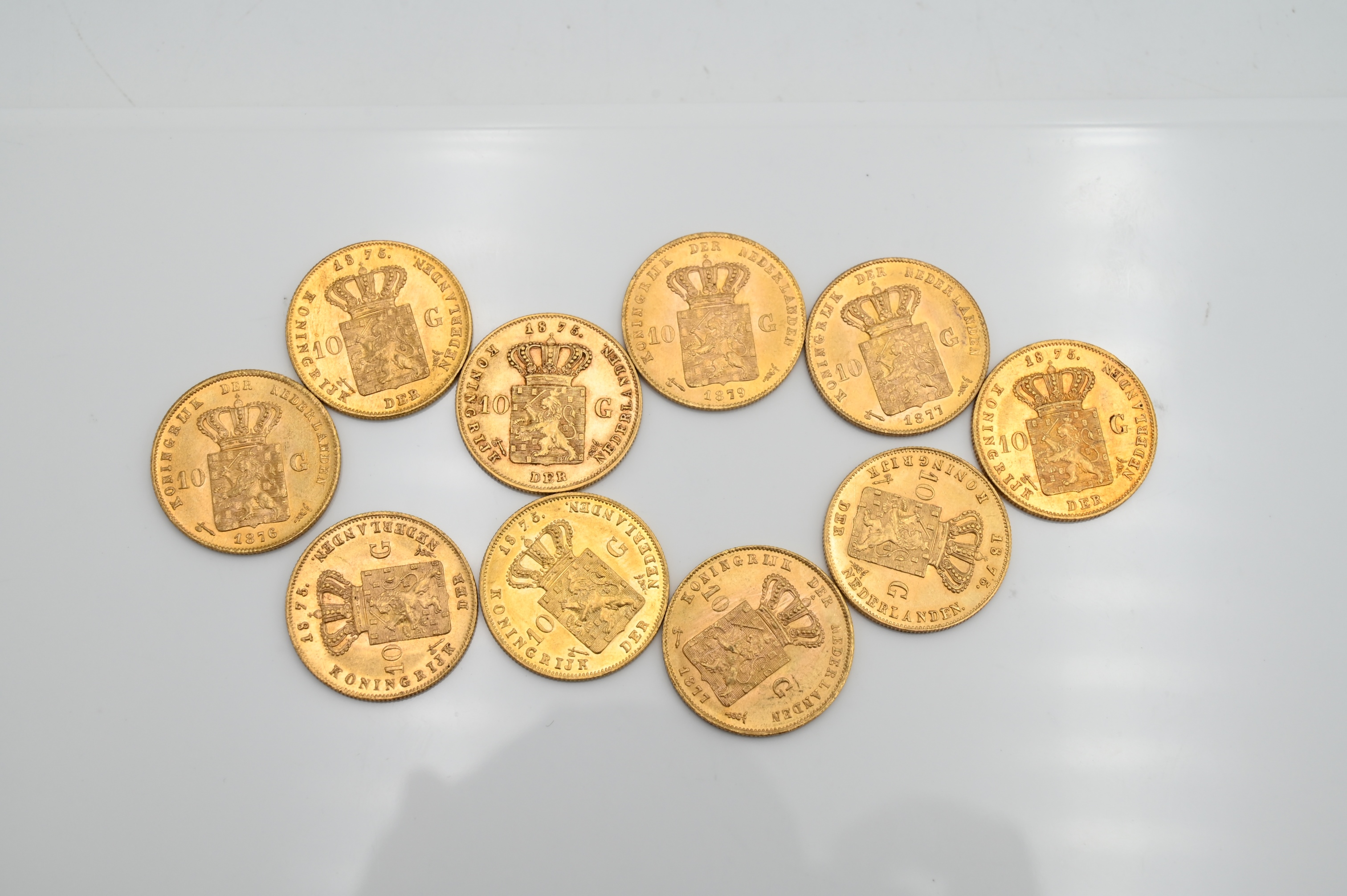 10 Dutch 10 Guilder Uncirculated Gold Coins, 67.2 gr.