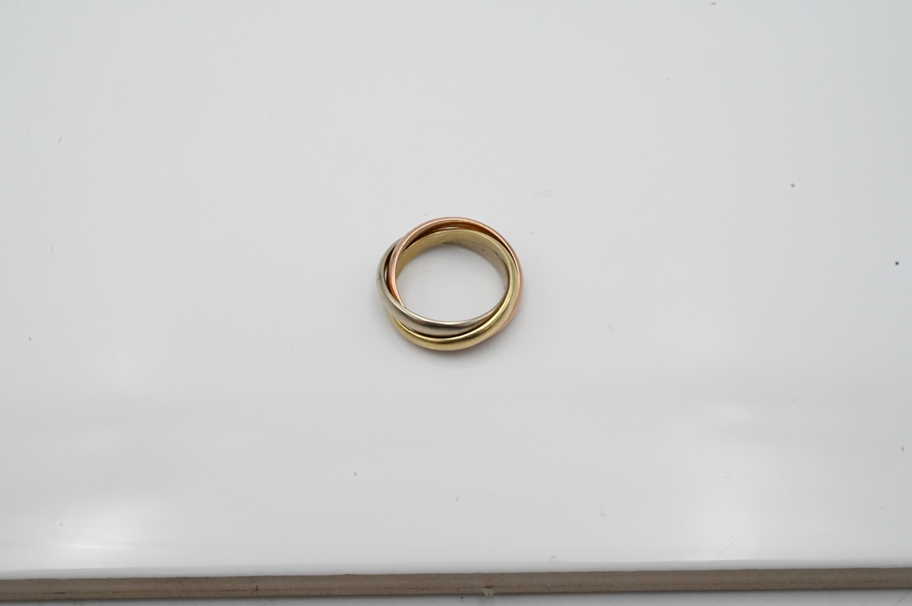 14 Karat Gold Trinity Style Ring, tricolor gold, size 4 1/2, 5.7 grams.