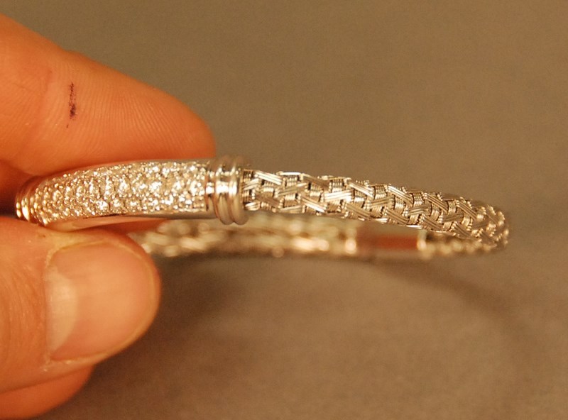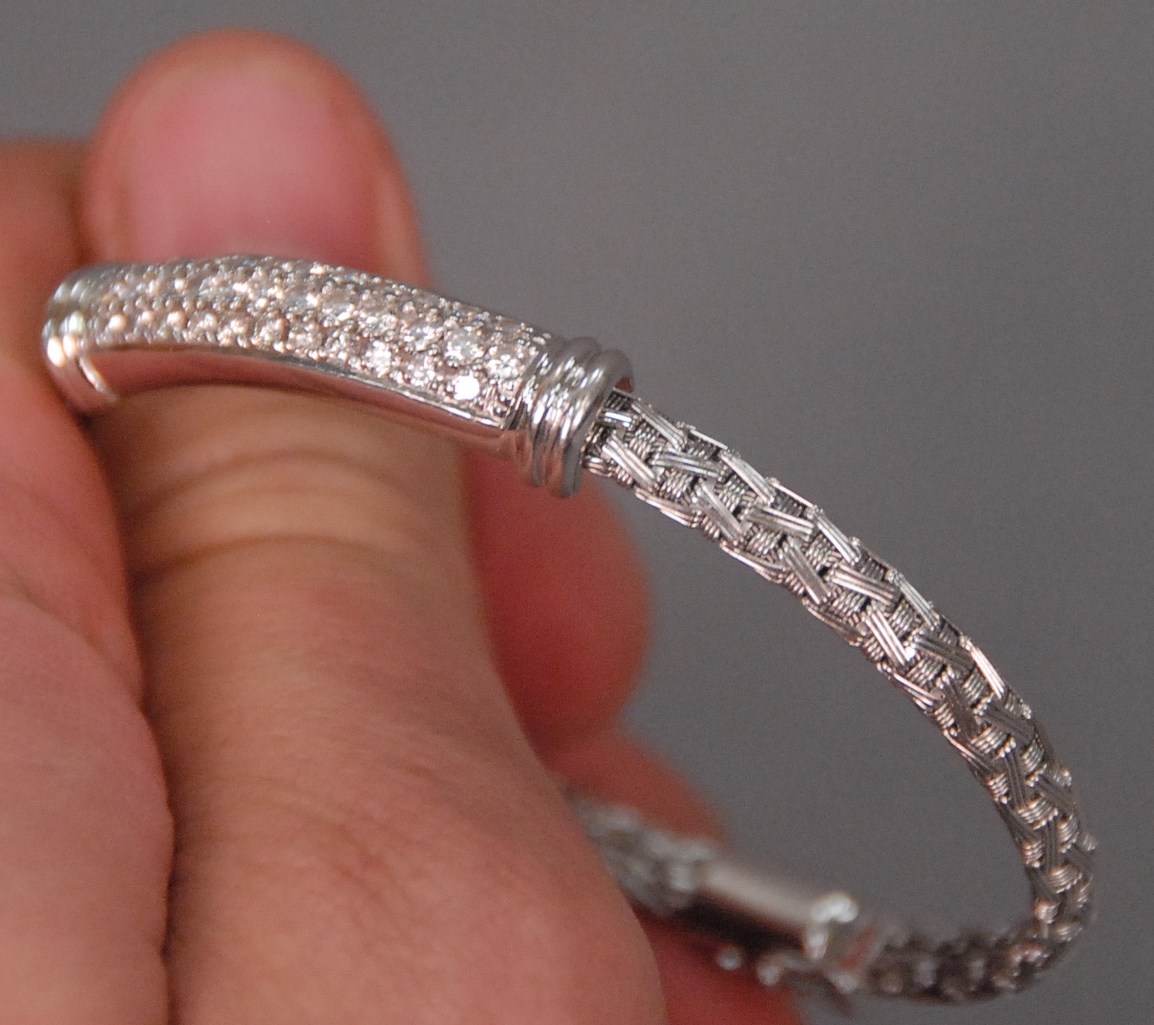 18K white gold bracelet set with pave of diamonds. lg. 7in.