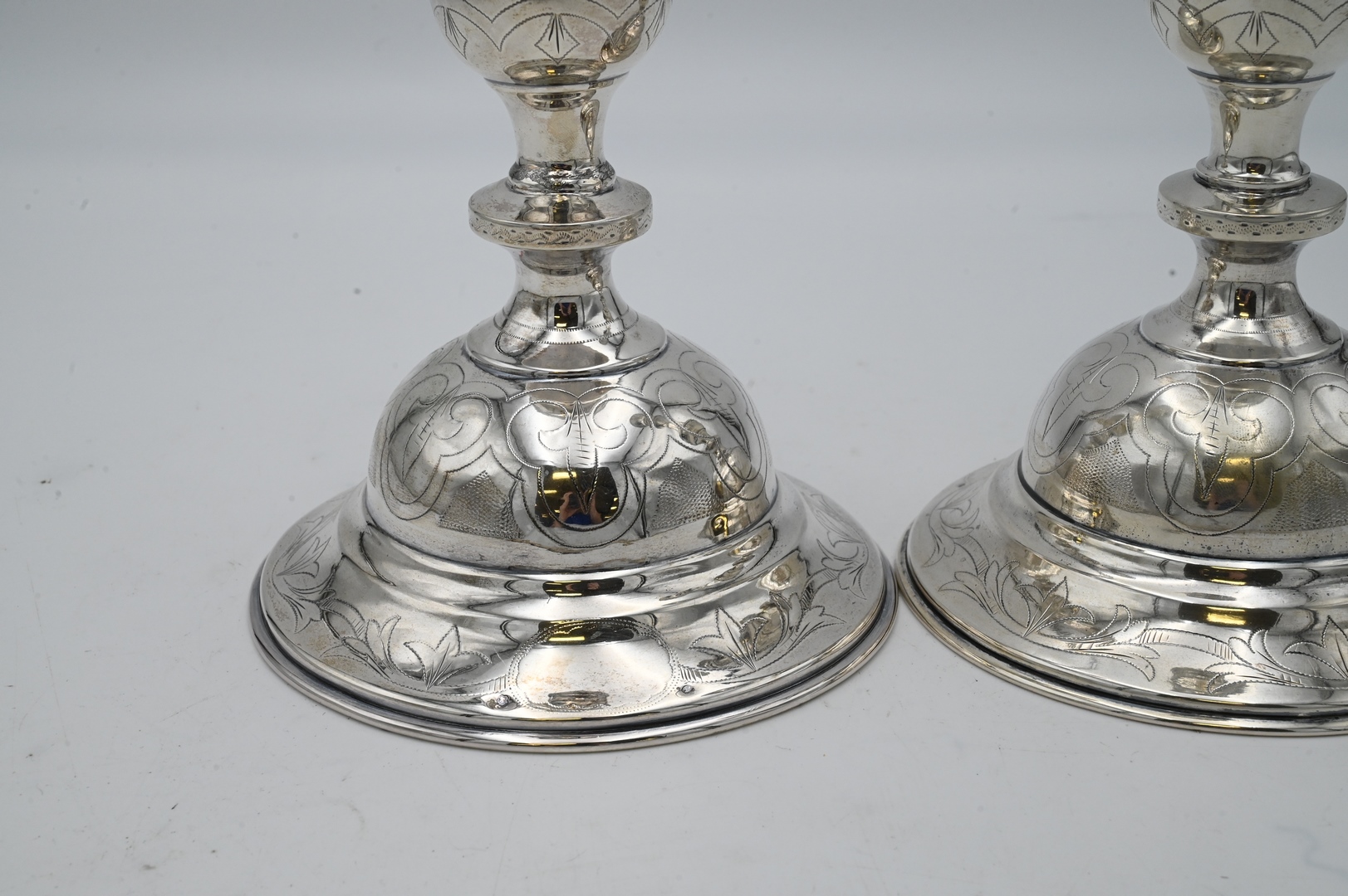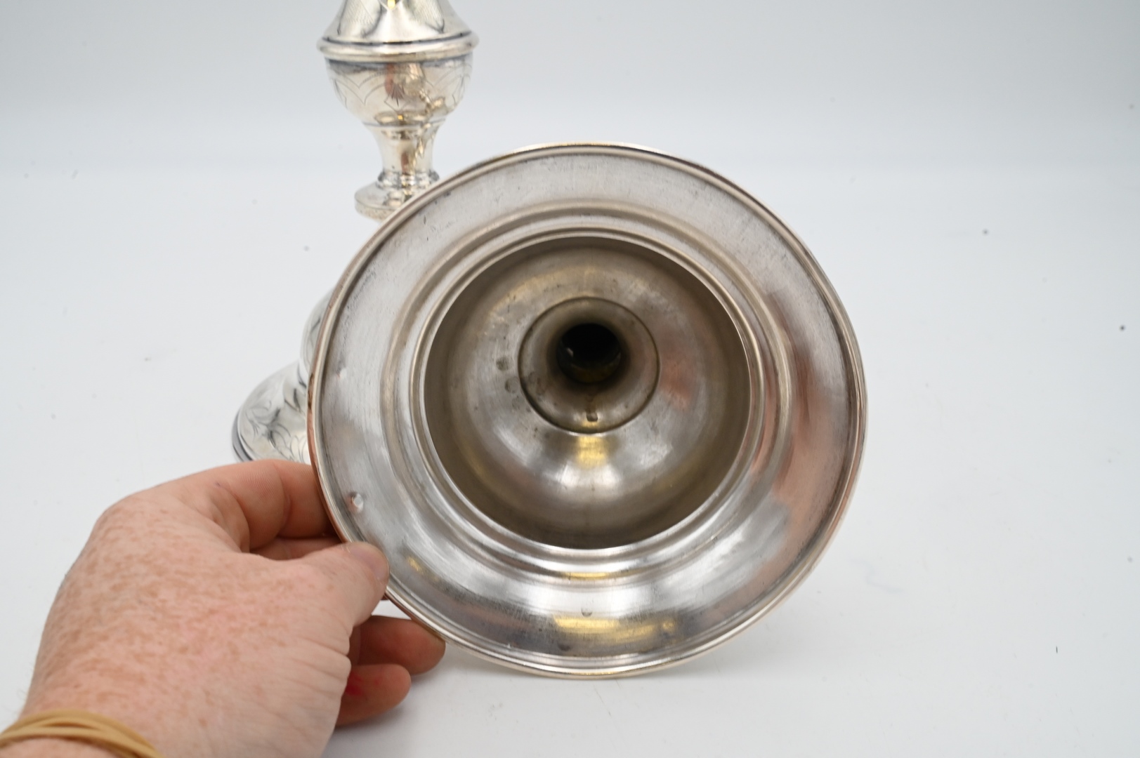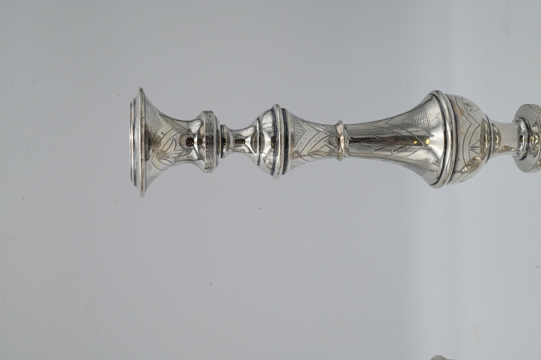 A Pair of Tall Silver Candlesticks, having touch marks on base, height 14 inches, 19.2 t.oz.