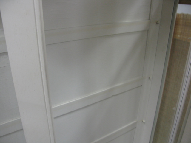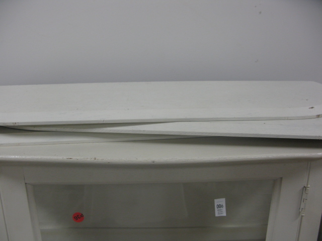 Bowed glass curio cabinet with a plexiglass front painted oak