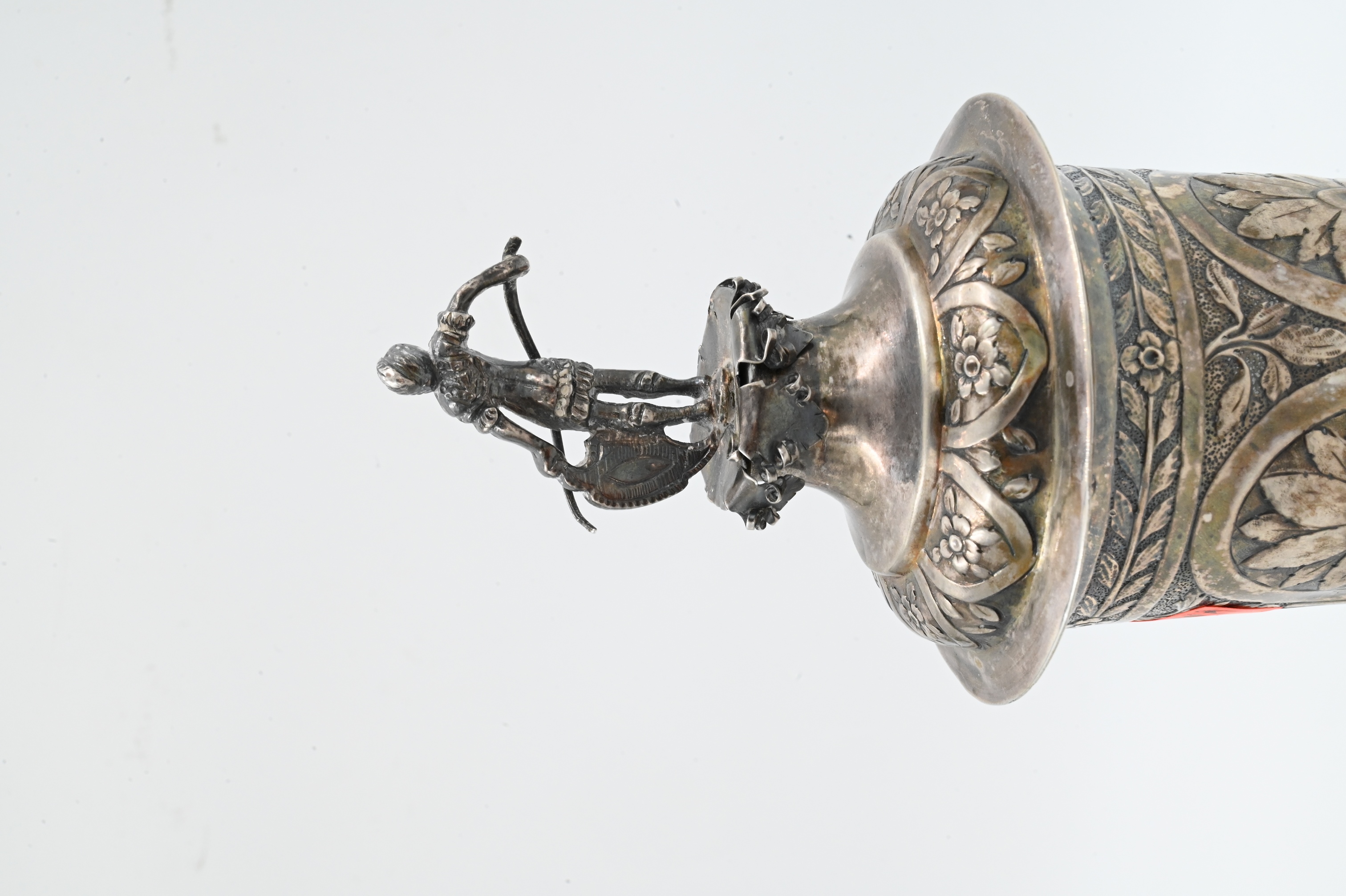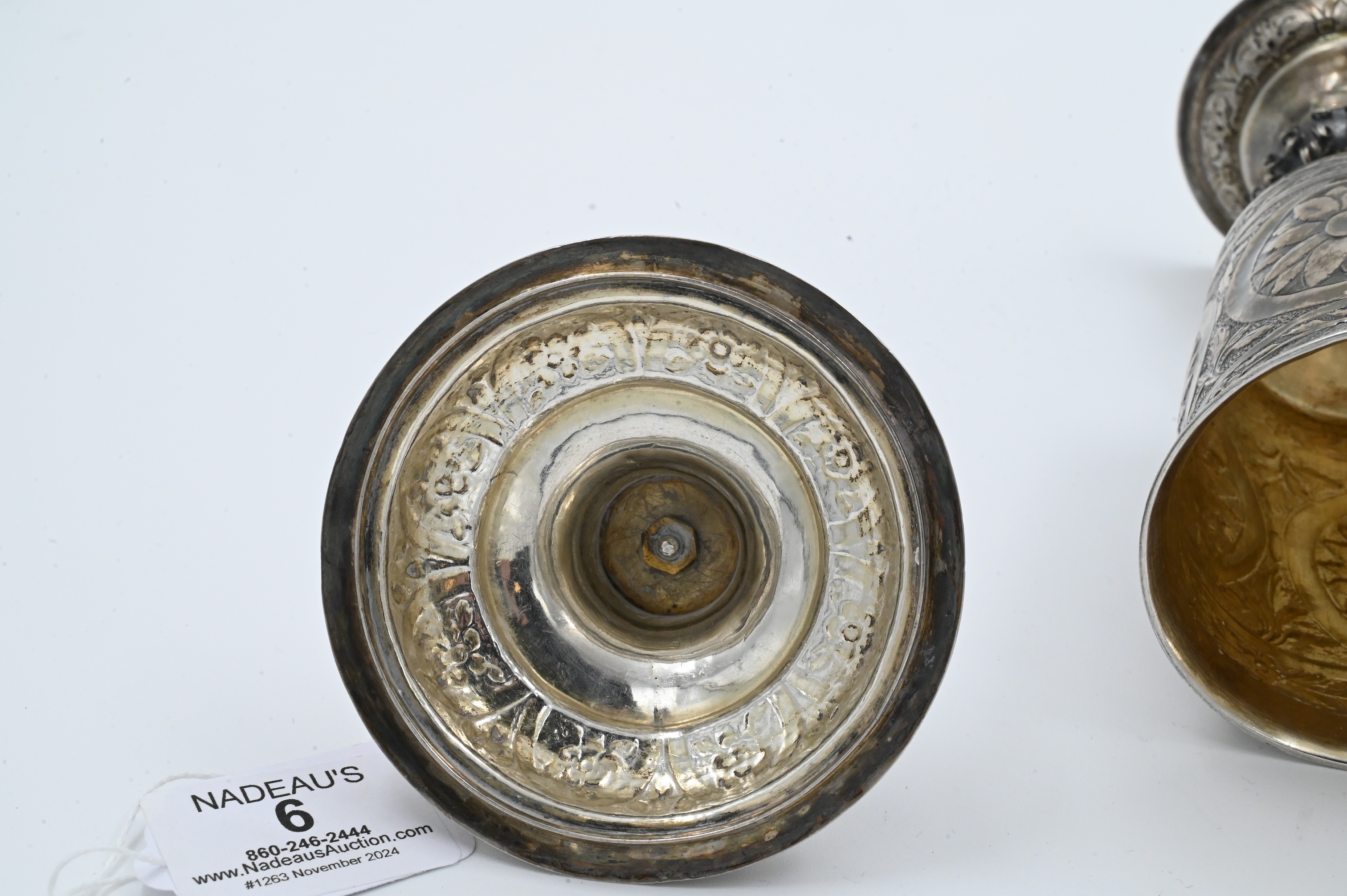 decorated with chased flowers and leaves motif, gold wash, some leaves missing