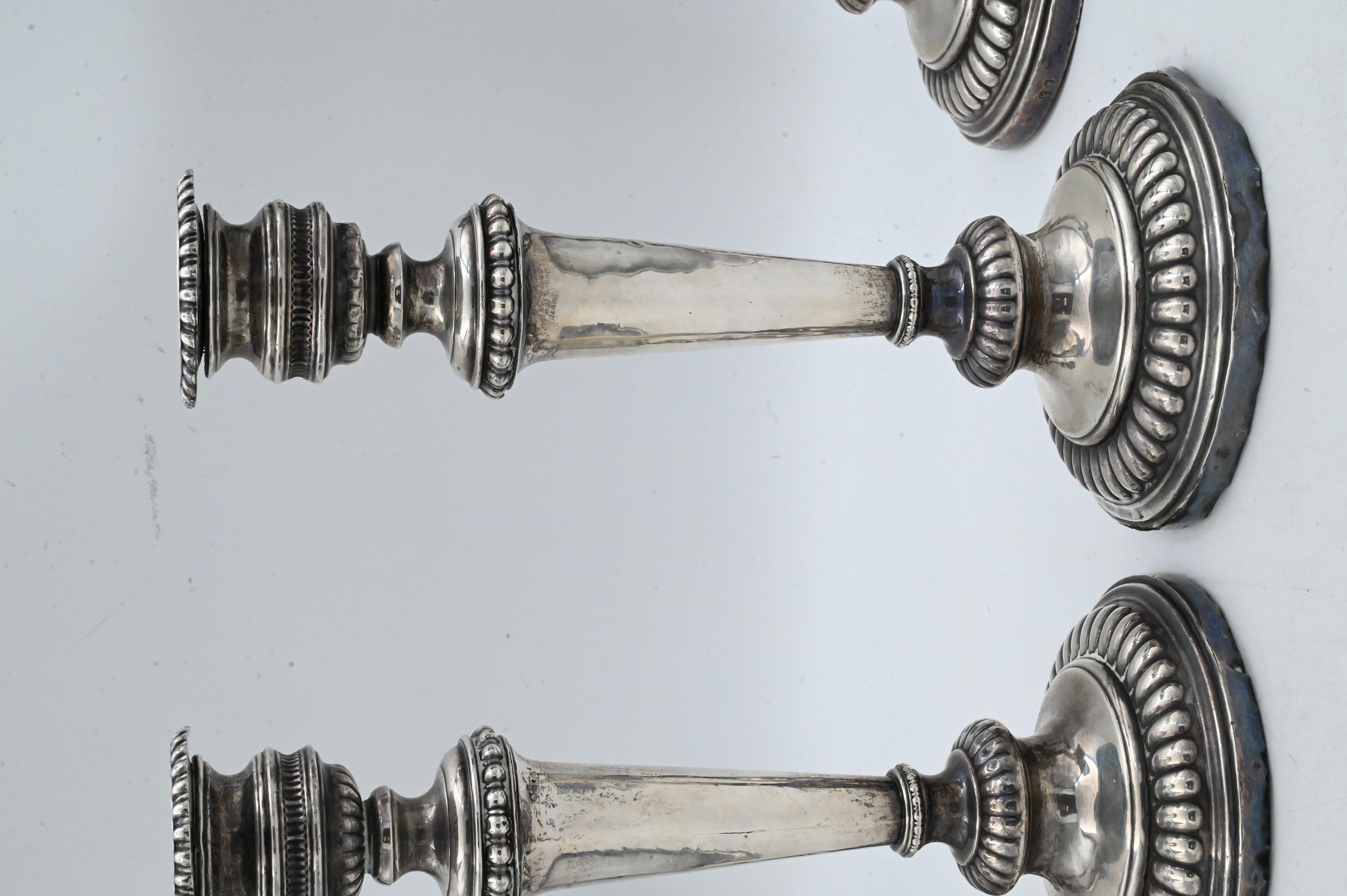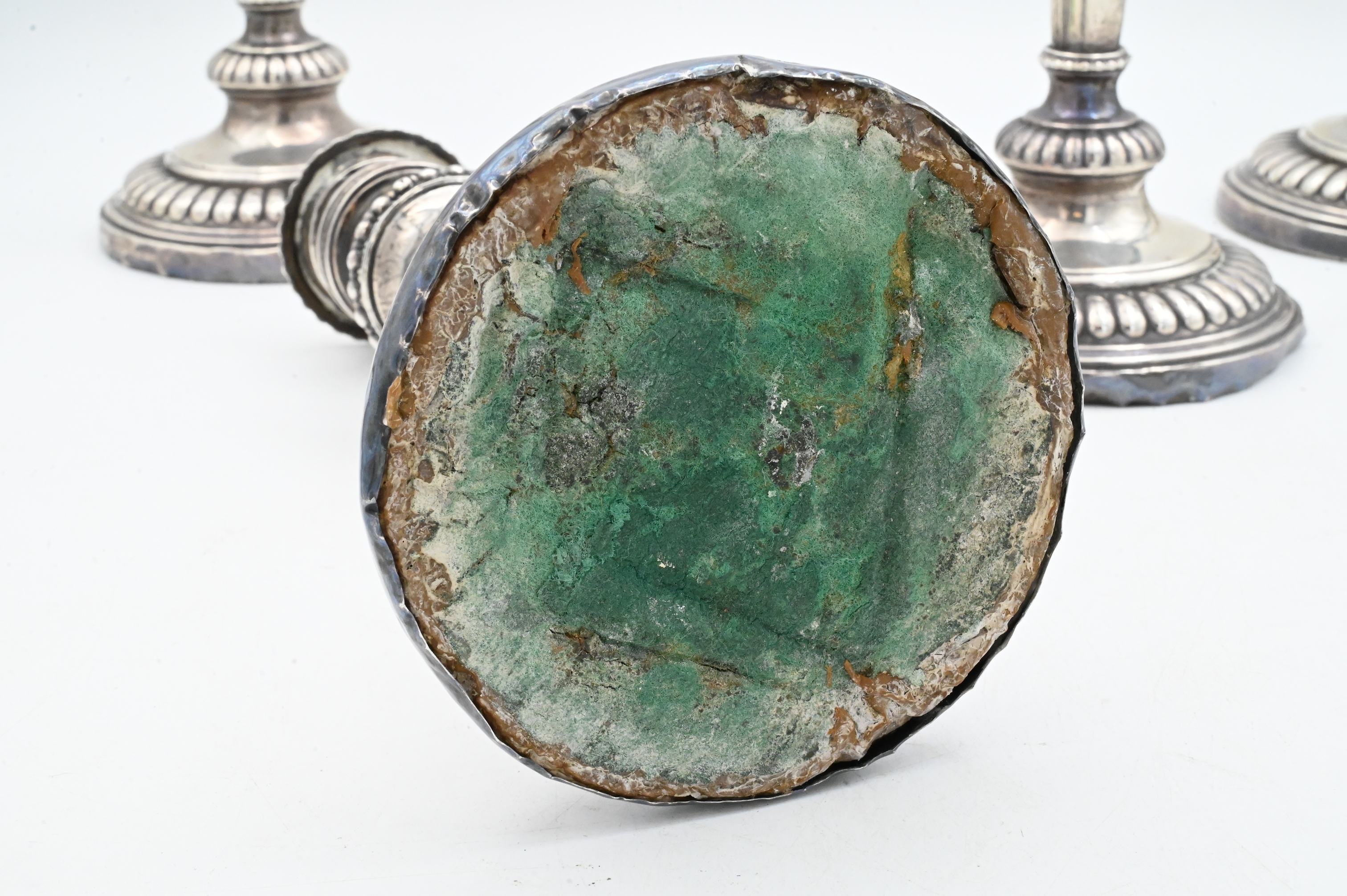 J.T. Younge Walker and Crowder Sheffield Set of Four George III Weighted Sterling Silver Candlesticks