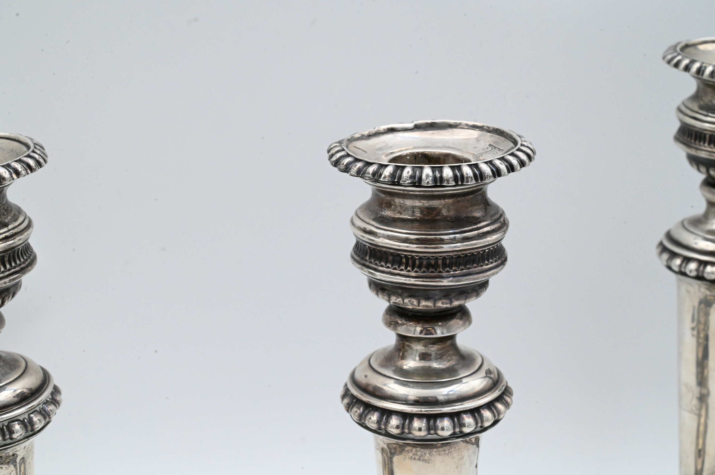 Lot 6: J.T. Younge Walker and Crowder Sheffield Set of Four George III Weighted Sterling Silver Candlesticks