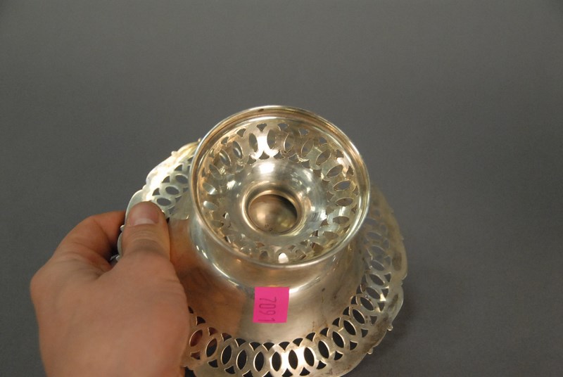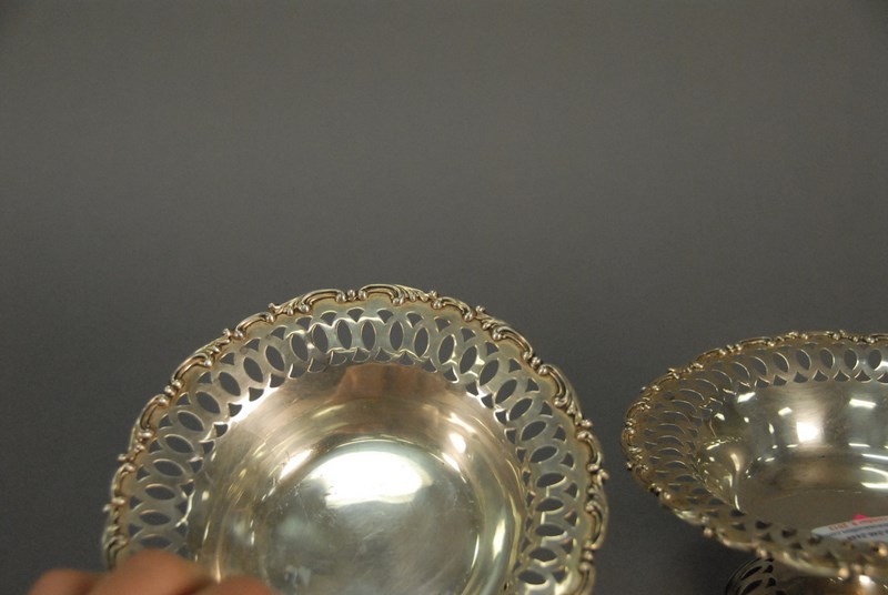 Pair of sterling silver reticulated tazzas, 7.2 t oz., ht. 3in. dia. 6in.