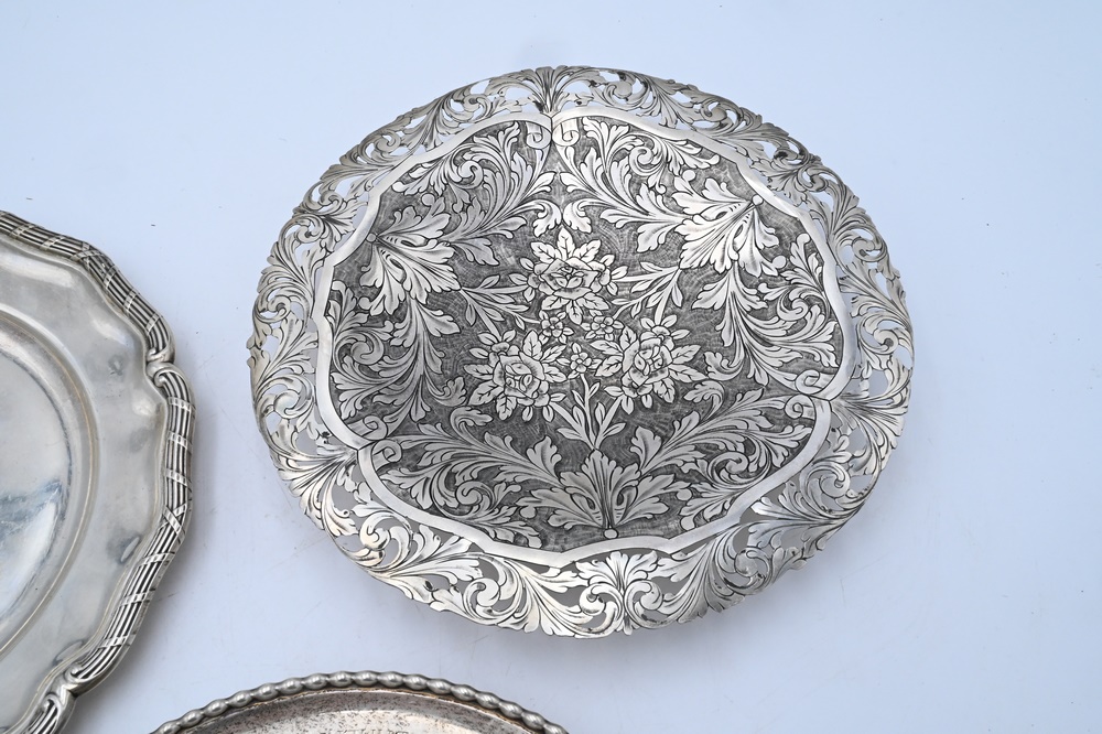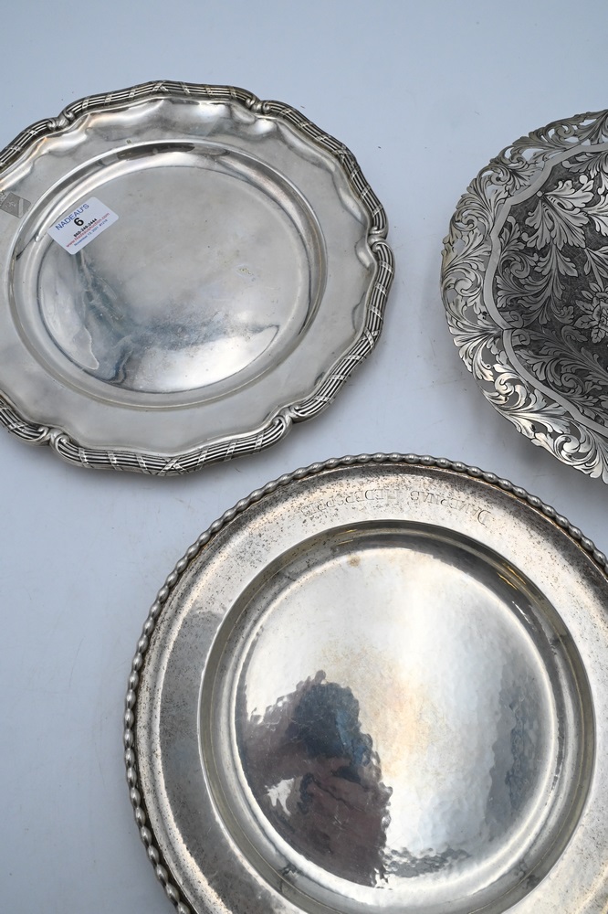 Three Piece Continental Silver Plates, largest in diameter 10 1/2 inches, 35.8 t.oz.