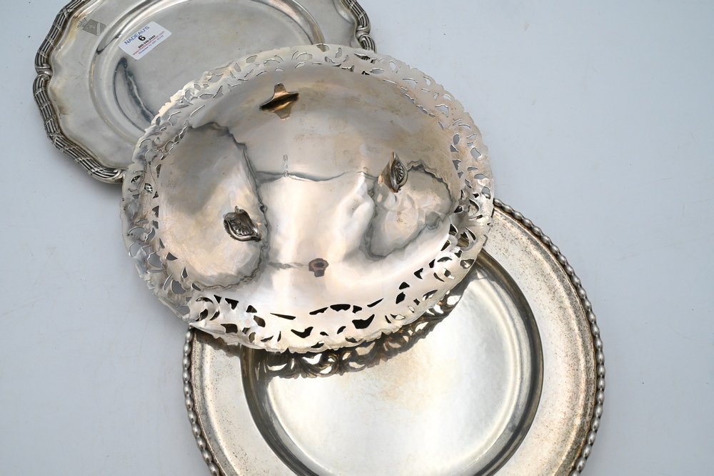 Lot 6: Three Piece Continental Silver Plates, largest in diameter 10 1/2 inches, 35.8 t.oz.