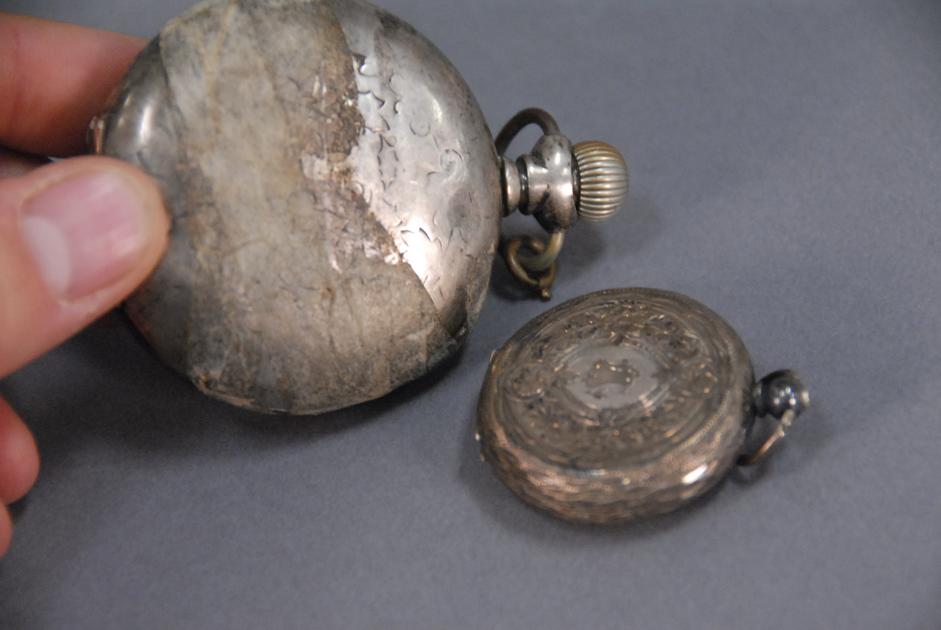 Two silver pocket watches including a key wind.
