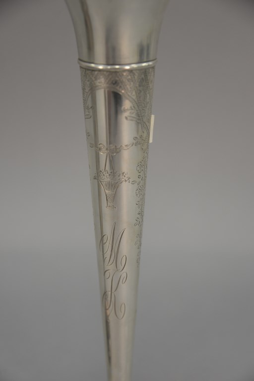 Two weighted sterling silver vases, ht. 12 in. & ht. 10 in.