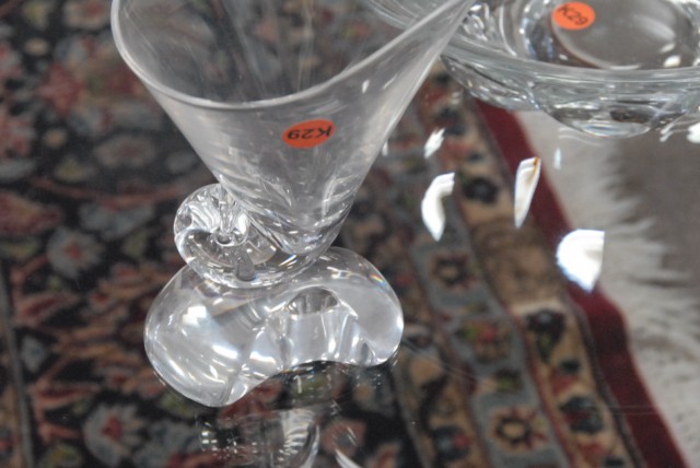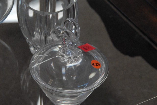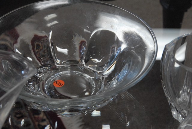 4 pc lot of crystal to include signed Steuben vase and signed Steuben covered bowl.
