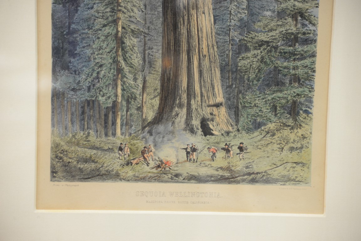 After F. Schenck, colored lithograph, Sequoia Wellingtonioa Mariposa Grove South California, sight size 17 1/2 x 13 Provenance: Property from Credit Suisse’s Americana Collection