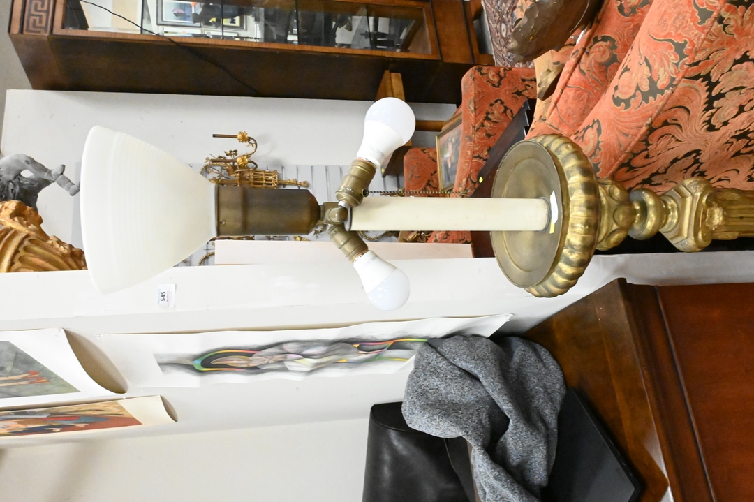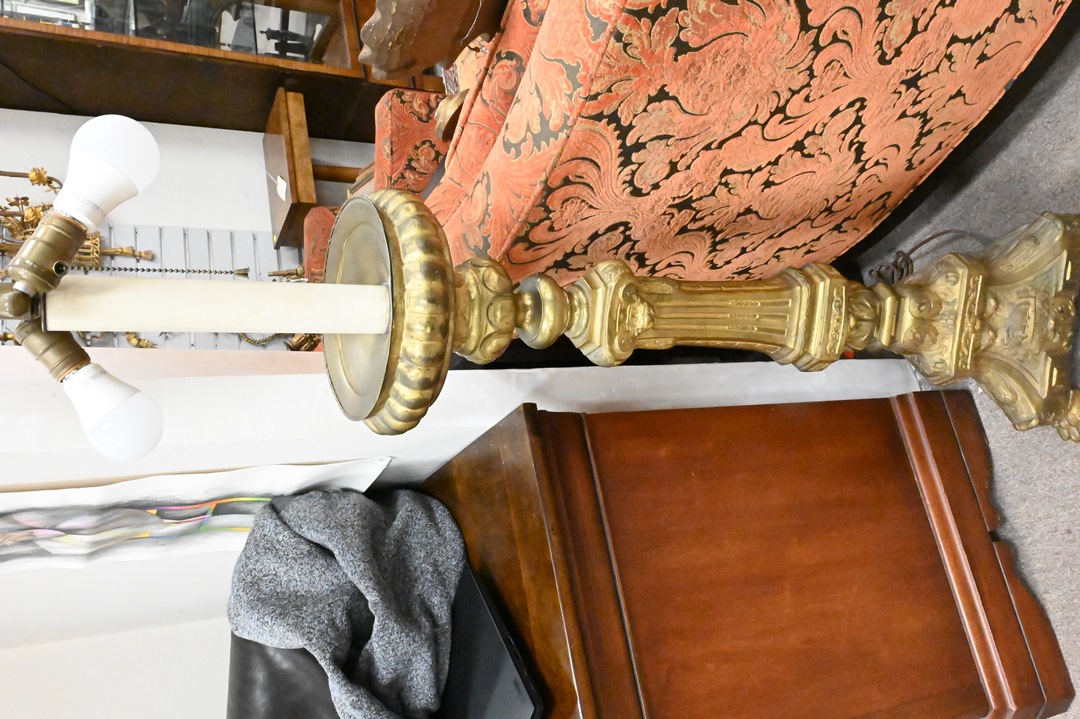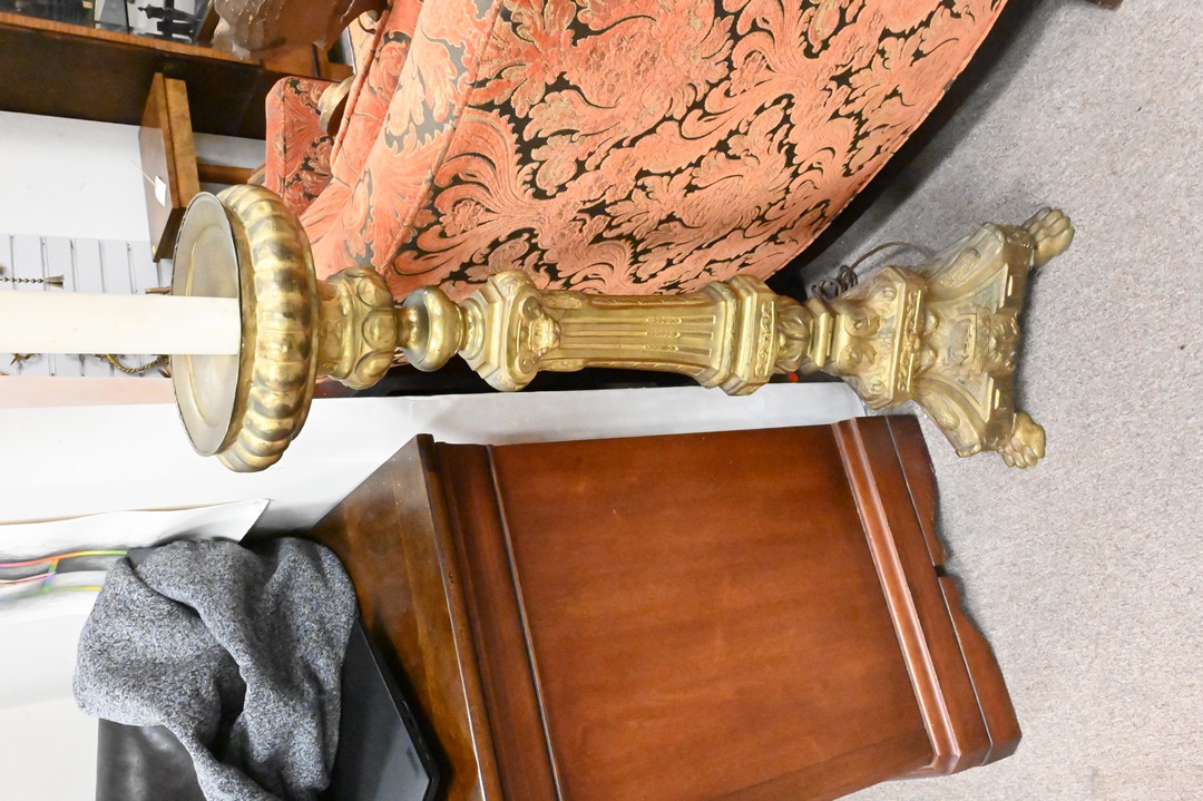 Brass Floor Lamp, having paw feet, height 62 inches.
