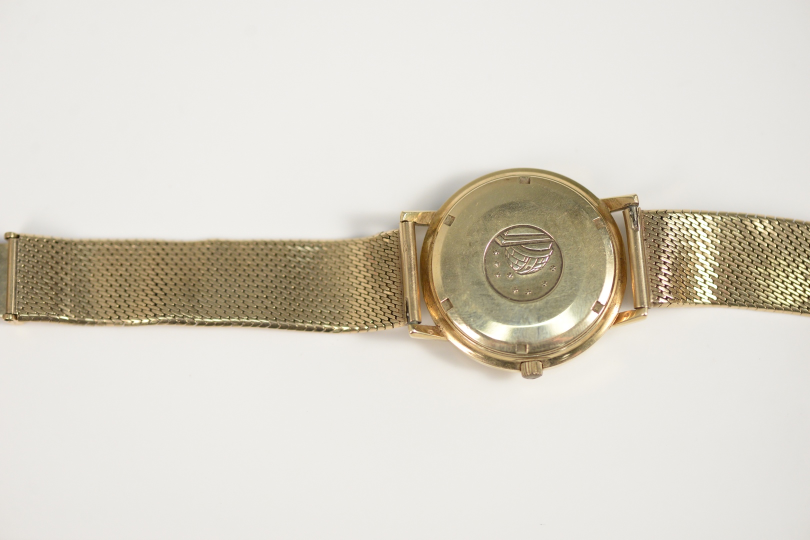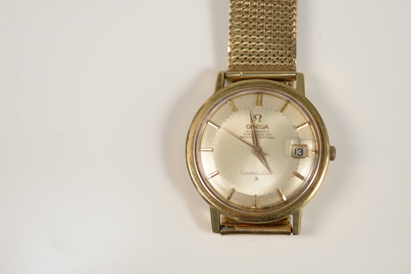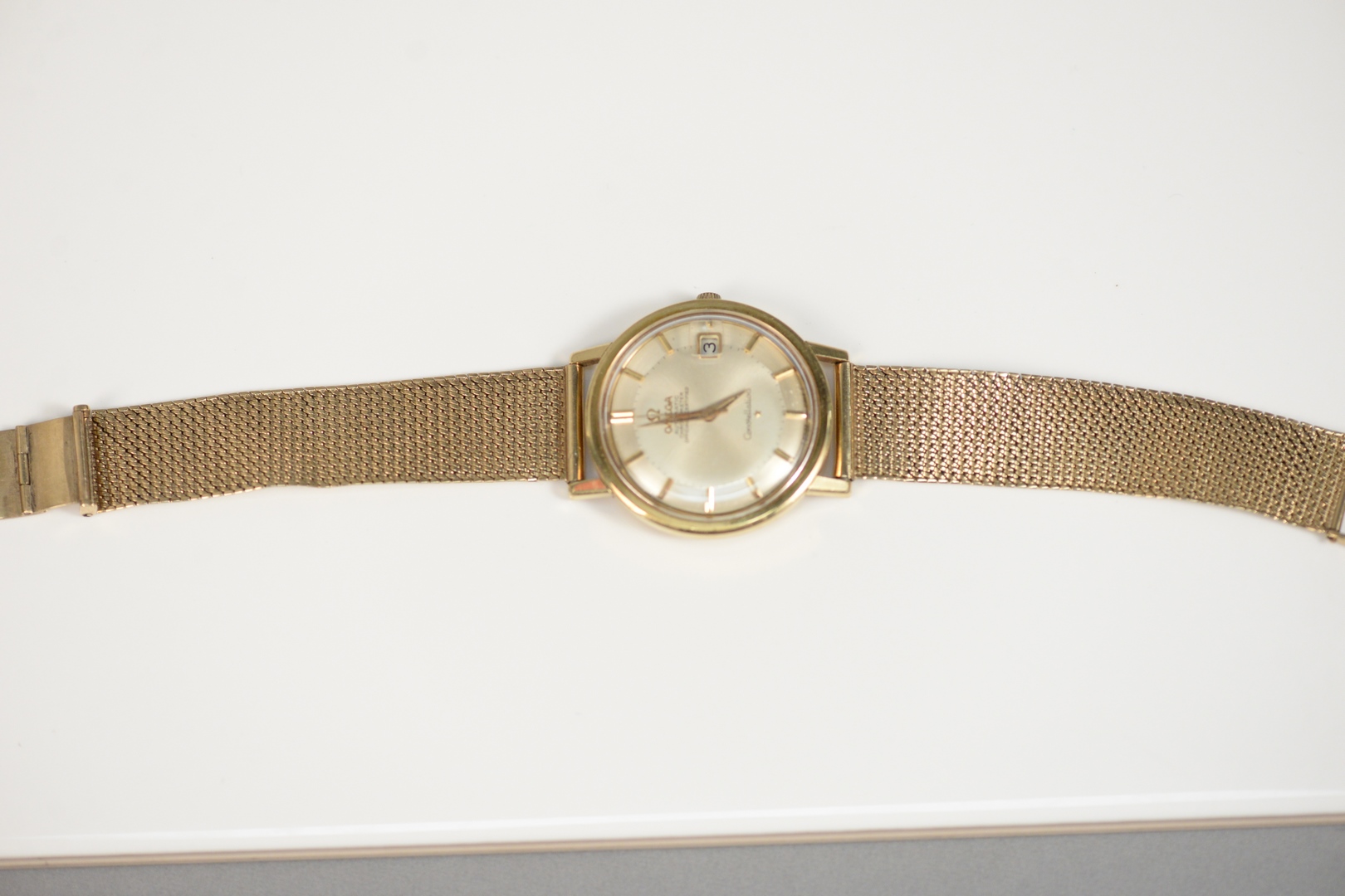 Lot 60: Omega Constellation Automatic Chronometer Men’s Wristwatch 9 karat gold mesh band 35.7 millimeters total weight 67.2 grams