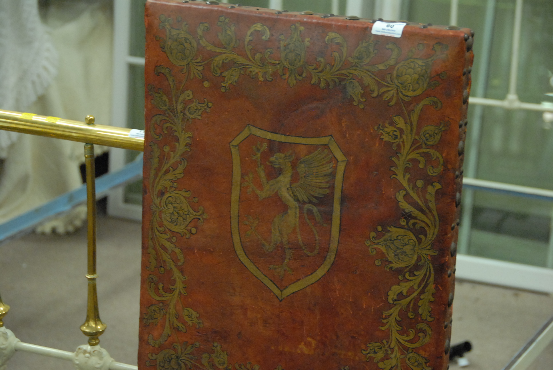 Lot 60: Pair of Jacobean style side chairs with leather back and seats.