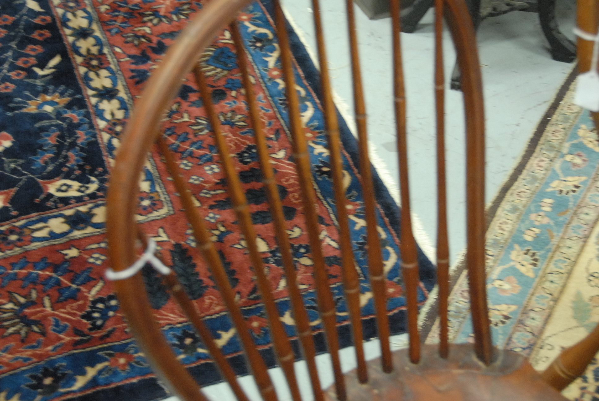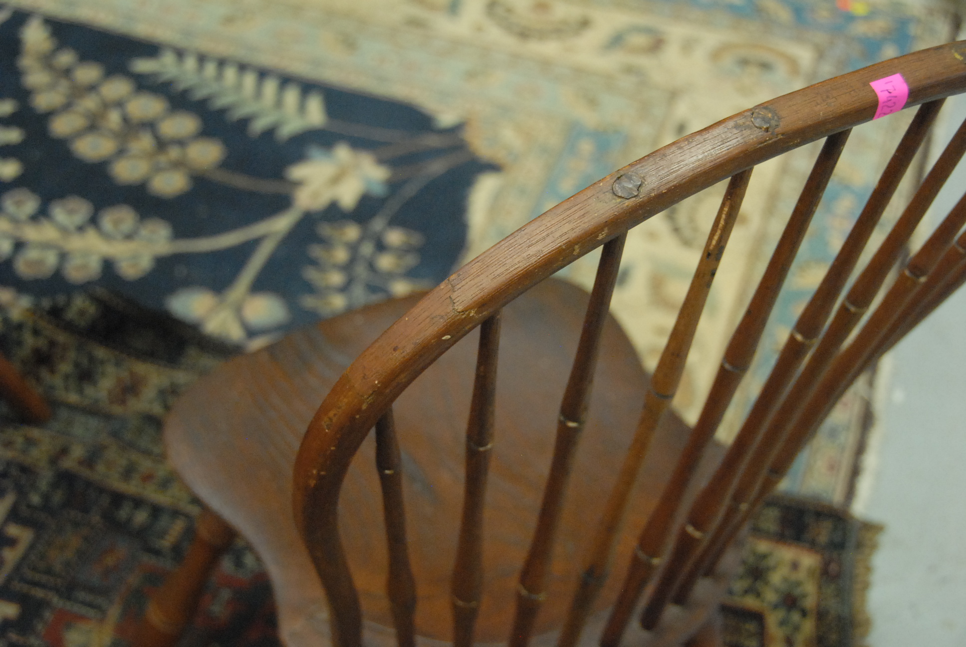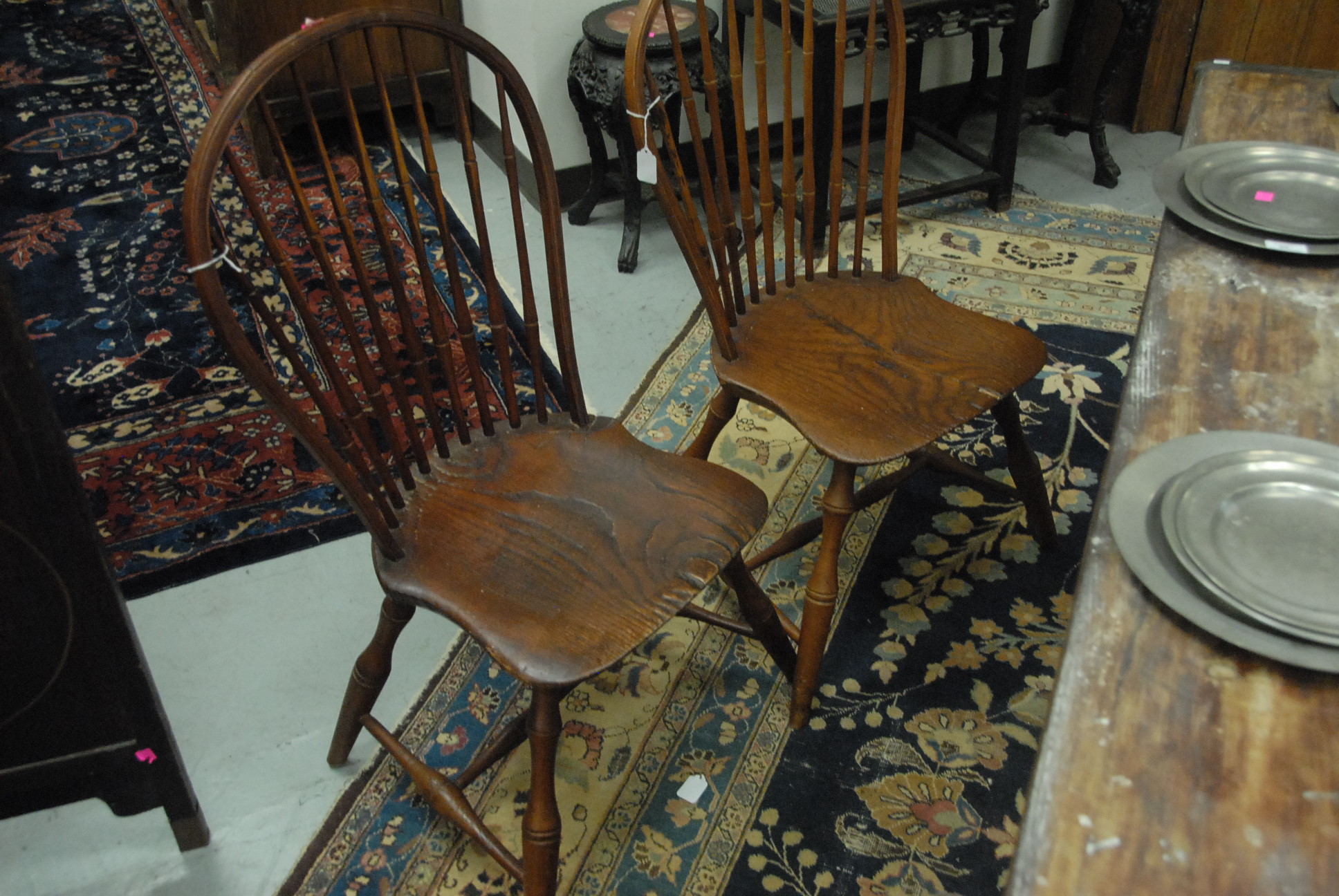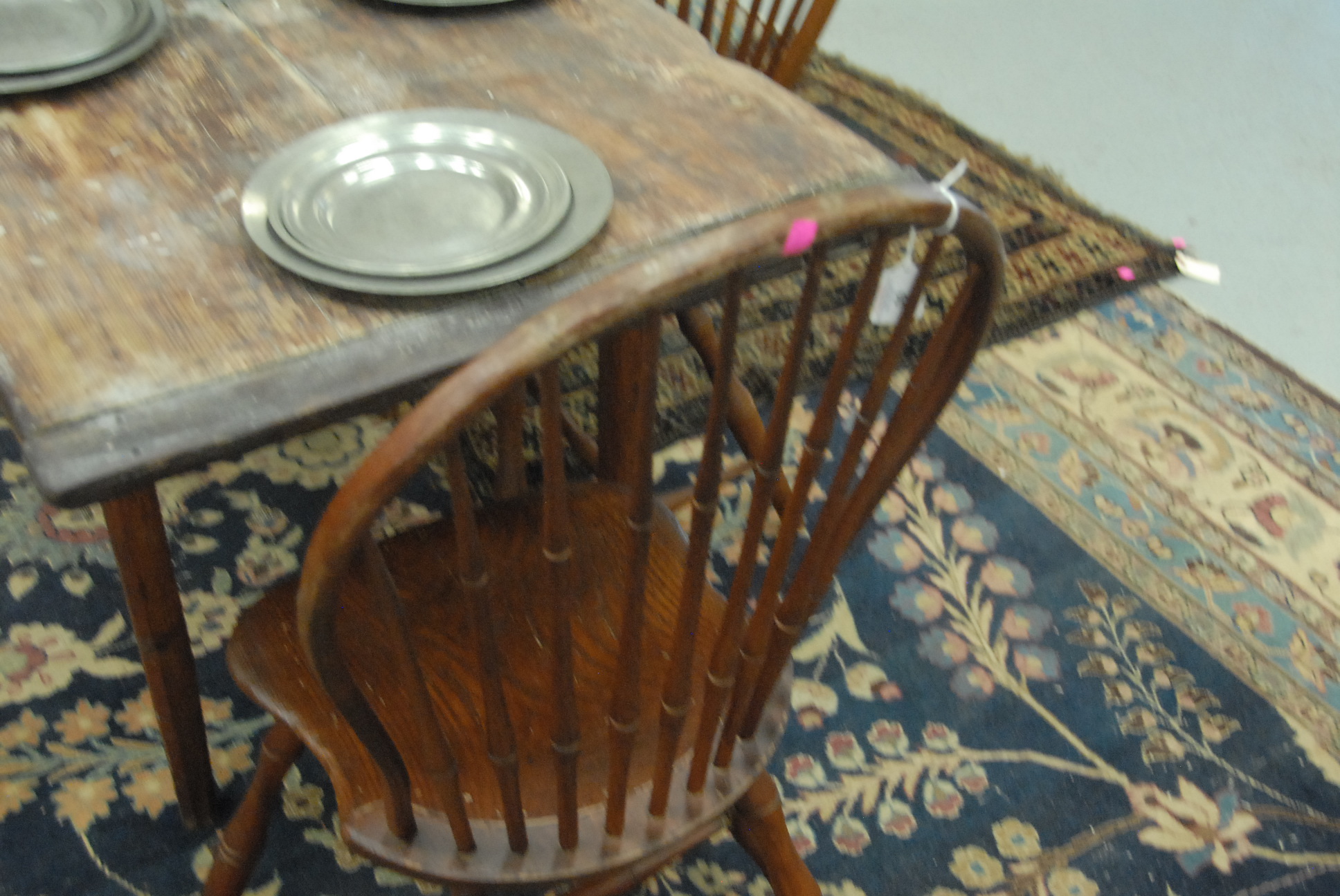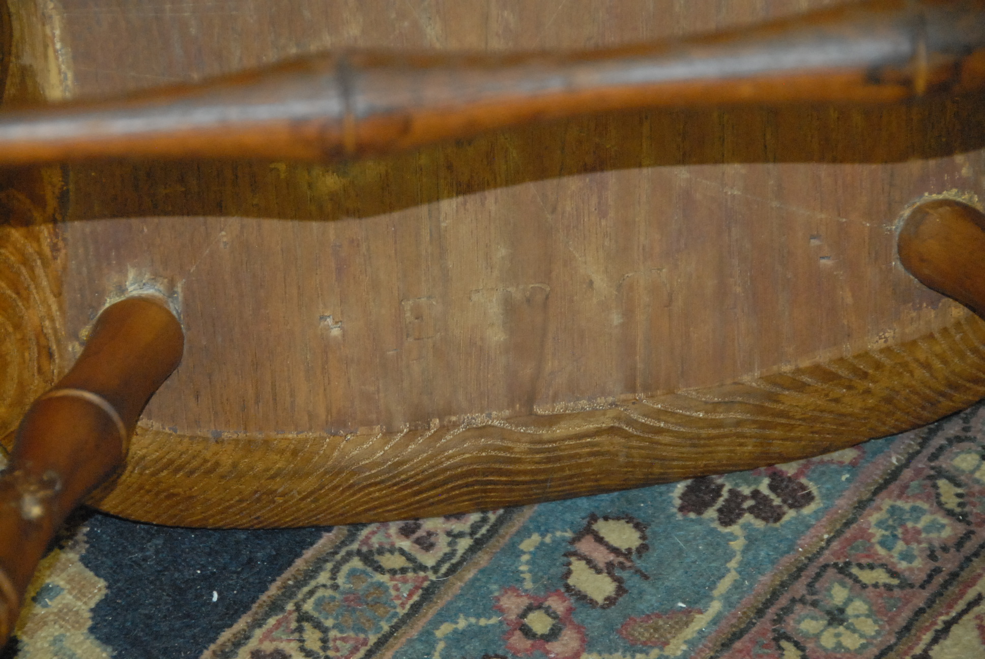 Lot 60: Set of five E. B. Tracy Windsor bow back side chairs with bamboo turned legs, signed on bottoms E. B. Tracy two seats split. seat ht. 4 15 1/2 in. & 1 16 in. Provenance: Property from the Estate of Elizabeth and Edward Wallace of
