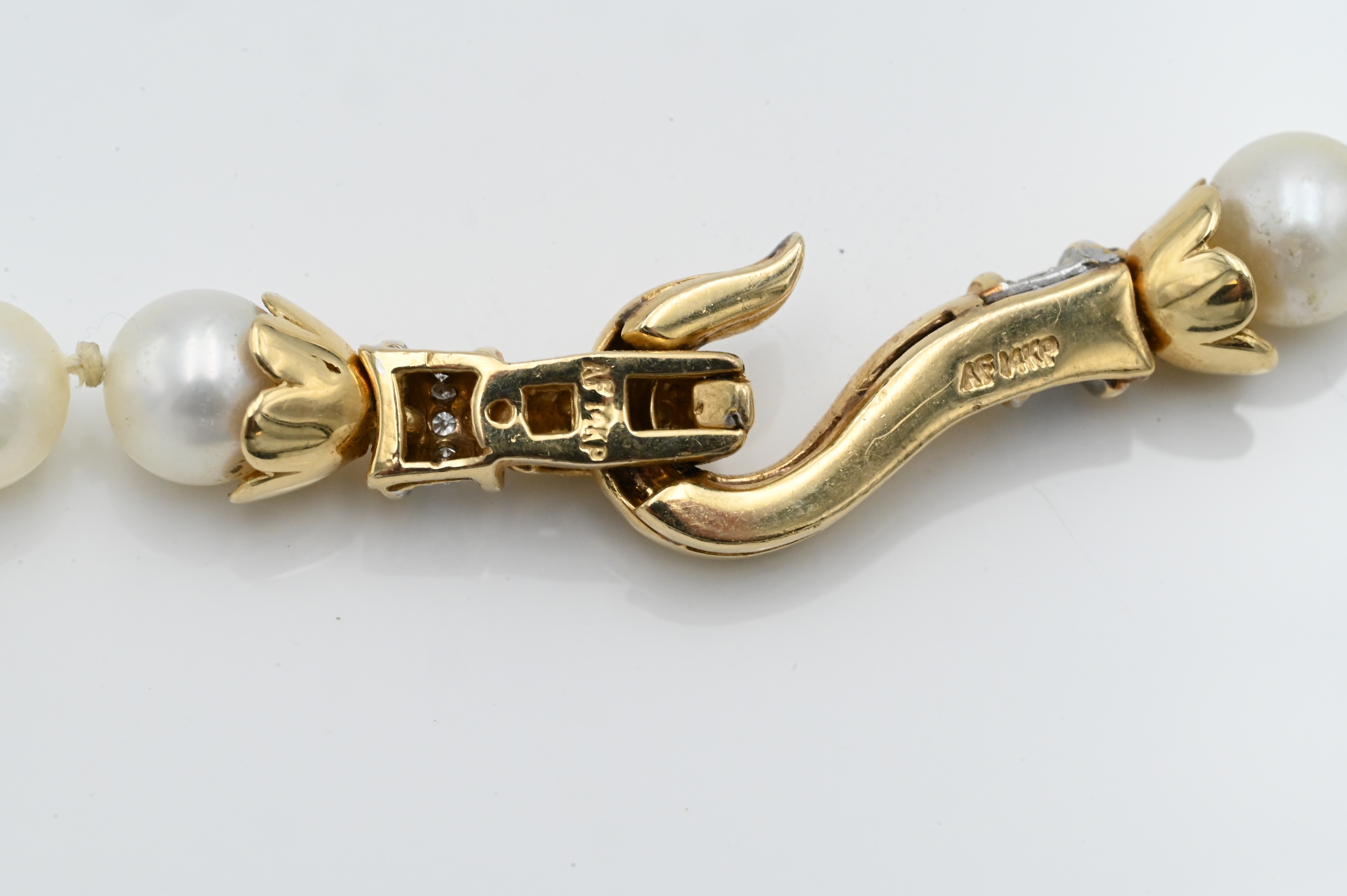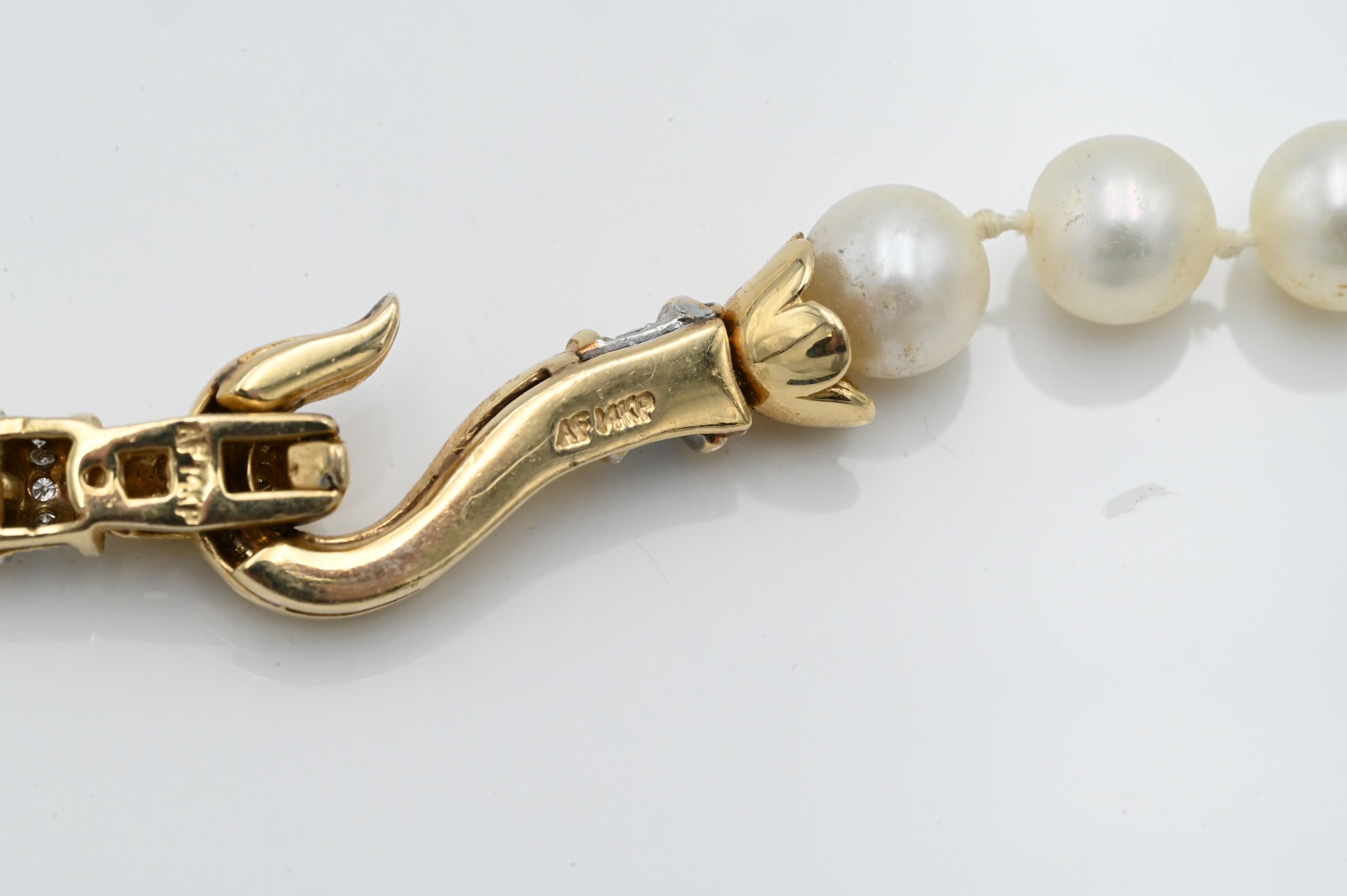 with large 14K yellow gold hook mount clasp set with diamonds marked A.F. 14K