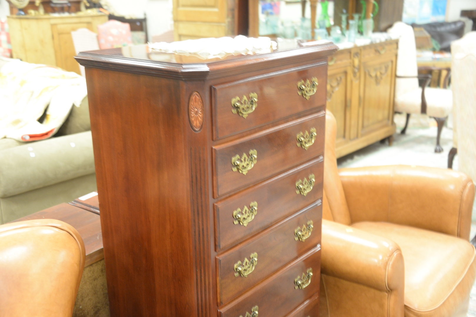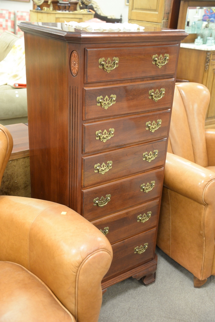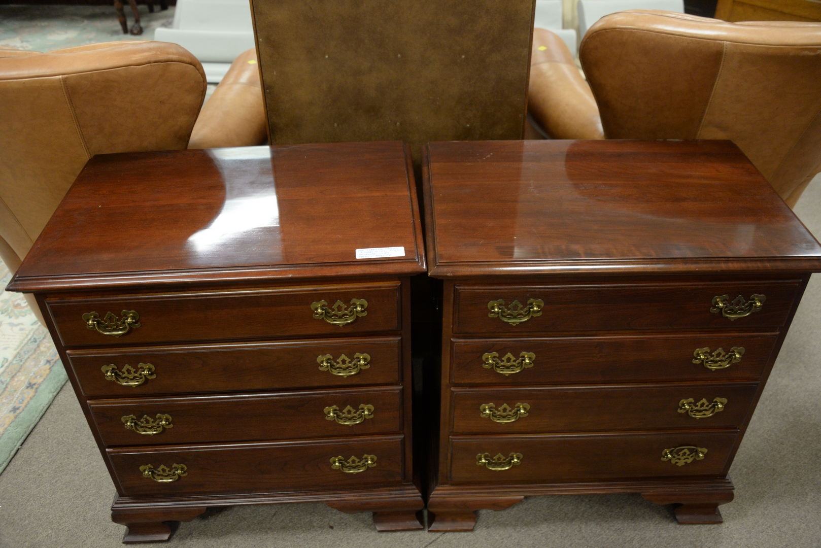 Lot 60: Three Ethan Allen Pieces, to include seven drawer lingerie chest, height 52 inches, along with a pair of four drawer small chests or night stands, height 28 inches, width 26 inches.