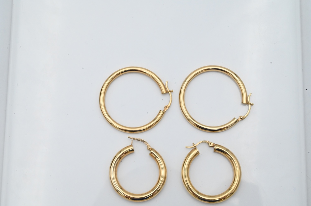 Three Pairs of 14 Karat Gold Loop Earrings, 8 grams.