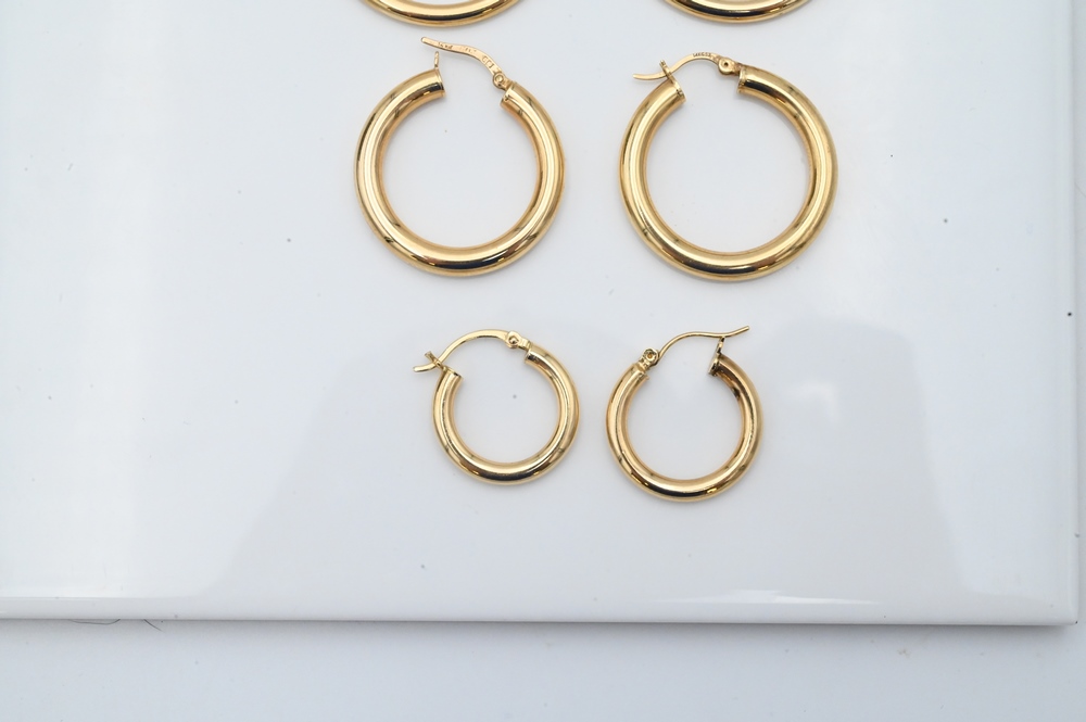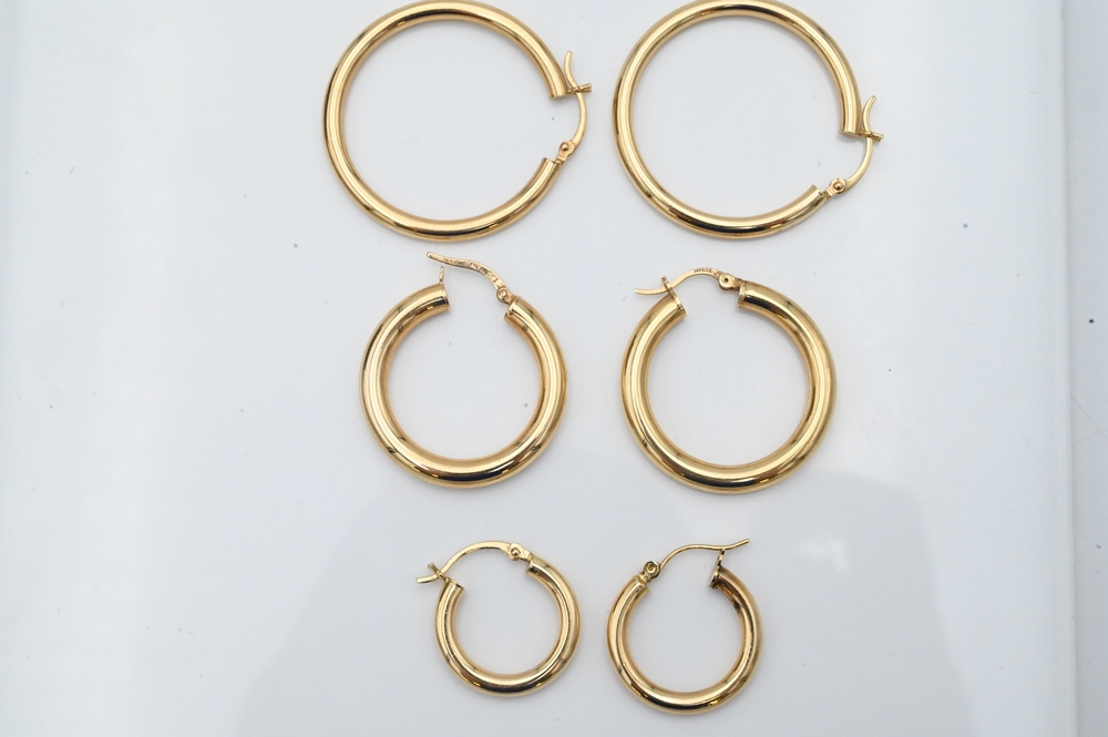 Lot 60: Three Pairs of 14 Karat Gold Loop Earrings, 8 grams.