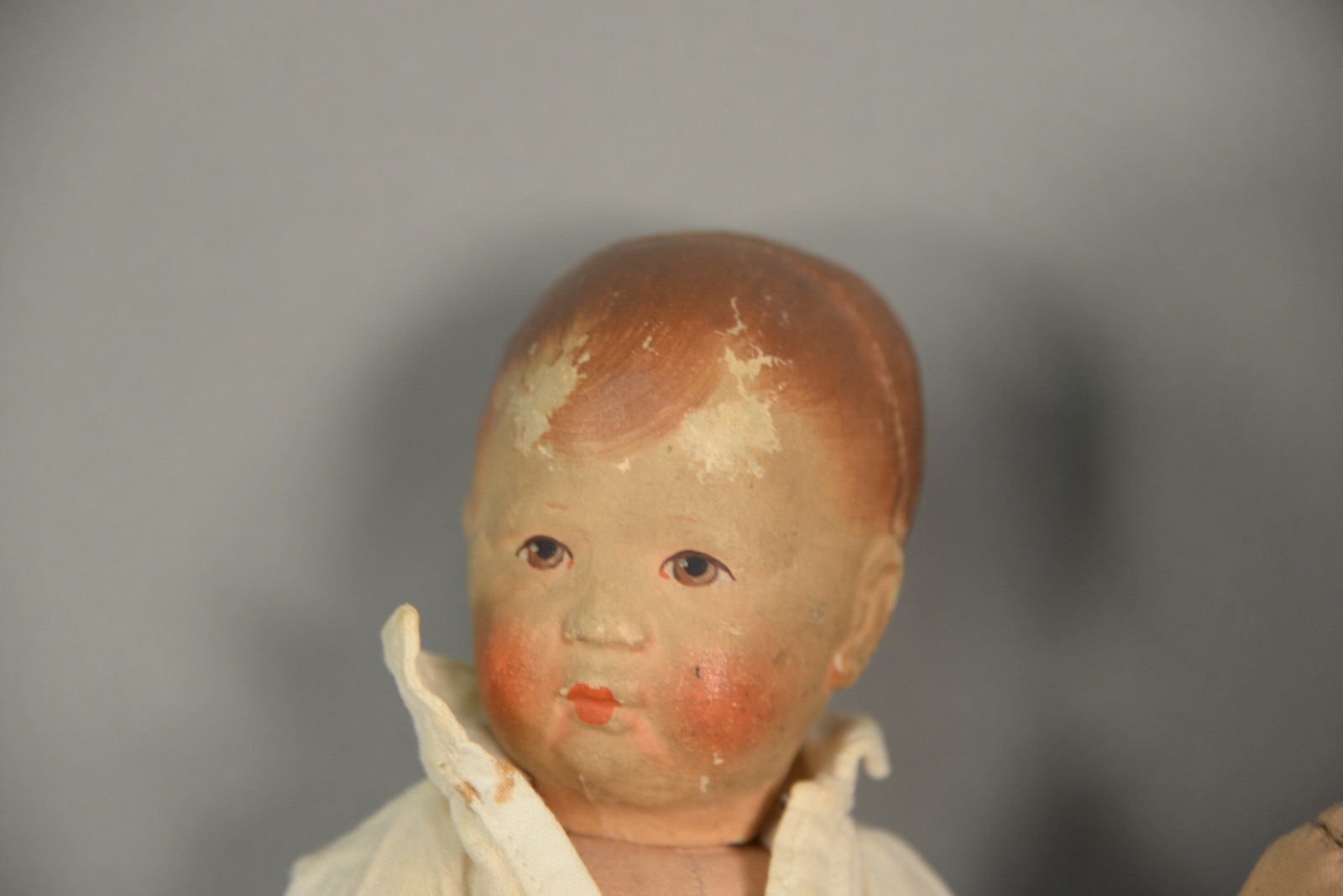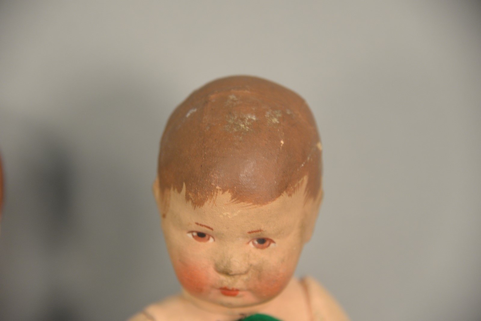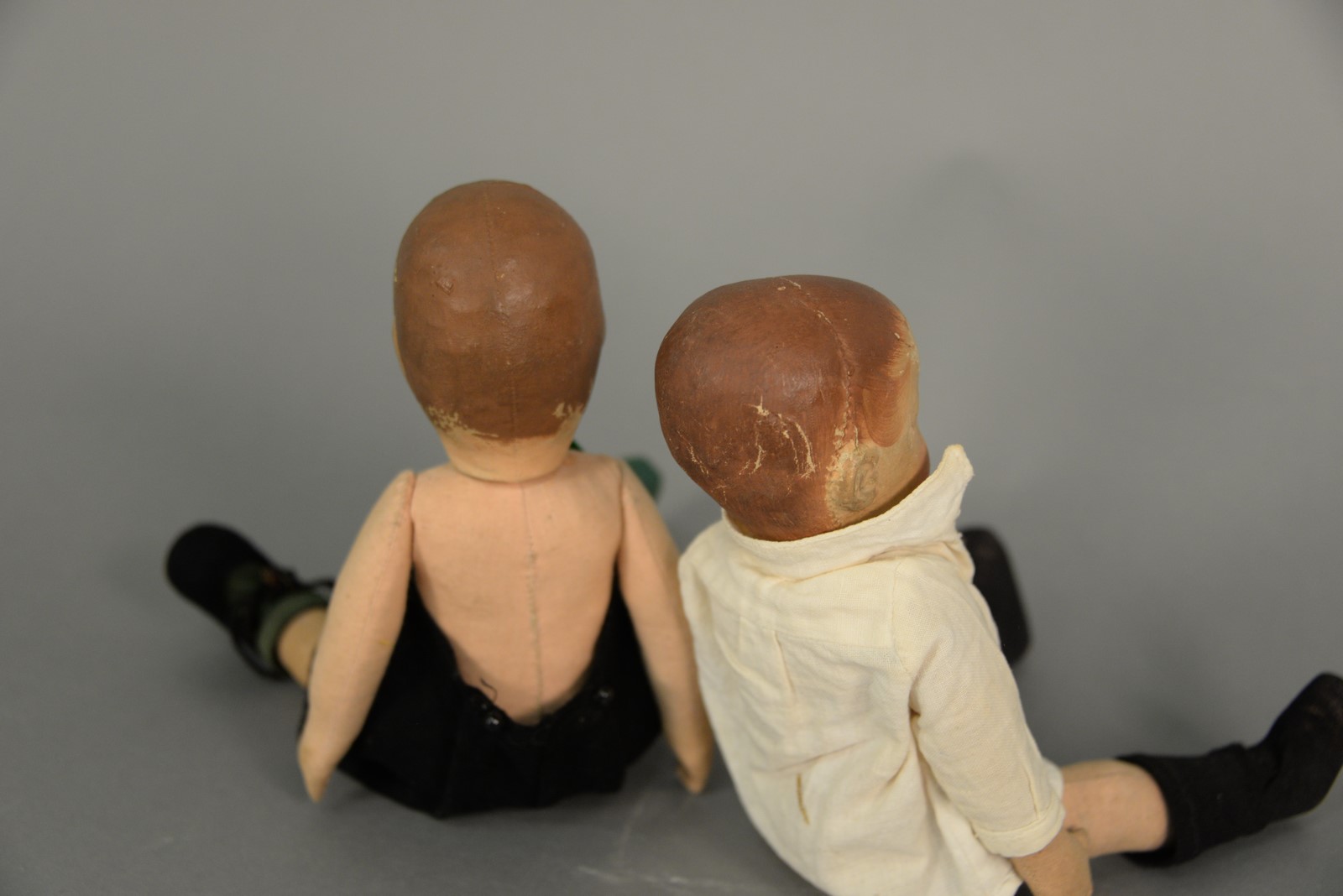 Two boy dolls with composition heads, early 20th century. ht. 11 in.