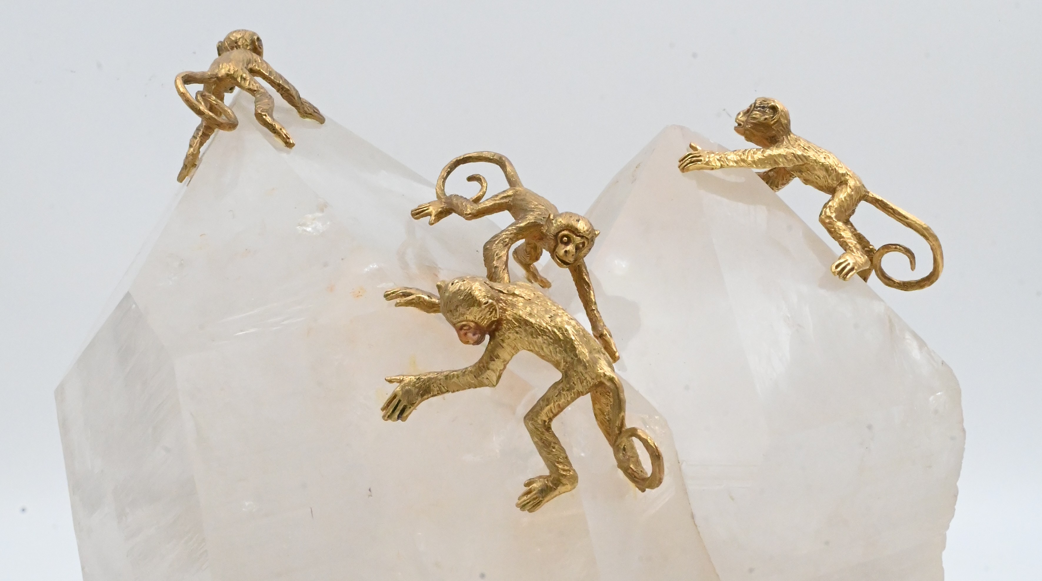 Lot 600: David Webb 18K Gold and Rock Crystal Monkey Sculpture
