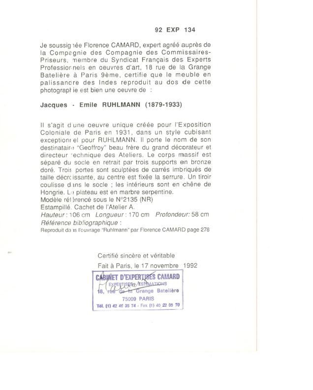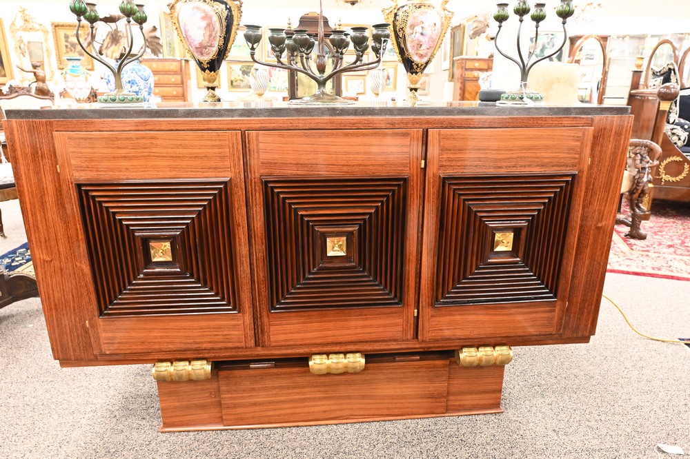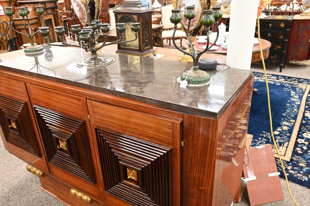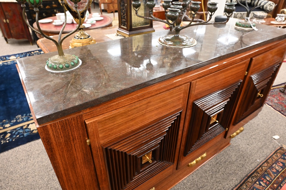 Lot 600: Emile Jacques Ruhlmann (1879 – 1933), designed by Maxime Old, sideboard having doors opening to shelved interior, brown marble fitte…