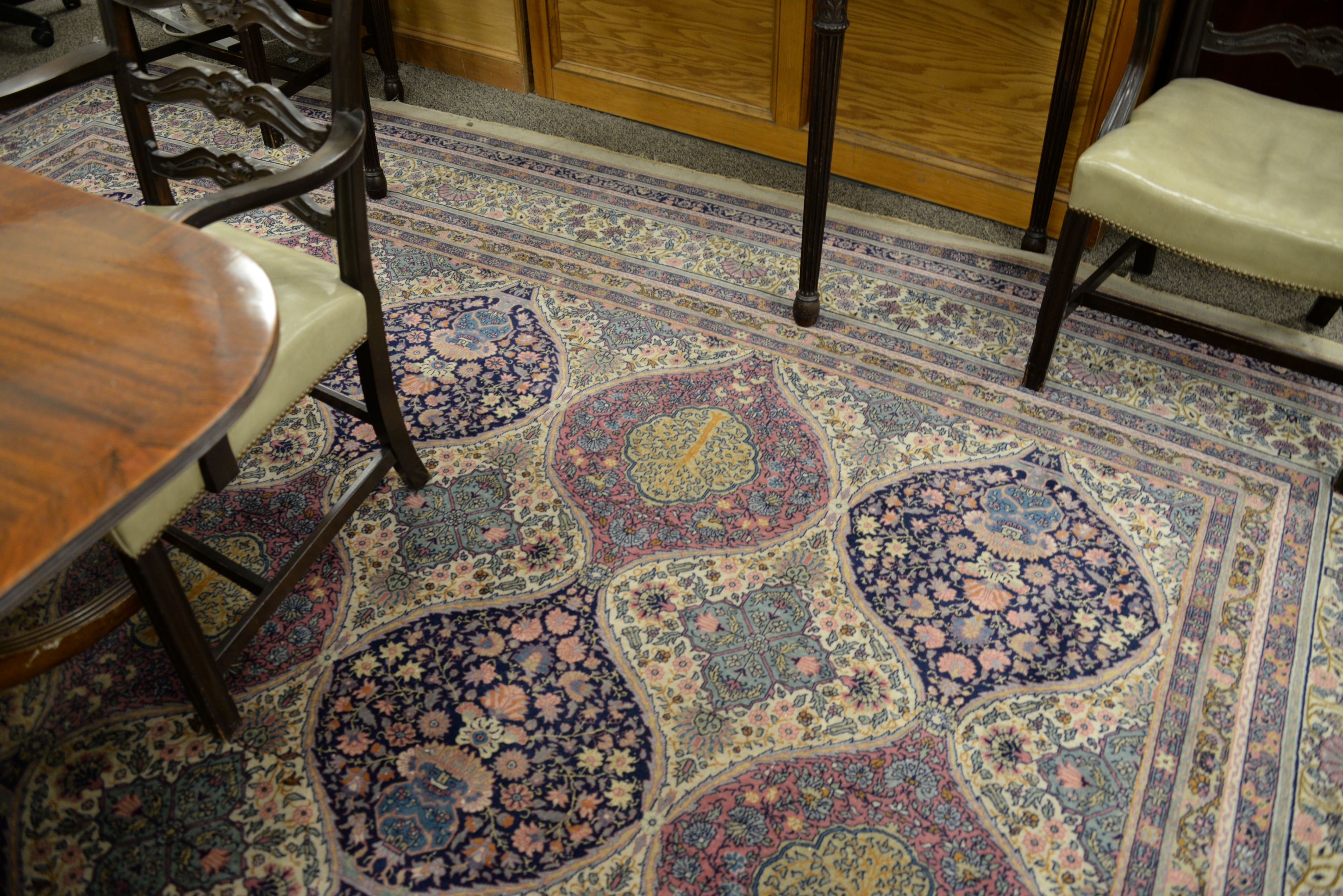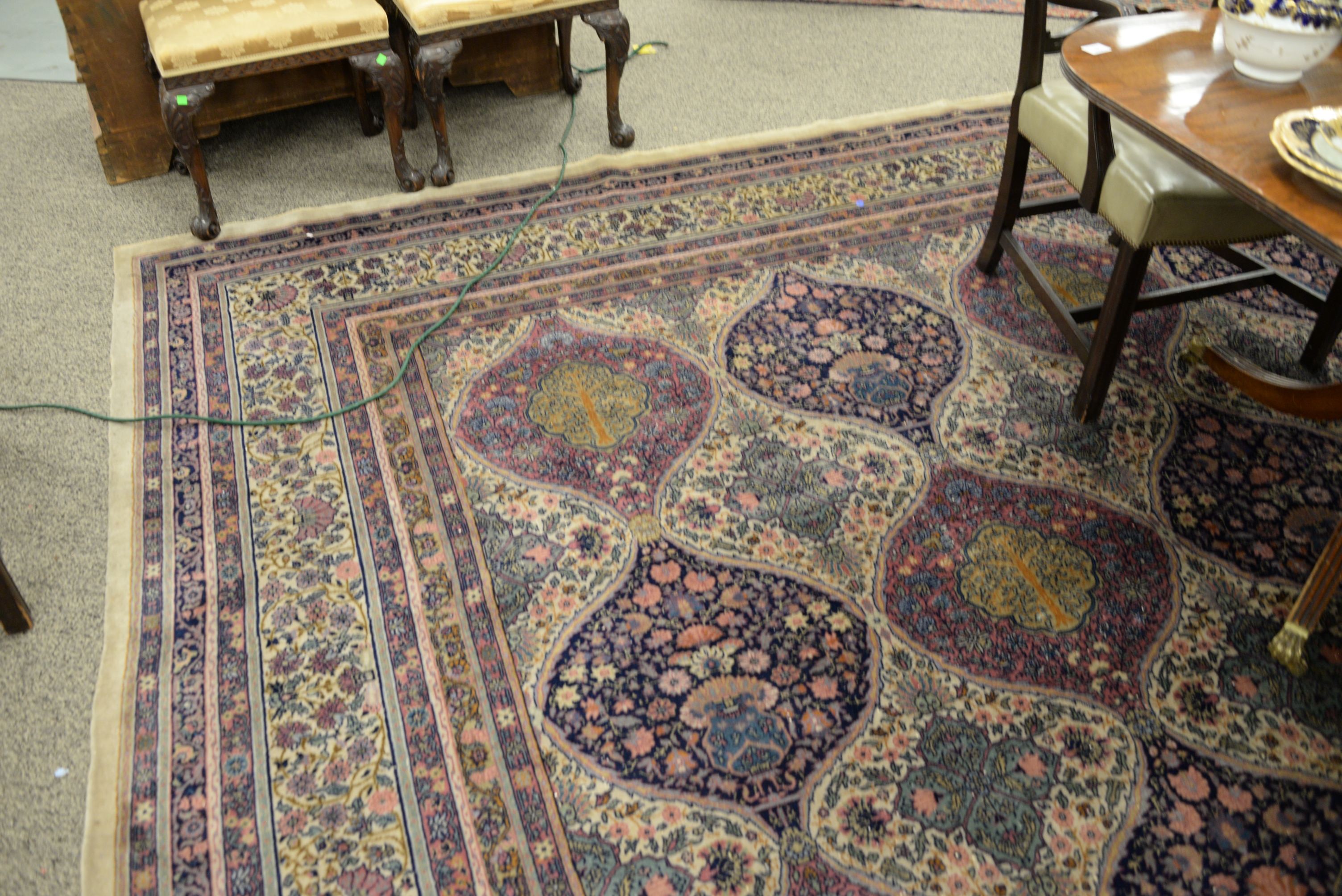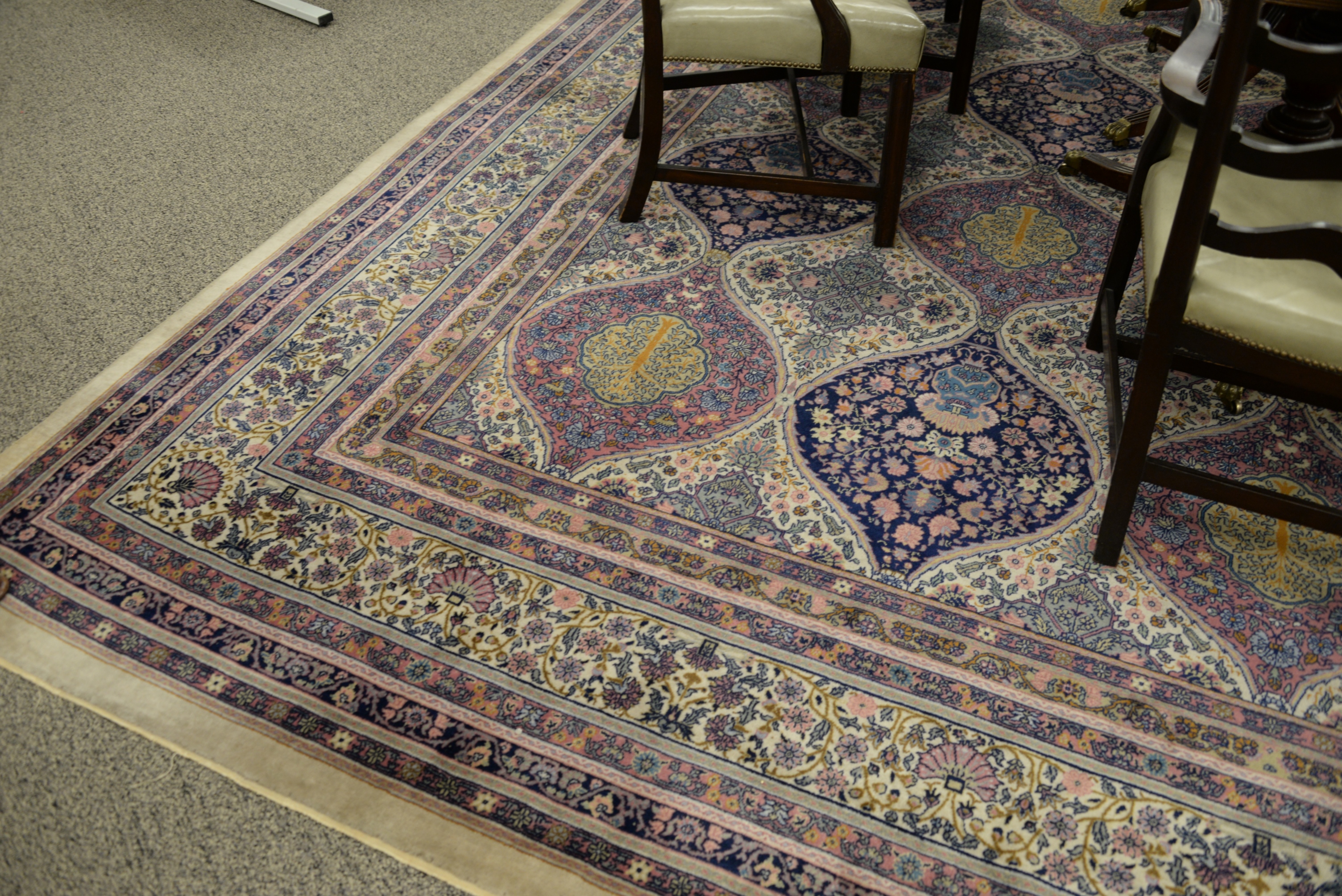 Oriental Carpet, stained area in center, 13′ 2″ x 17′ 3″.